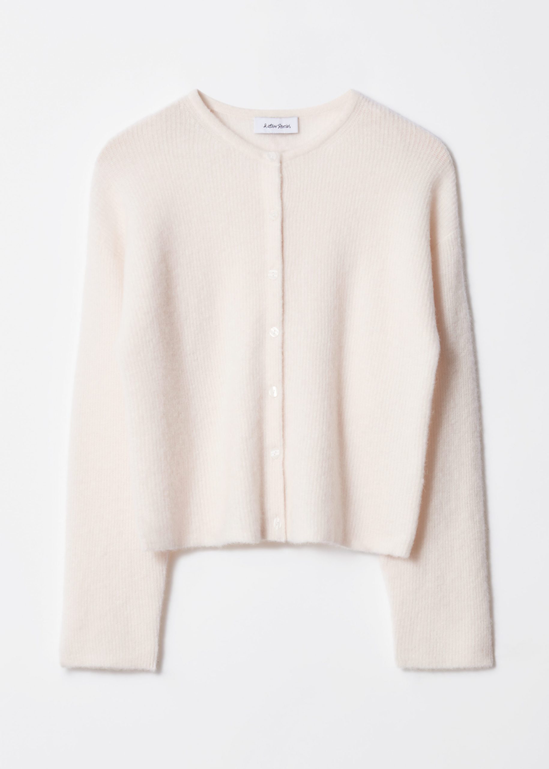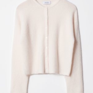 Long-sleeve cardigan knitted from a wool and alpaca blend. Traced with centre front button closures.