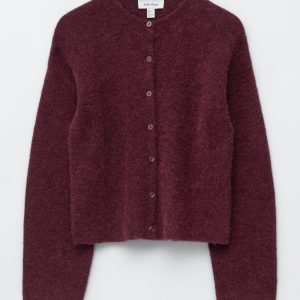 Long-sleeve cardigan knitted from a wool and alpaca blend. Traced with centre front button closures.