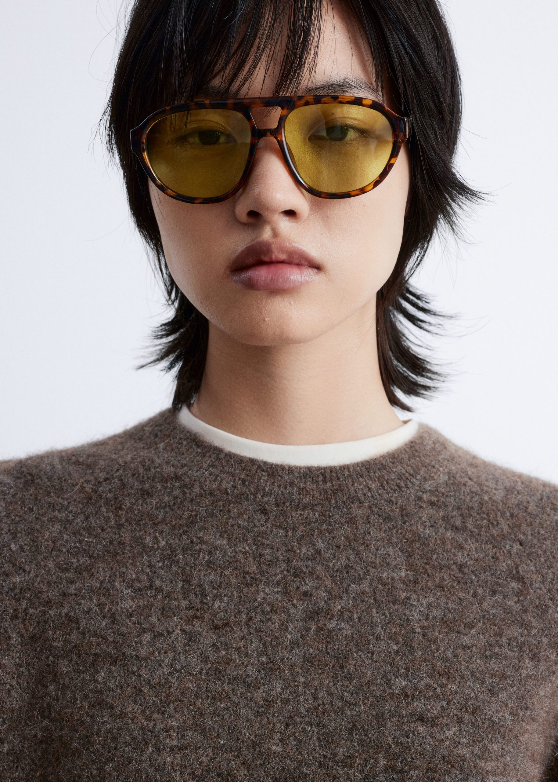Crewneck t-shirt knitted from alpaca and merino wool.