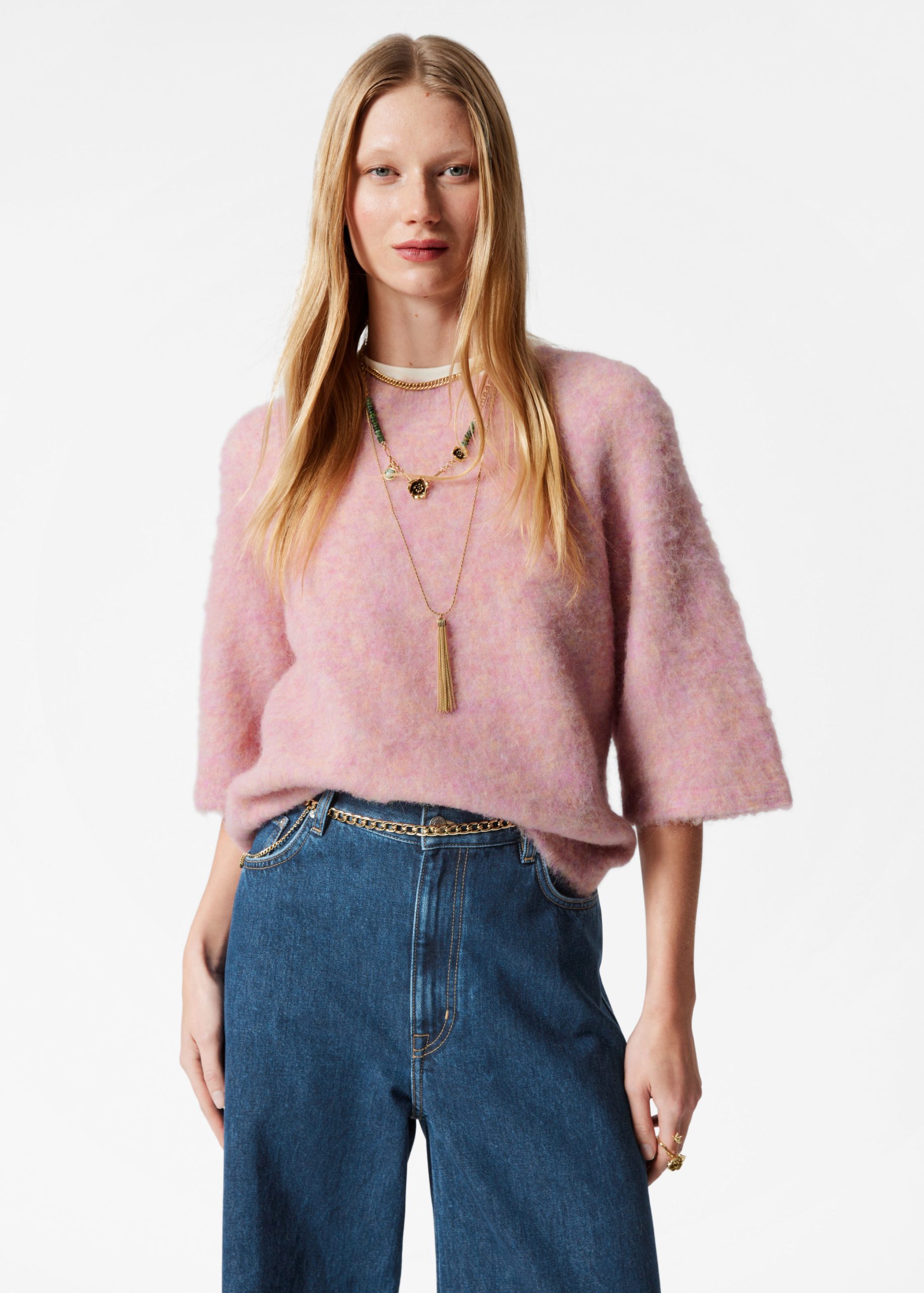 Crewneck t-shirt knitted from alpaca and merino wool.