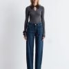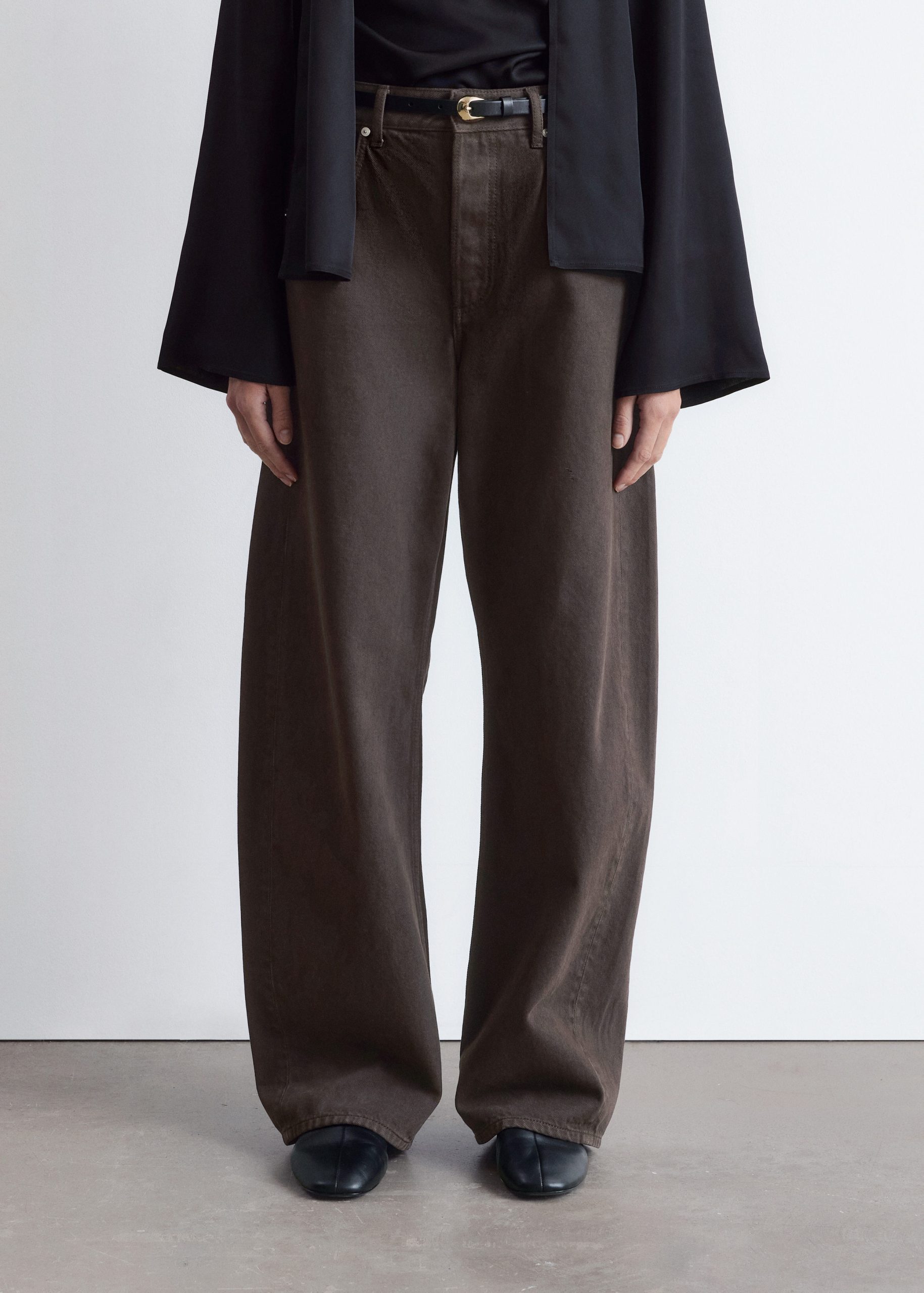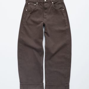 Jeans in a classic 5-pocket design, featuring a barrel-shaped leg and a sewn-in turn-up at the hem.