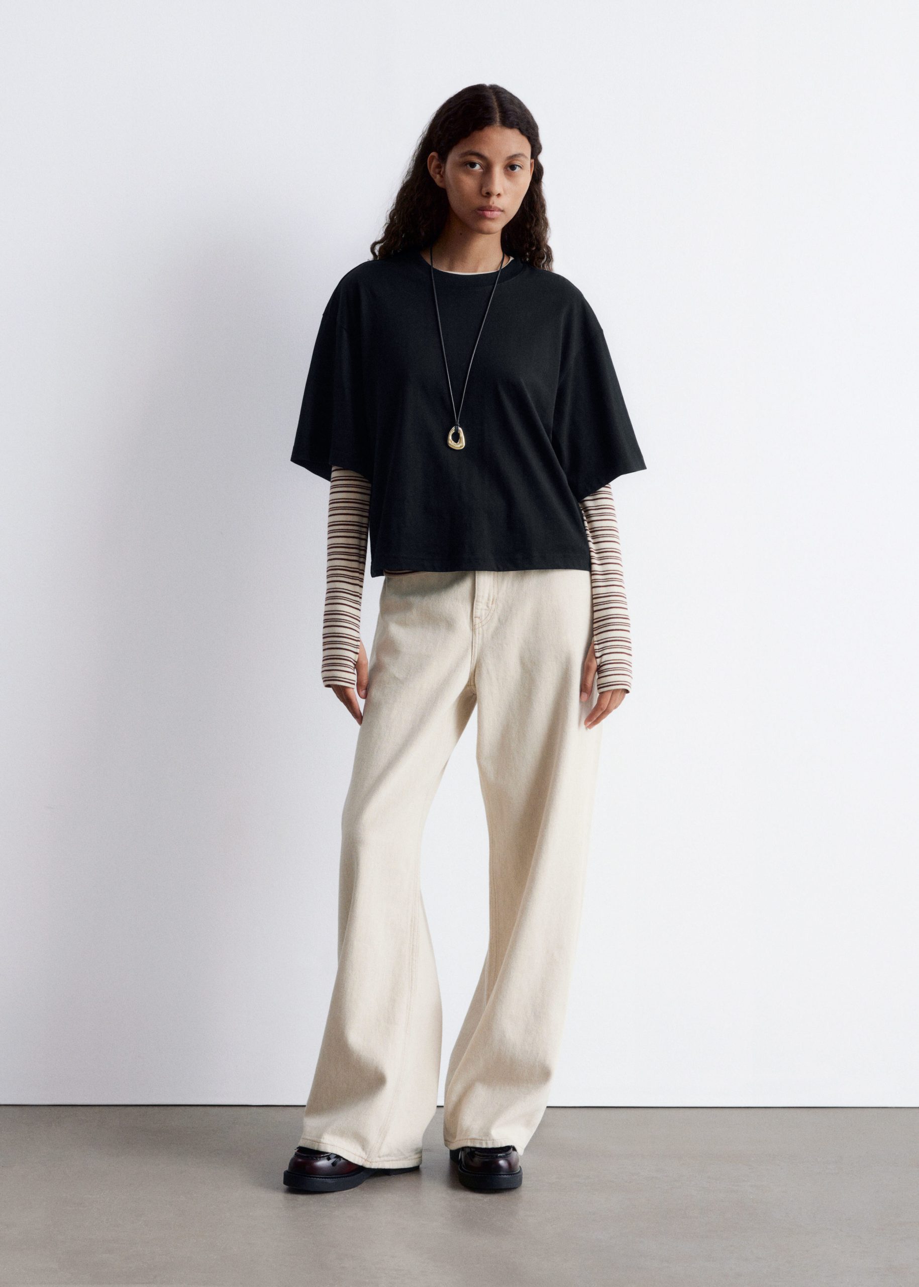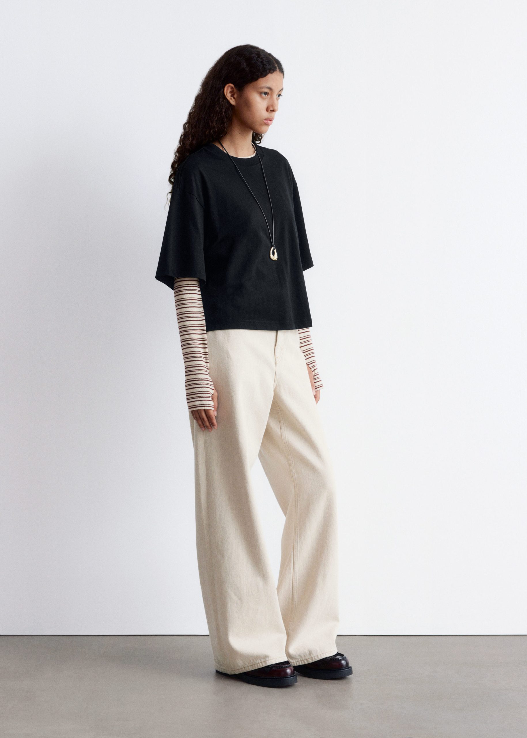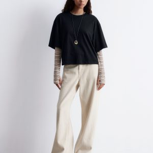 T-shirt crafted from a soft cotton jersey fabric. Cut in a relaxed and boxy shape, featuring a classic crewneck and short, wide sleeves. The perfect staple piece in your everyday wardrobe.Â