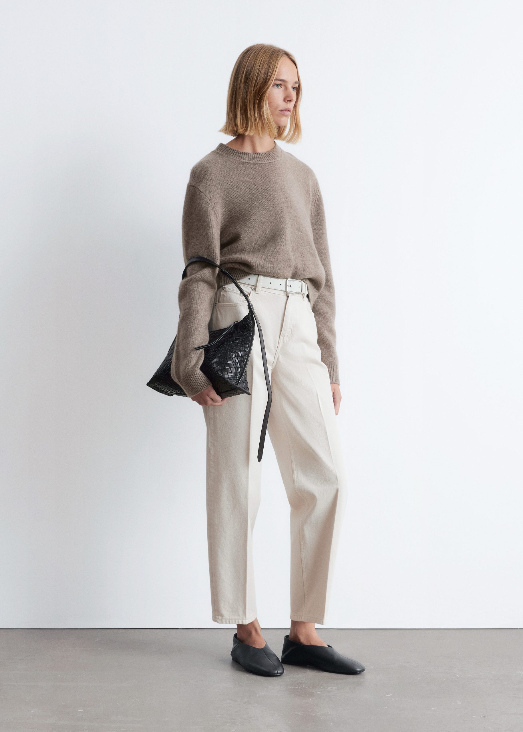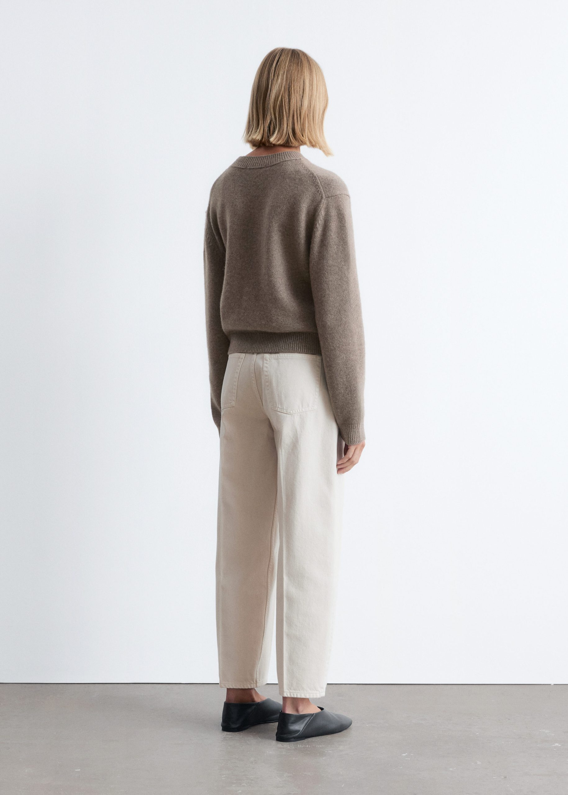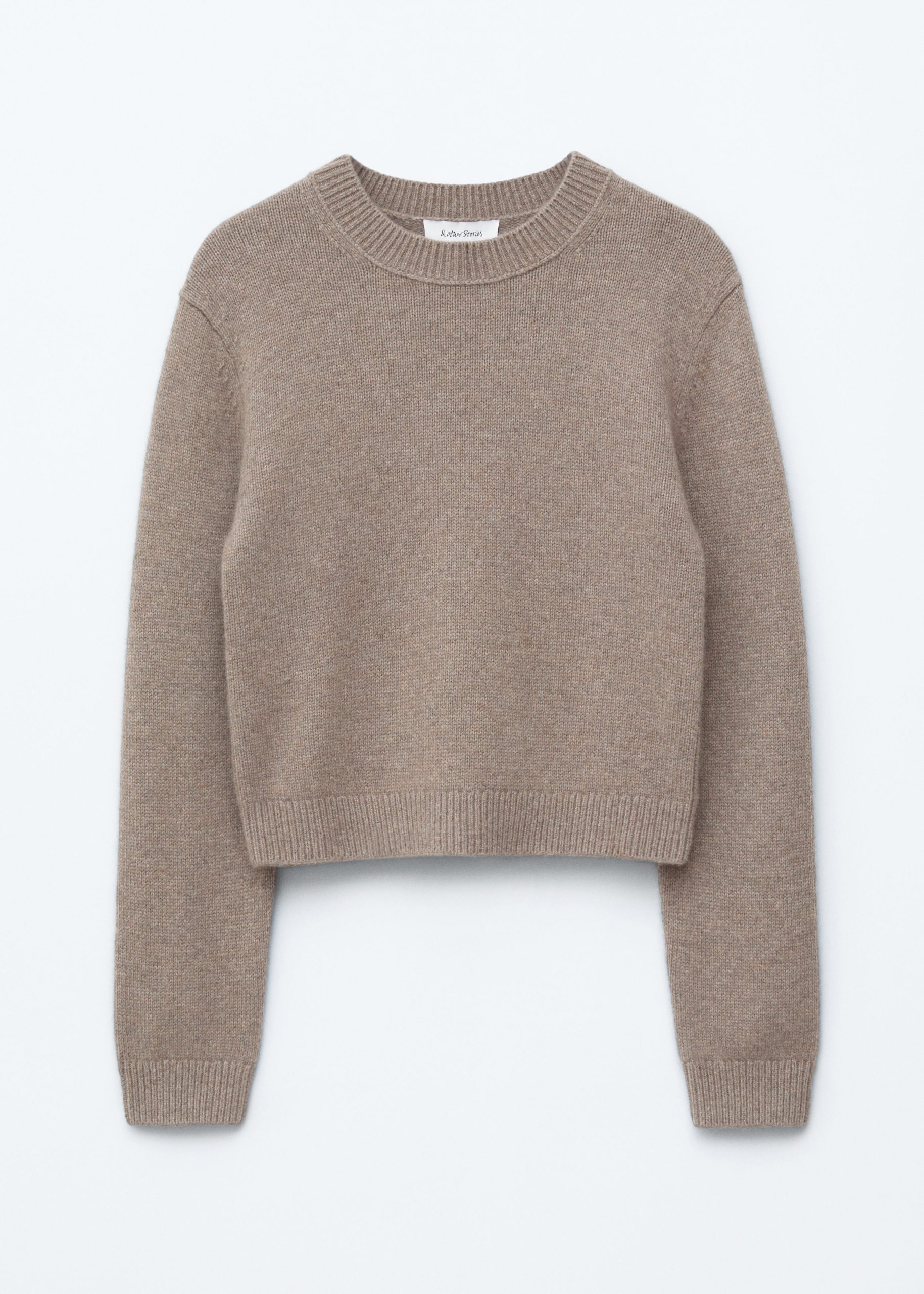 Short jumper knitted in a merino wool and cashmere blend with ribbed trims and gently dropped shoulders.