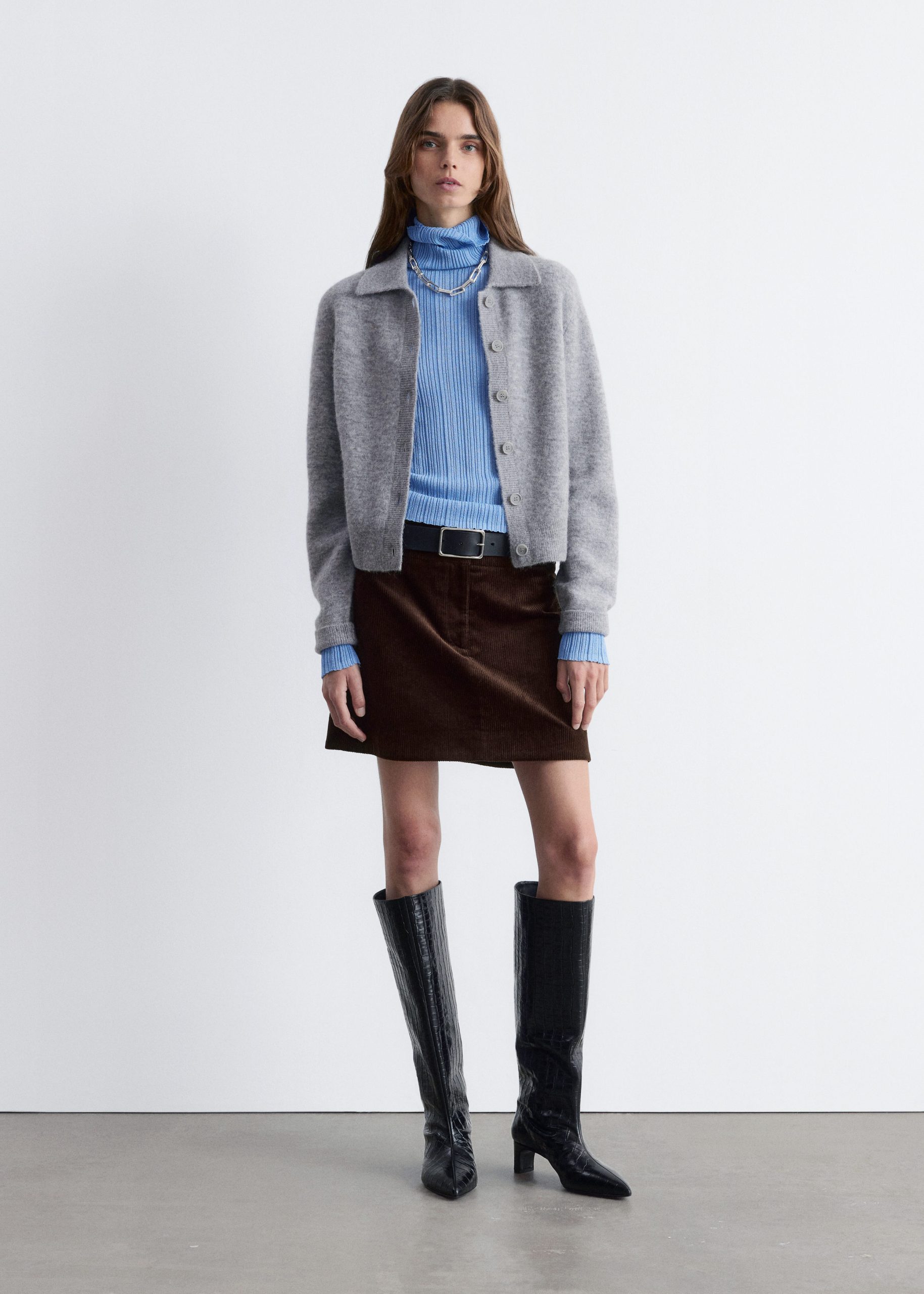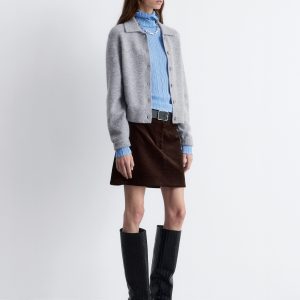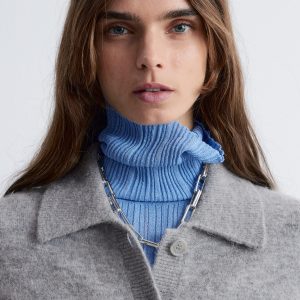 • Ribbed neckline, lapel, cuffs and hemline