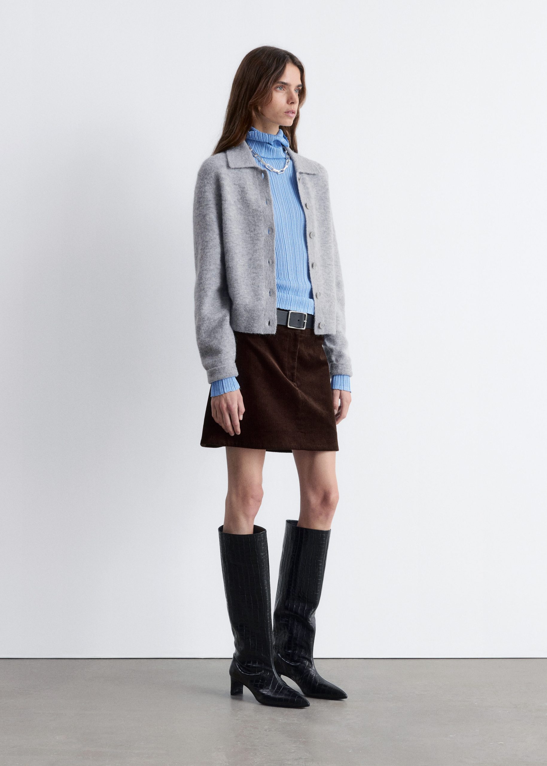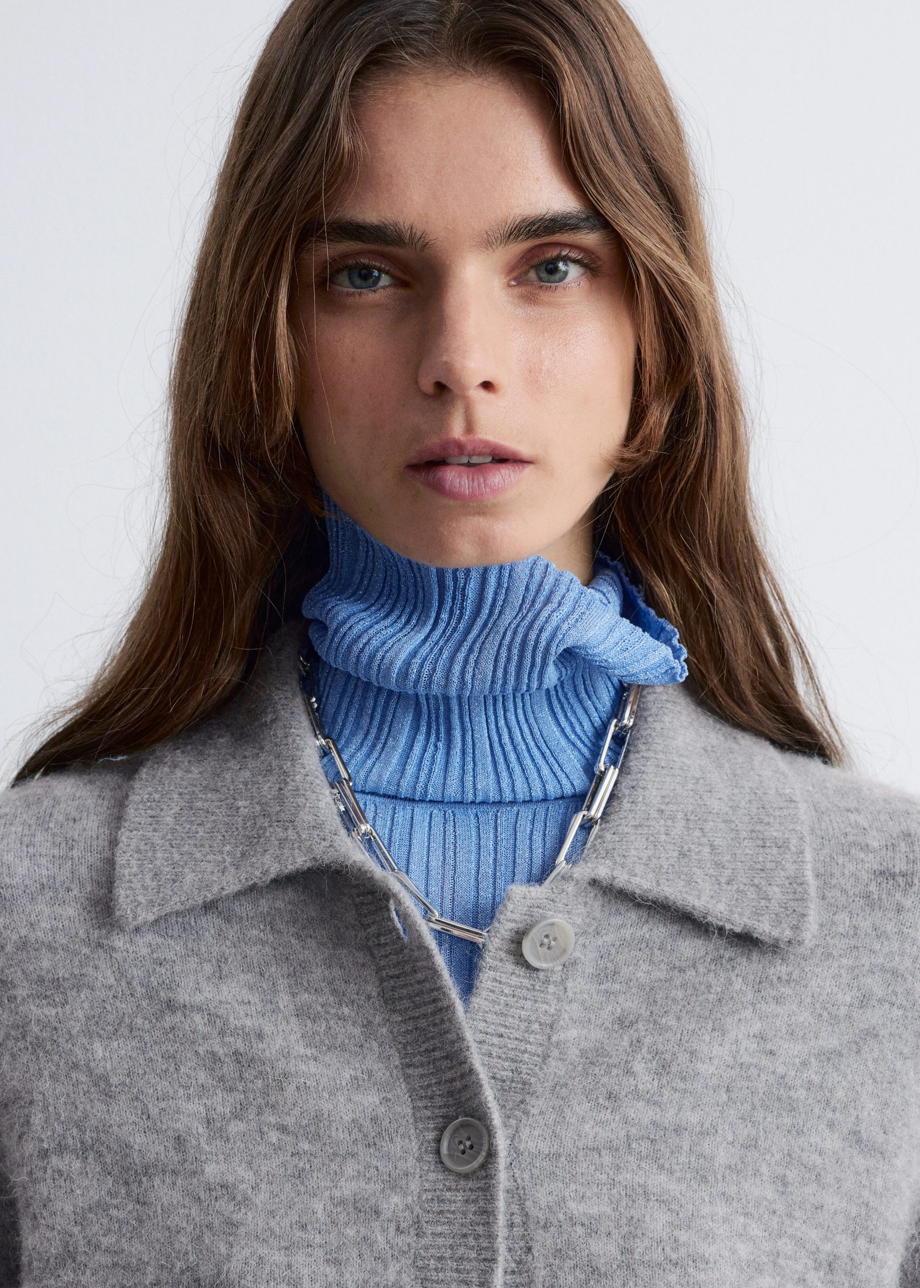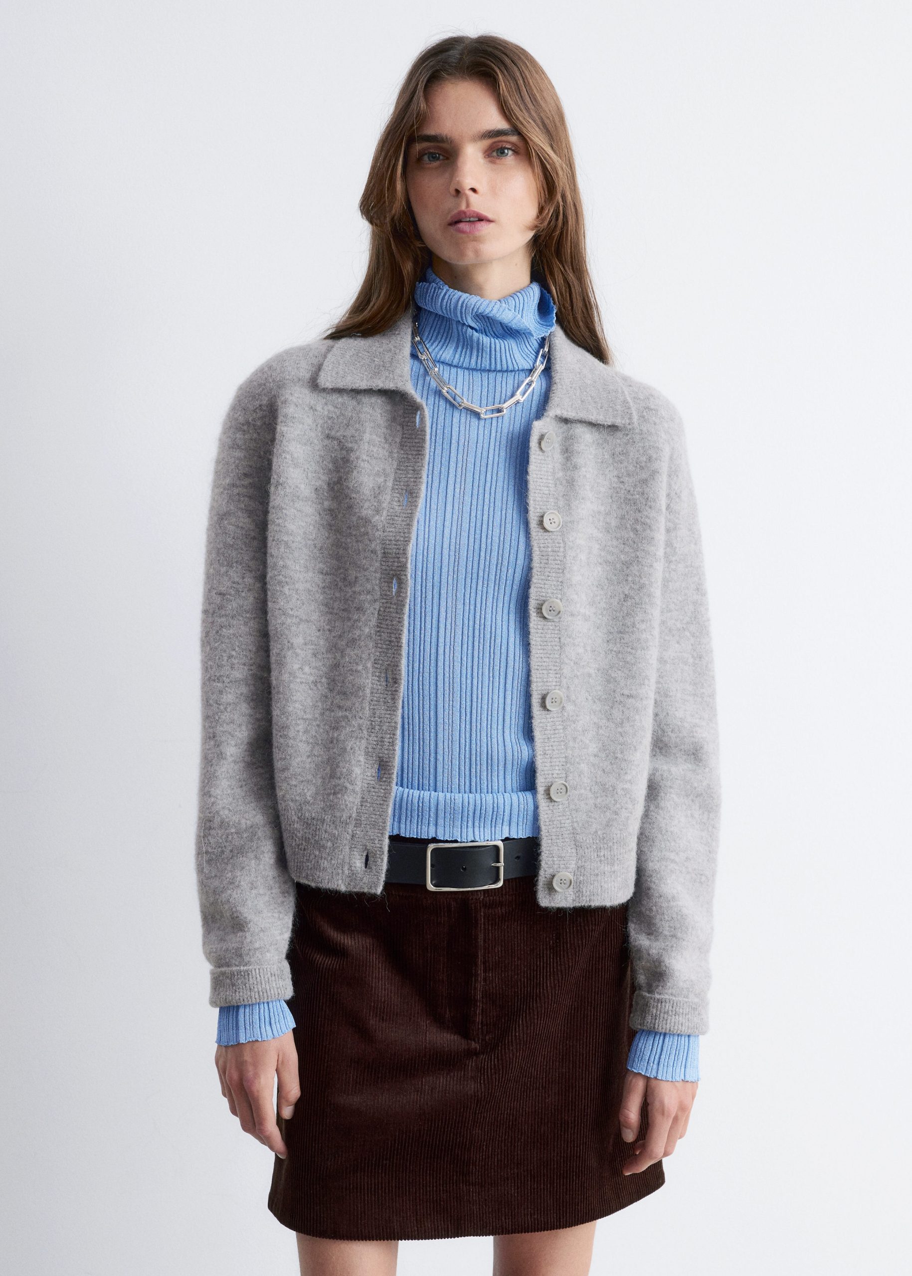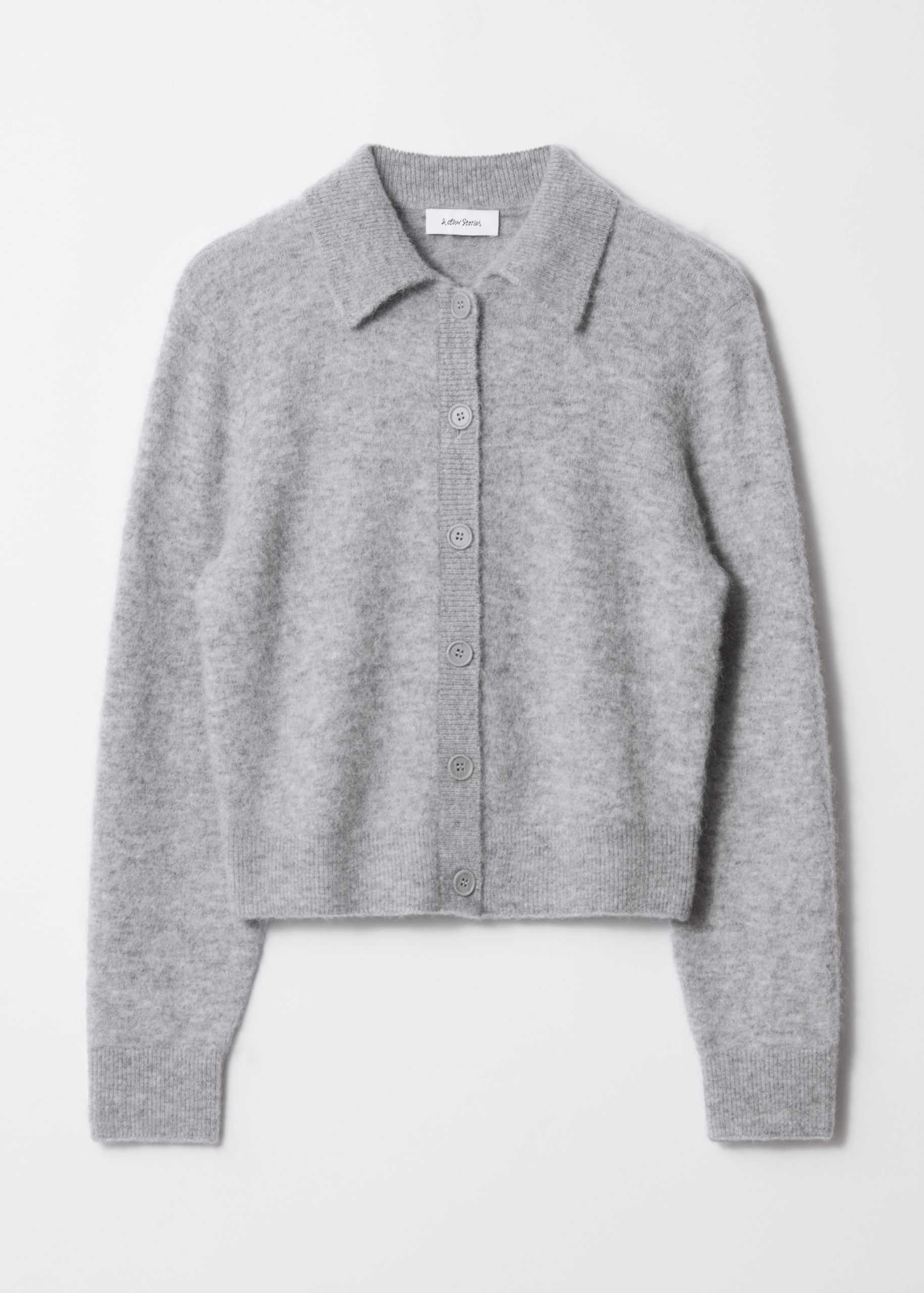 Single-breasted cardigan knitted from a wool and alpaca blend. Featuring a turn-down collar and six button closures.