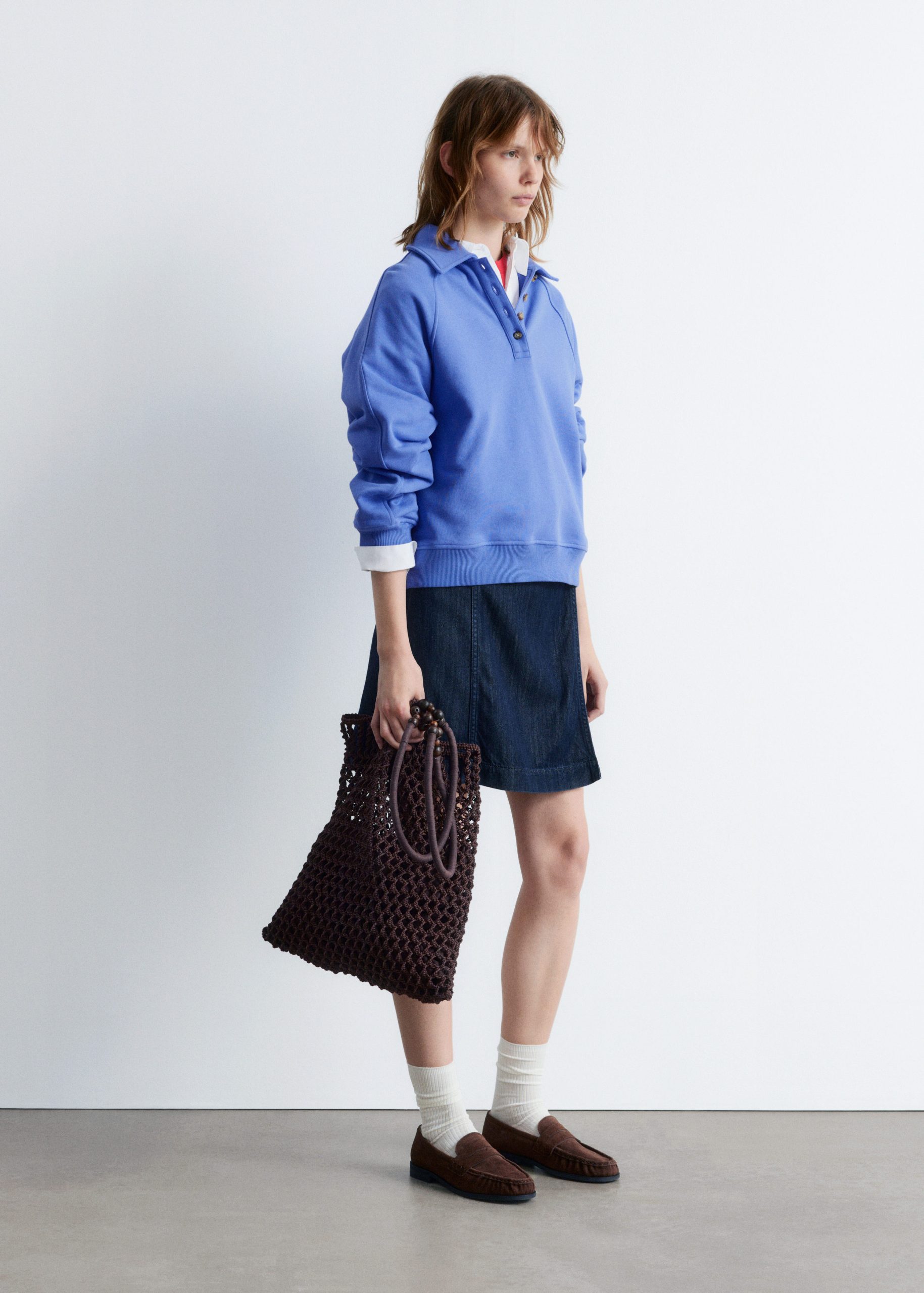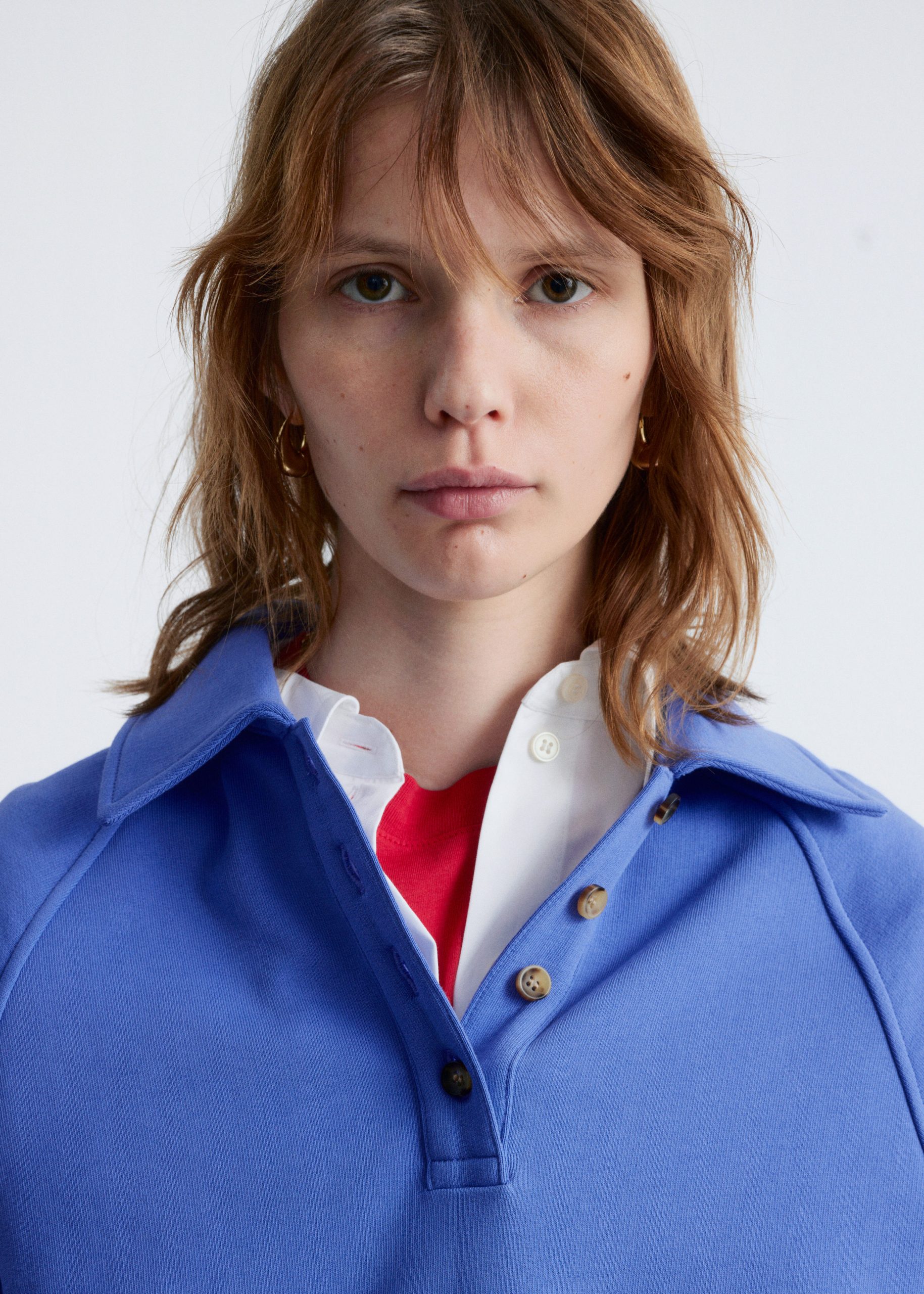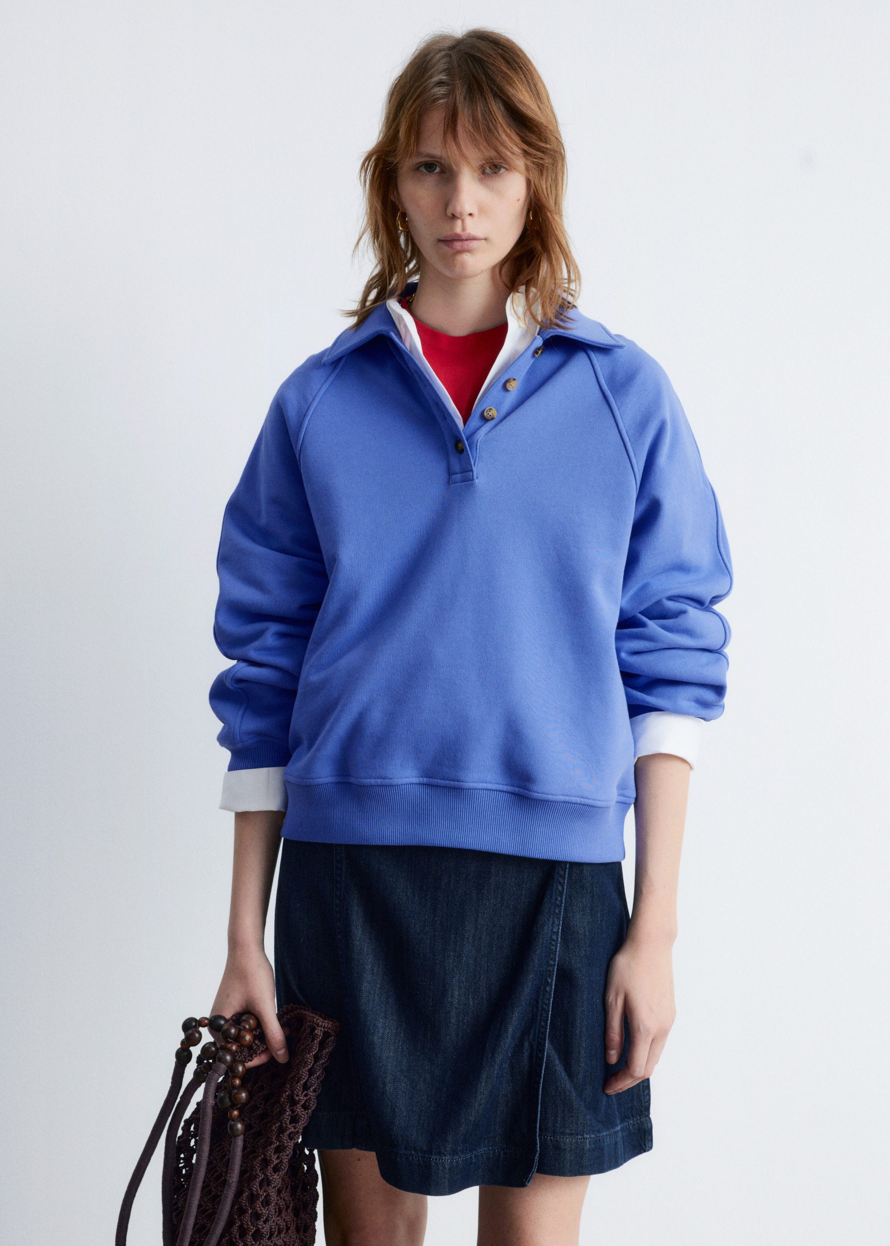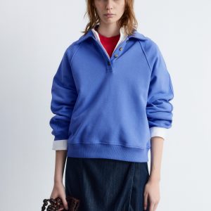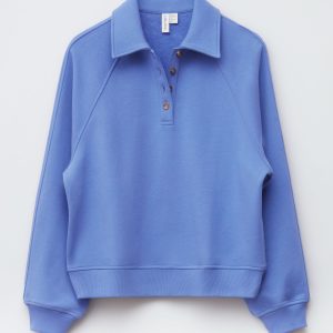 Polo sweatshirt featuring a classic collar and a front placket traced with buttons.