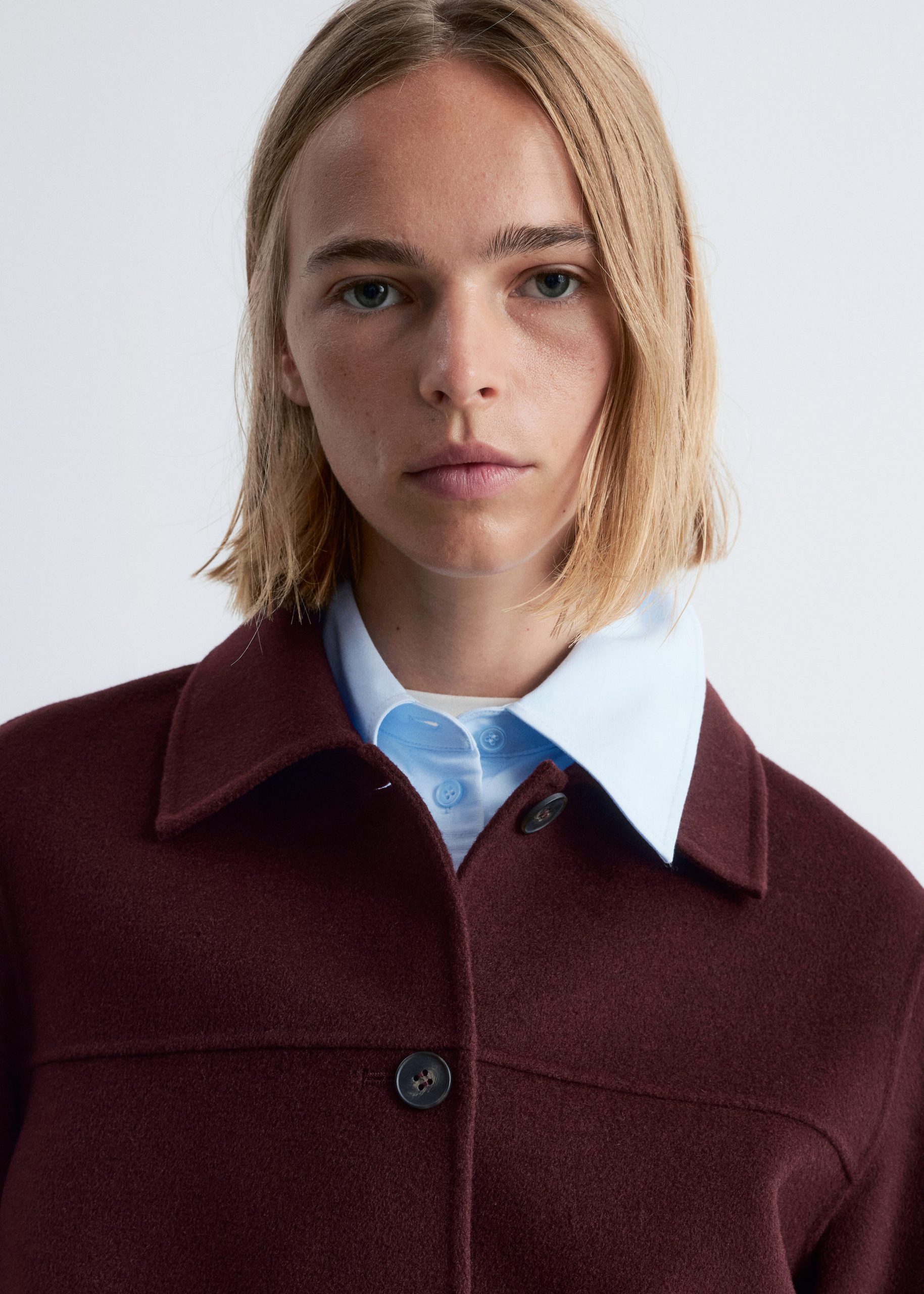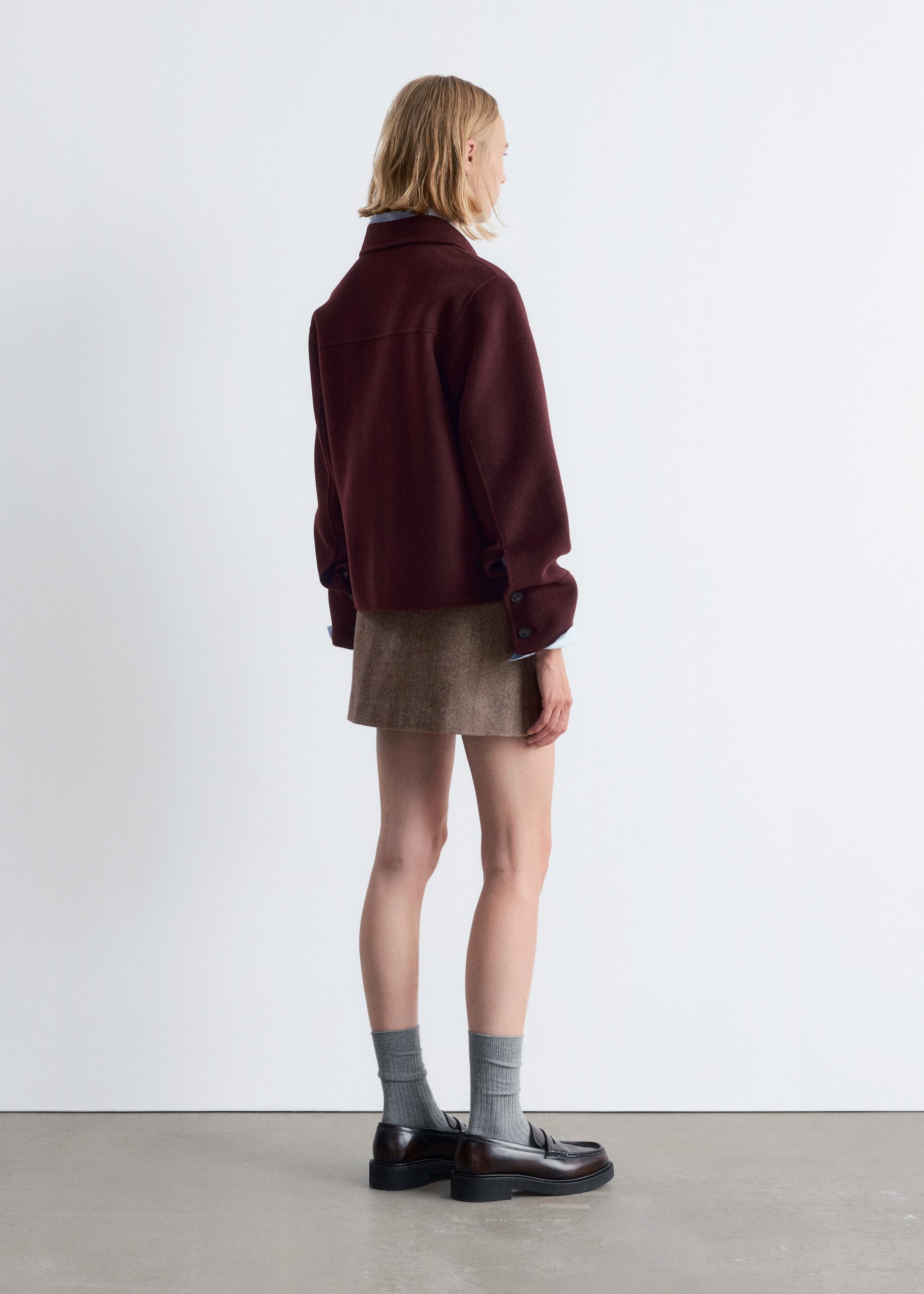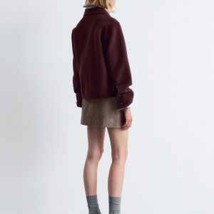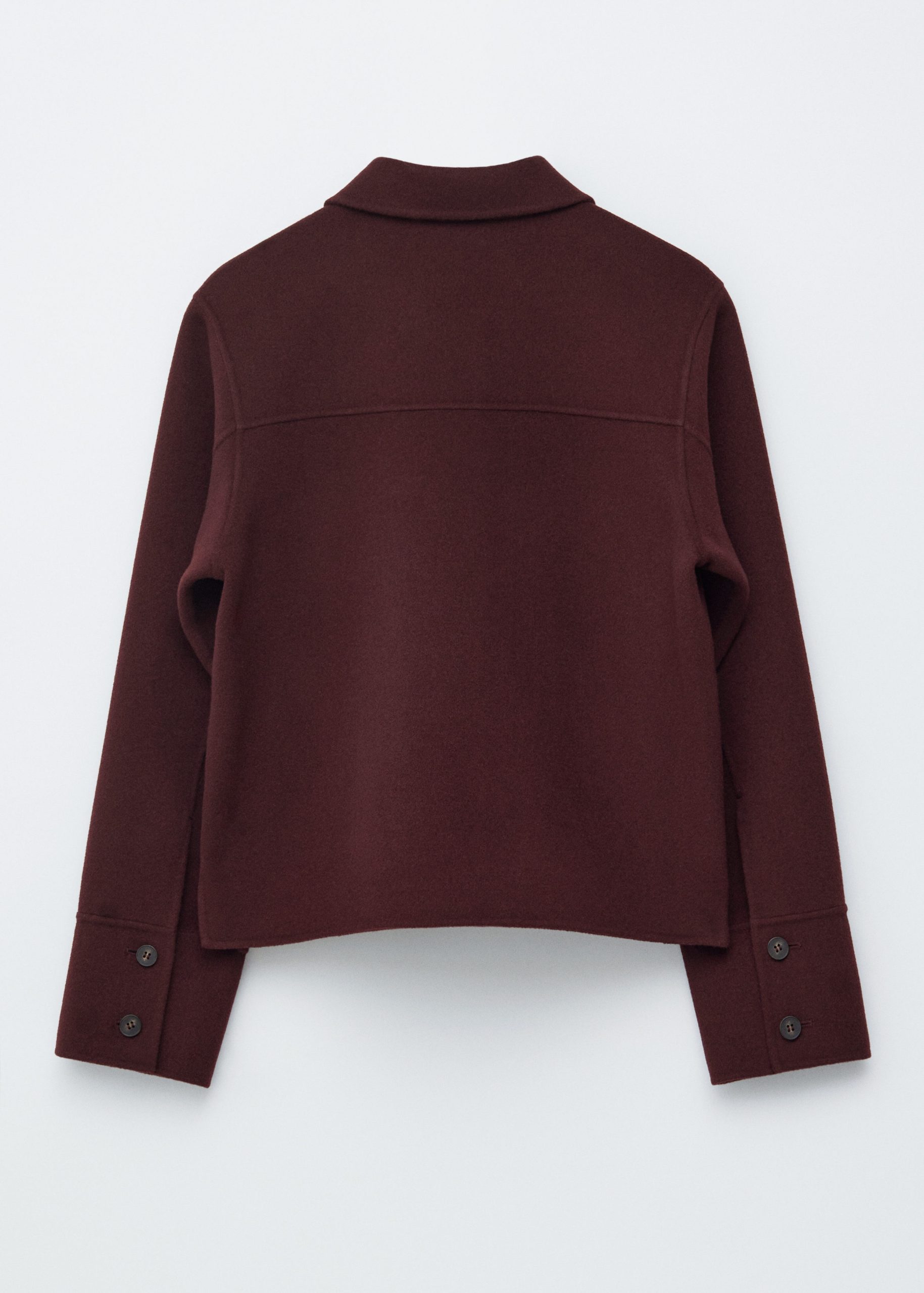 Collared wool-blend jacket featuring a classic collar, and large duo patch pockets in the front.