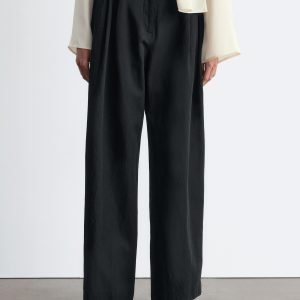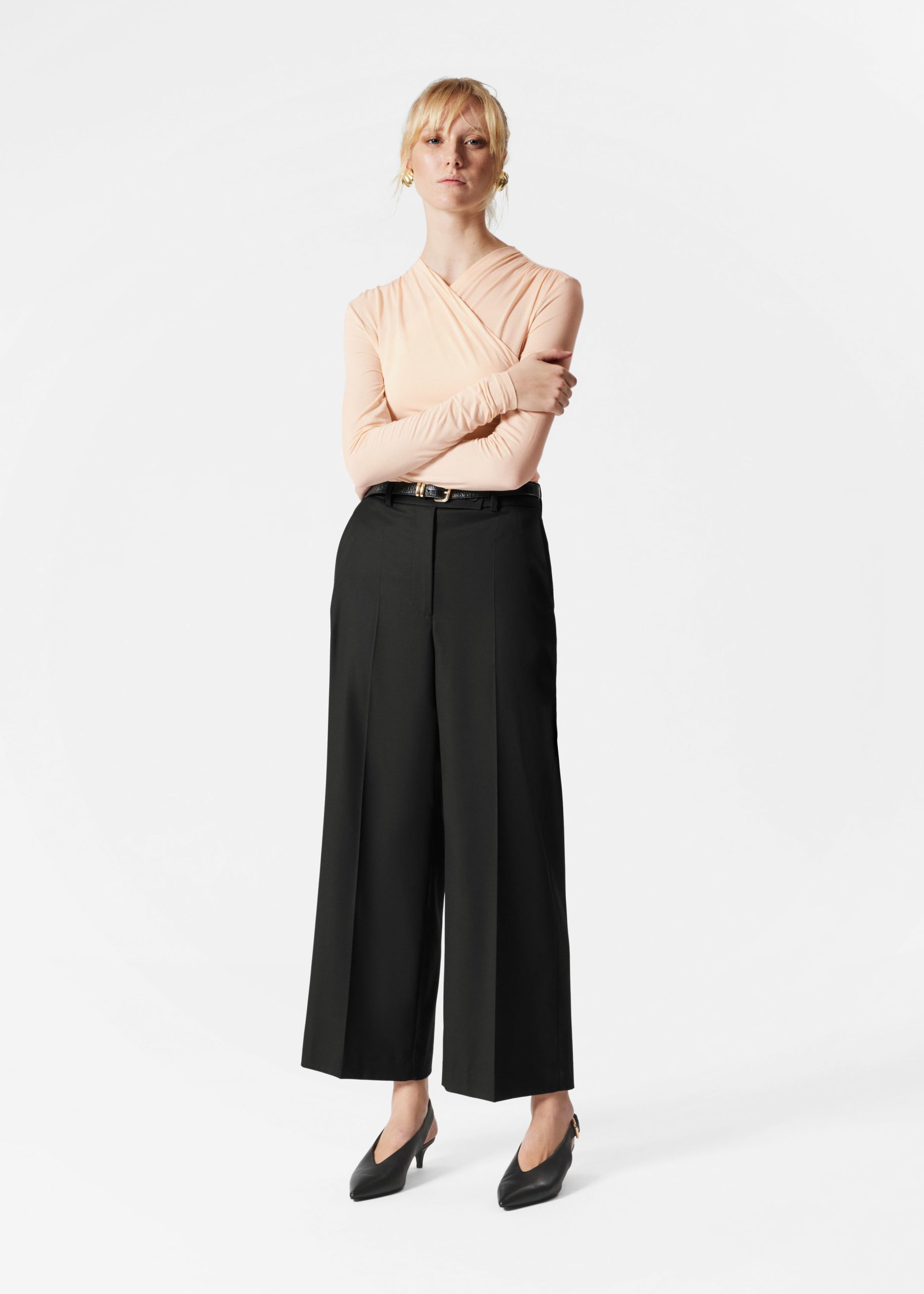 Tailored high-waist trousers with a cropped silhouette. Featuring press creases.