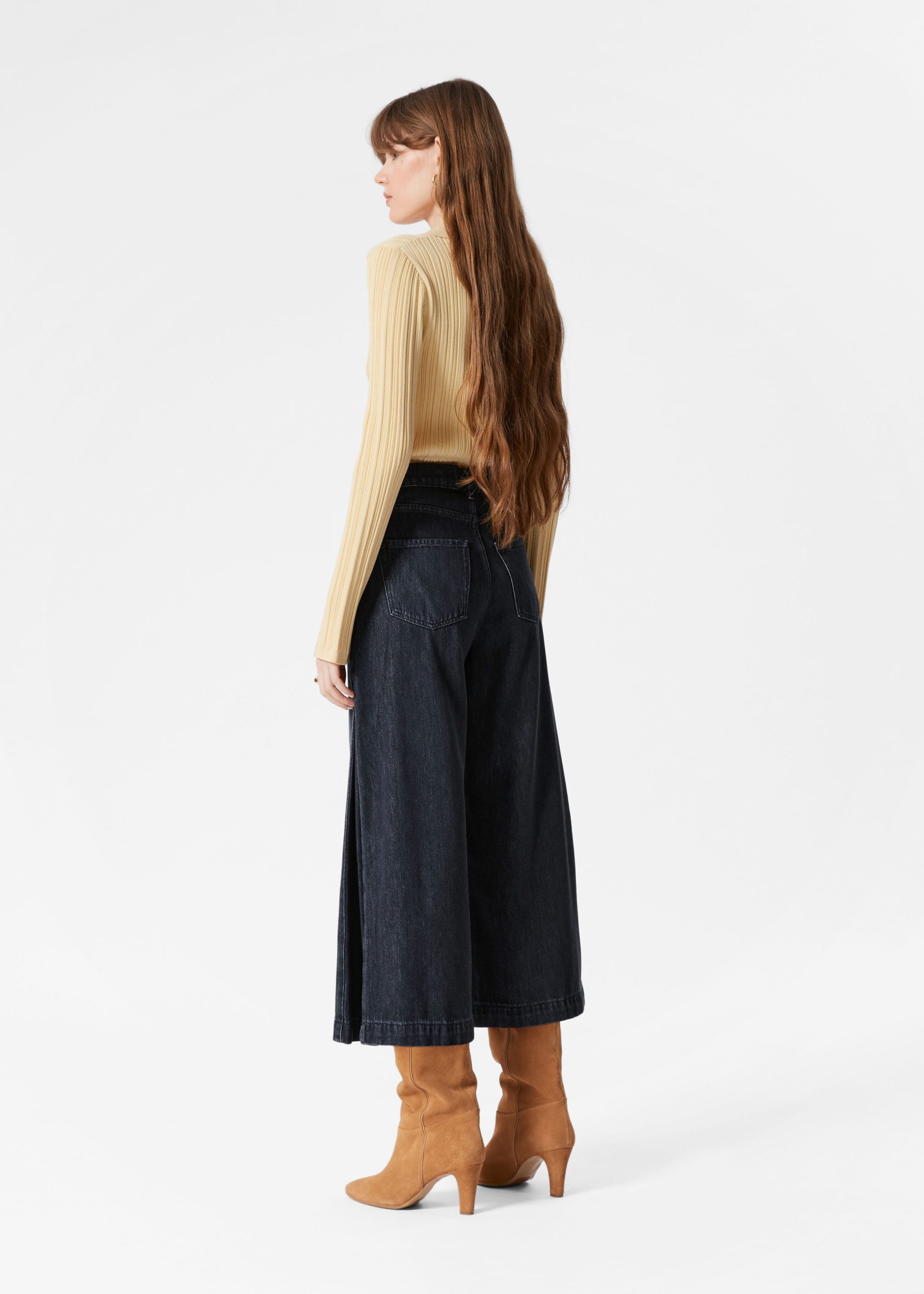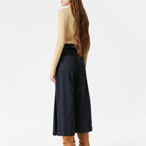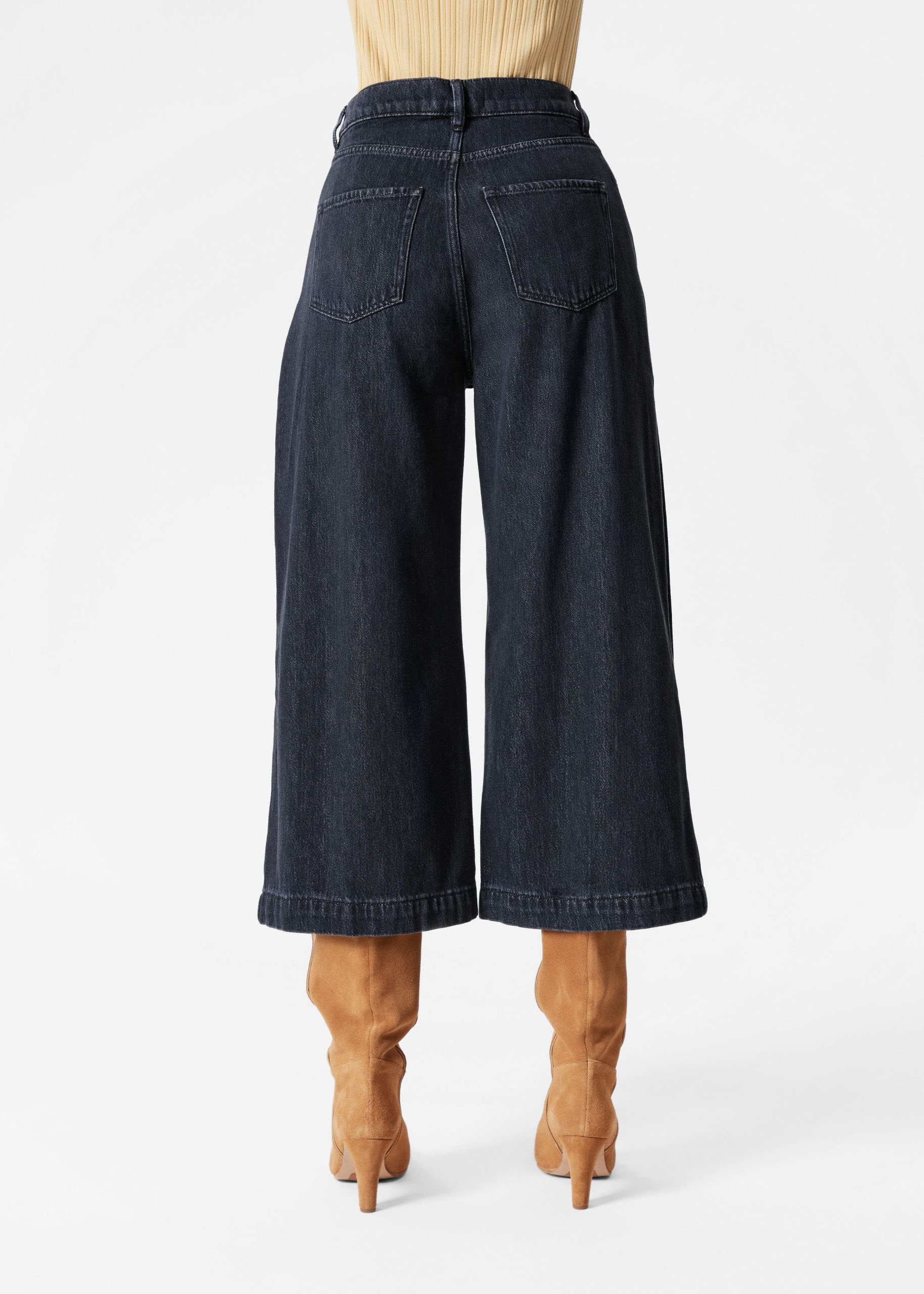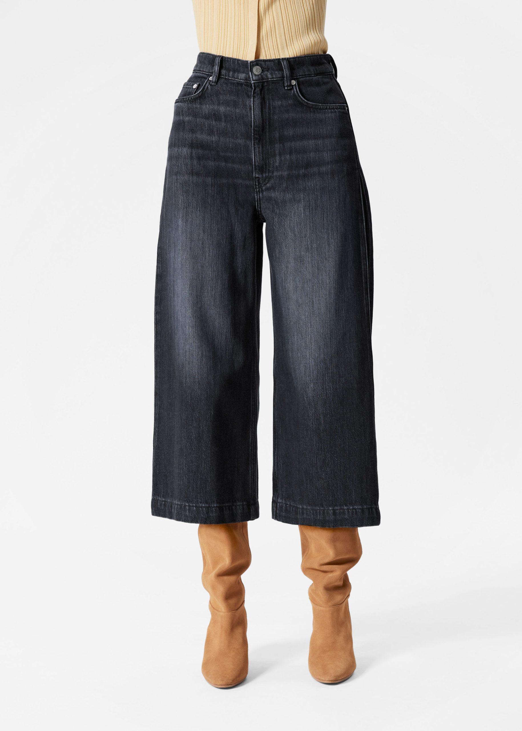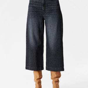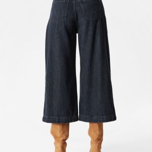 High-waisted jeans featuring wide legs that cut off mid-calf in a culotte silhouette. Designed with a classic 5-pocket denim finish.