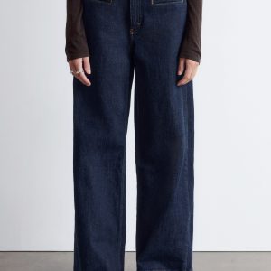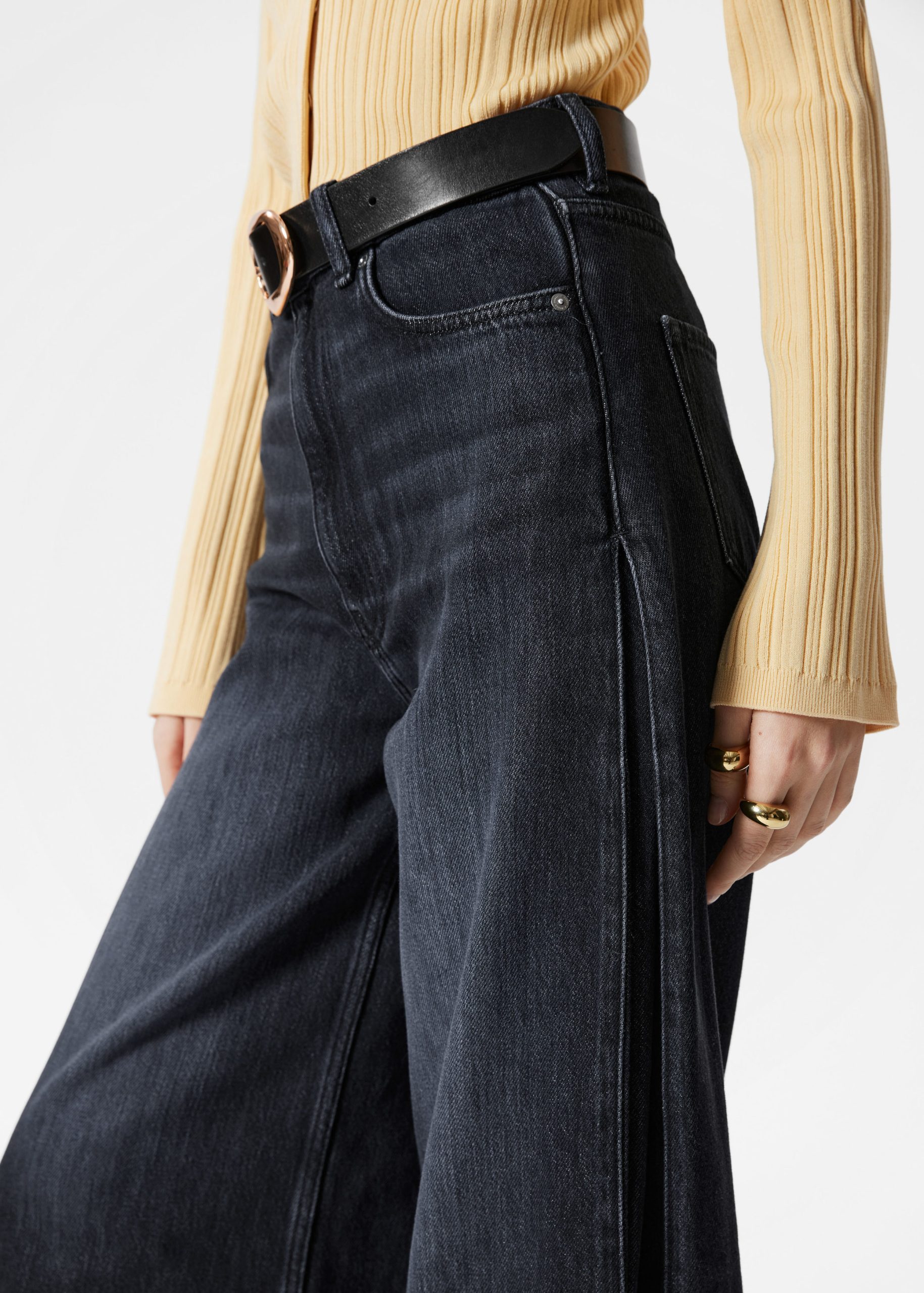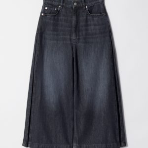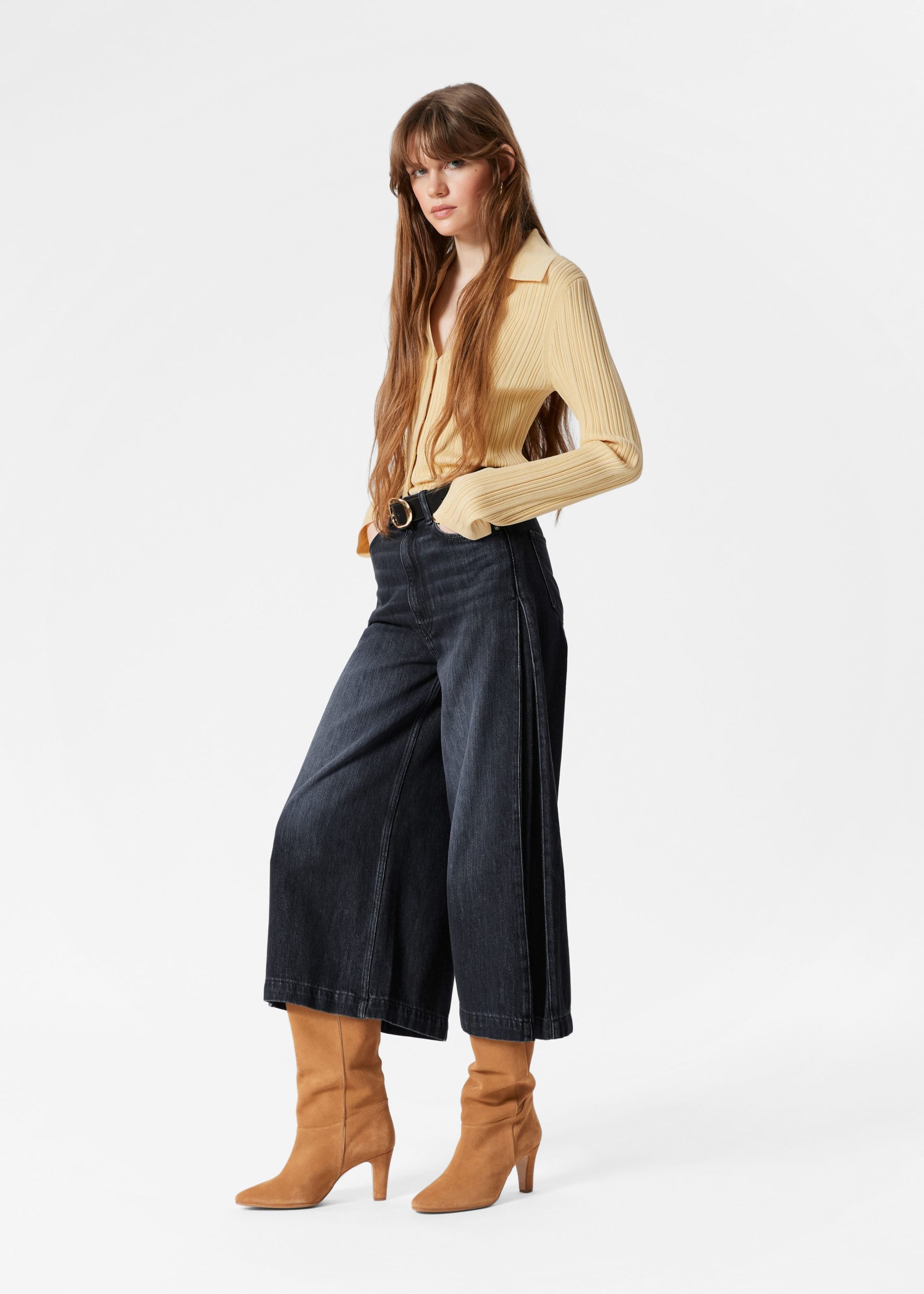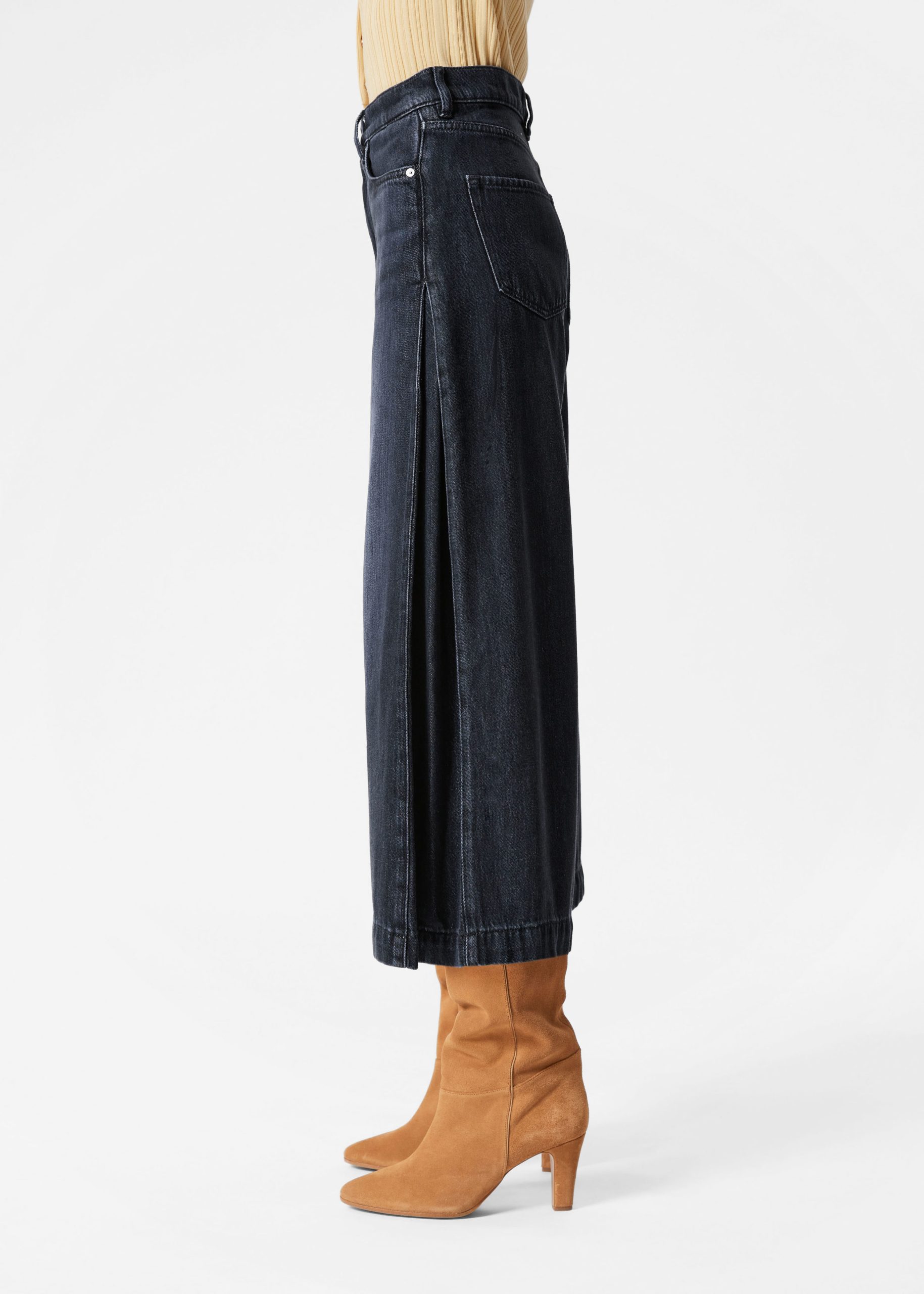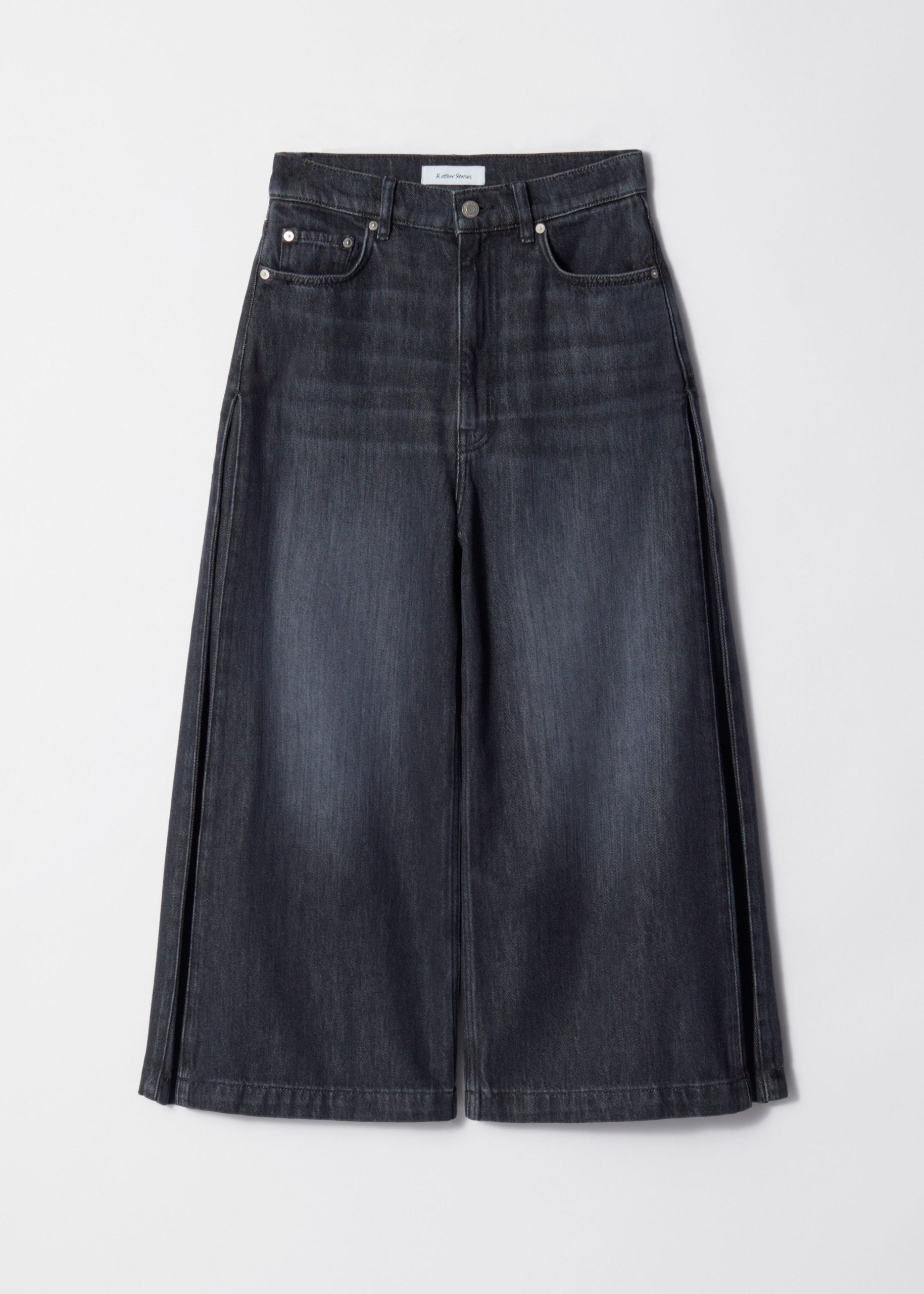 High-waisted jeans featuring wide legs that cut off mid-calf in a culotte silhouette. Designed with a classic 5-pocket denim finish.