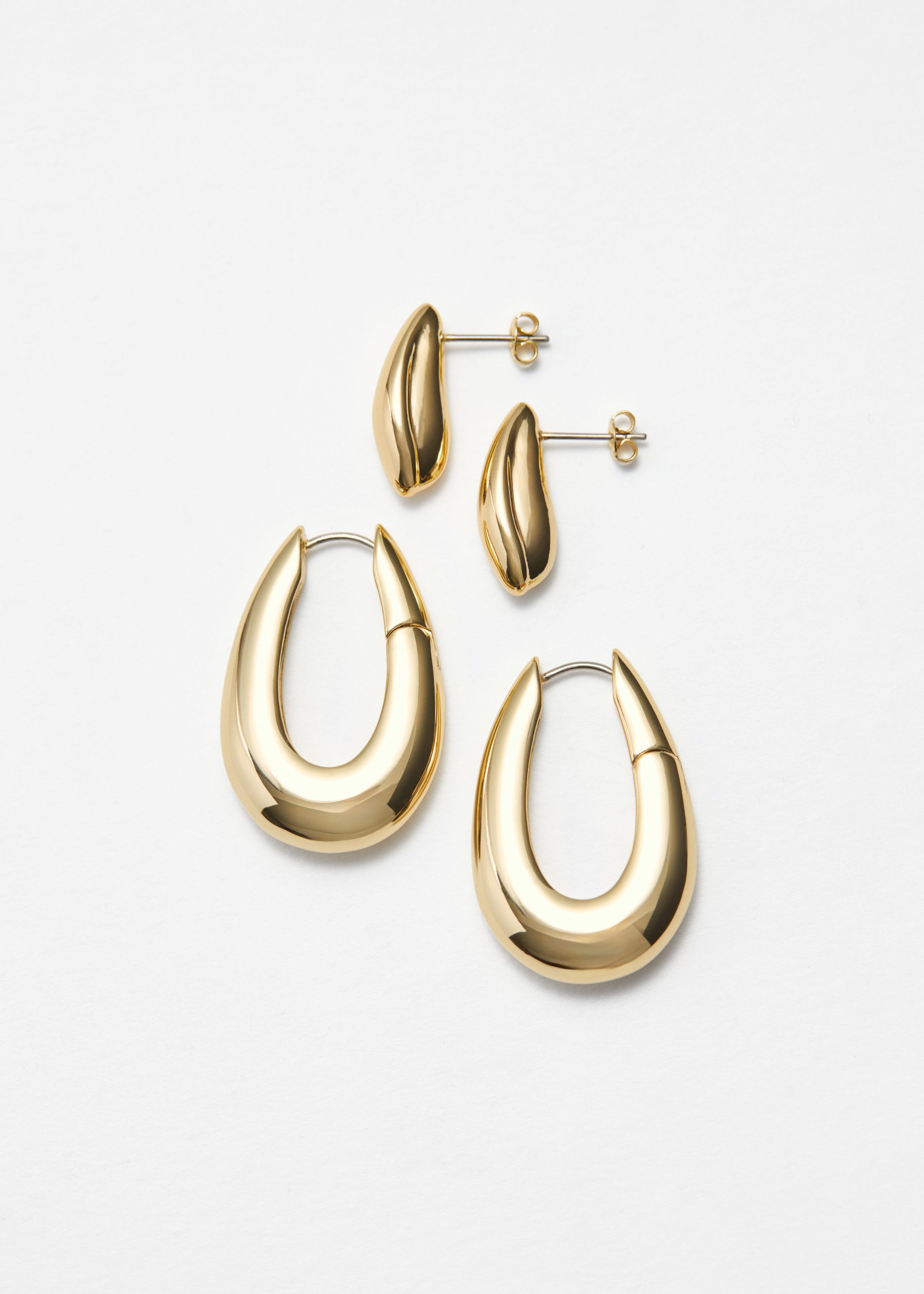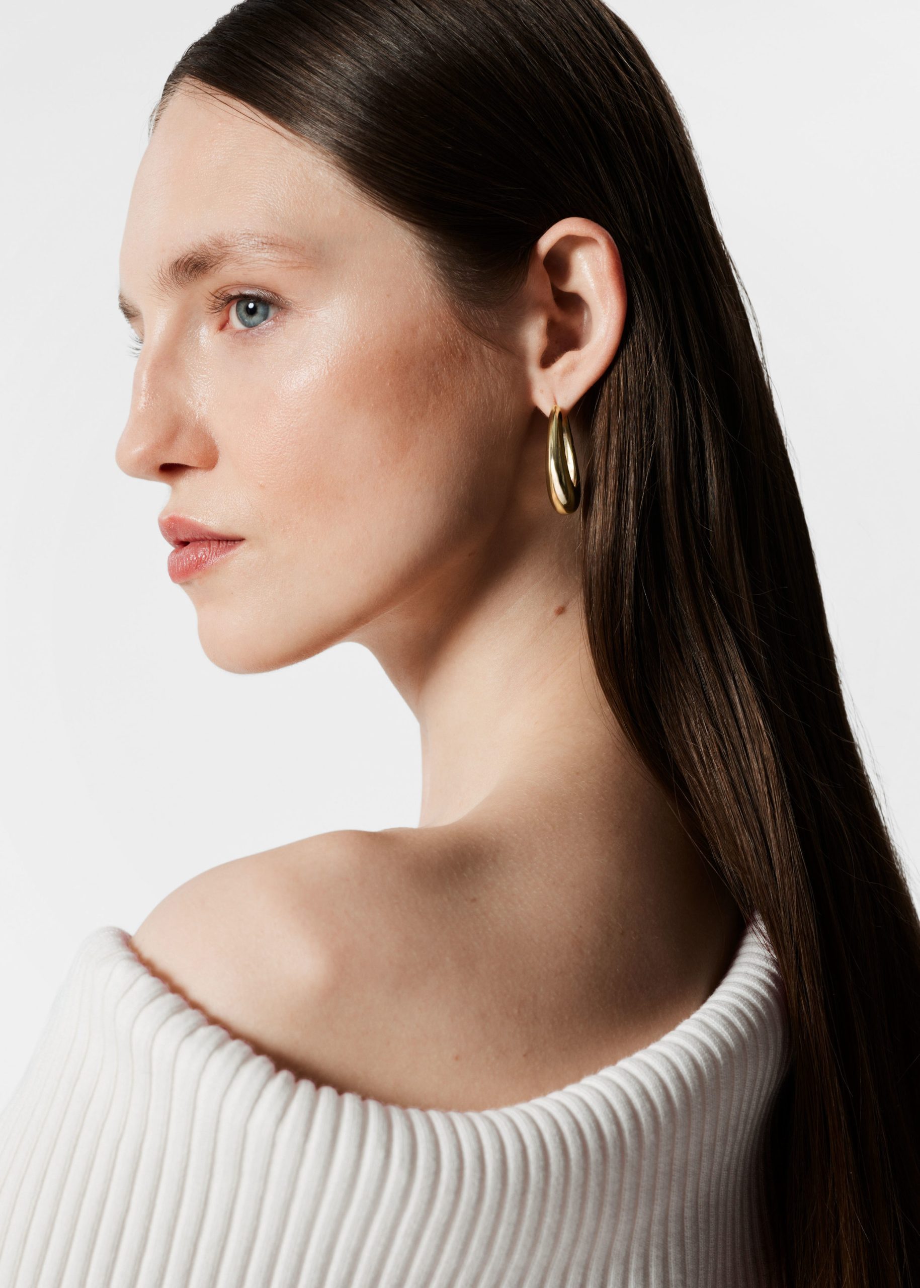A contemporary twist on the classic stud, these earrings feature a delicate front drop with a gently twisted silhouette and a carved line that enhances their sculptural appeal. Crafted from brass that’s polished to a high shine.