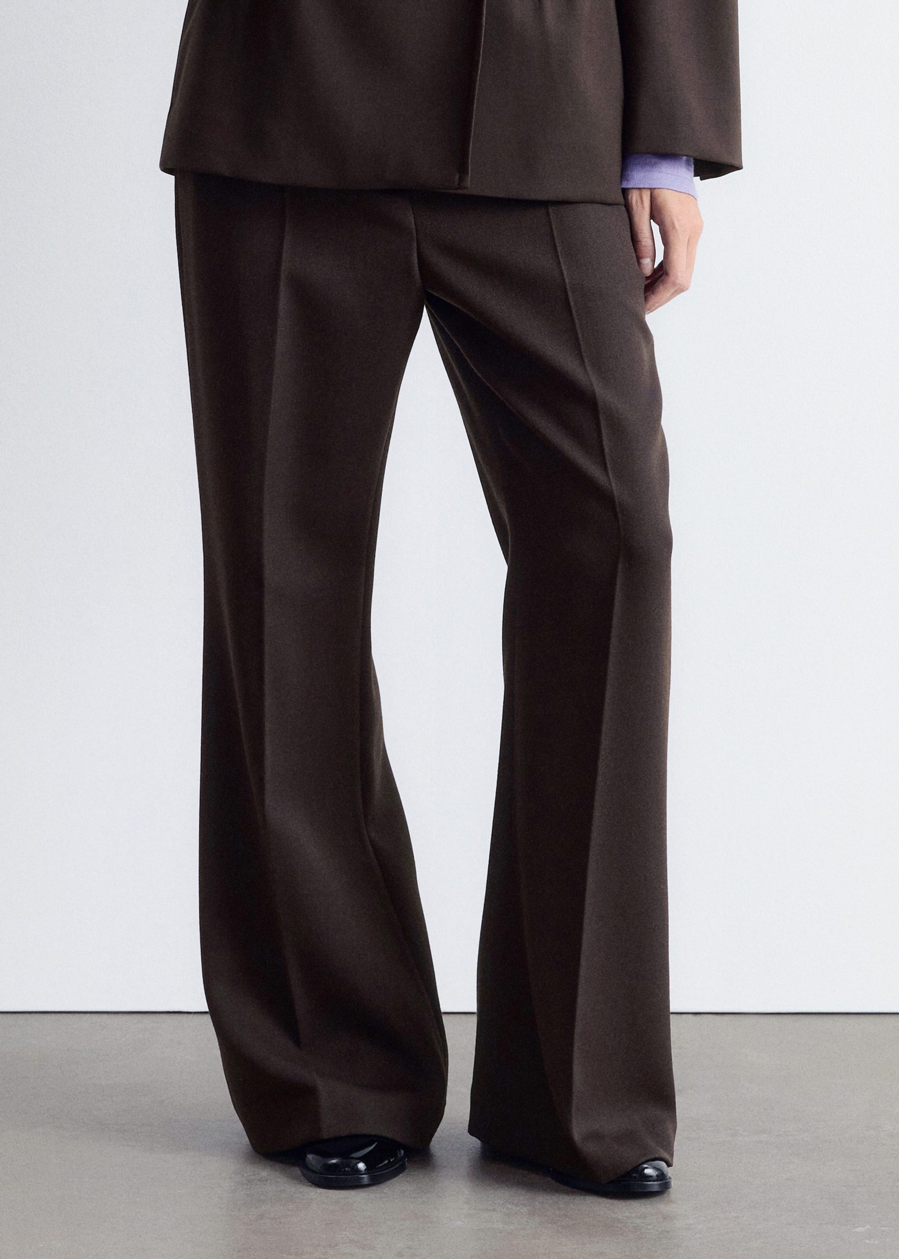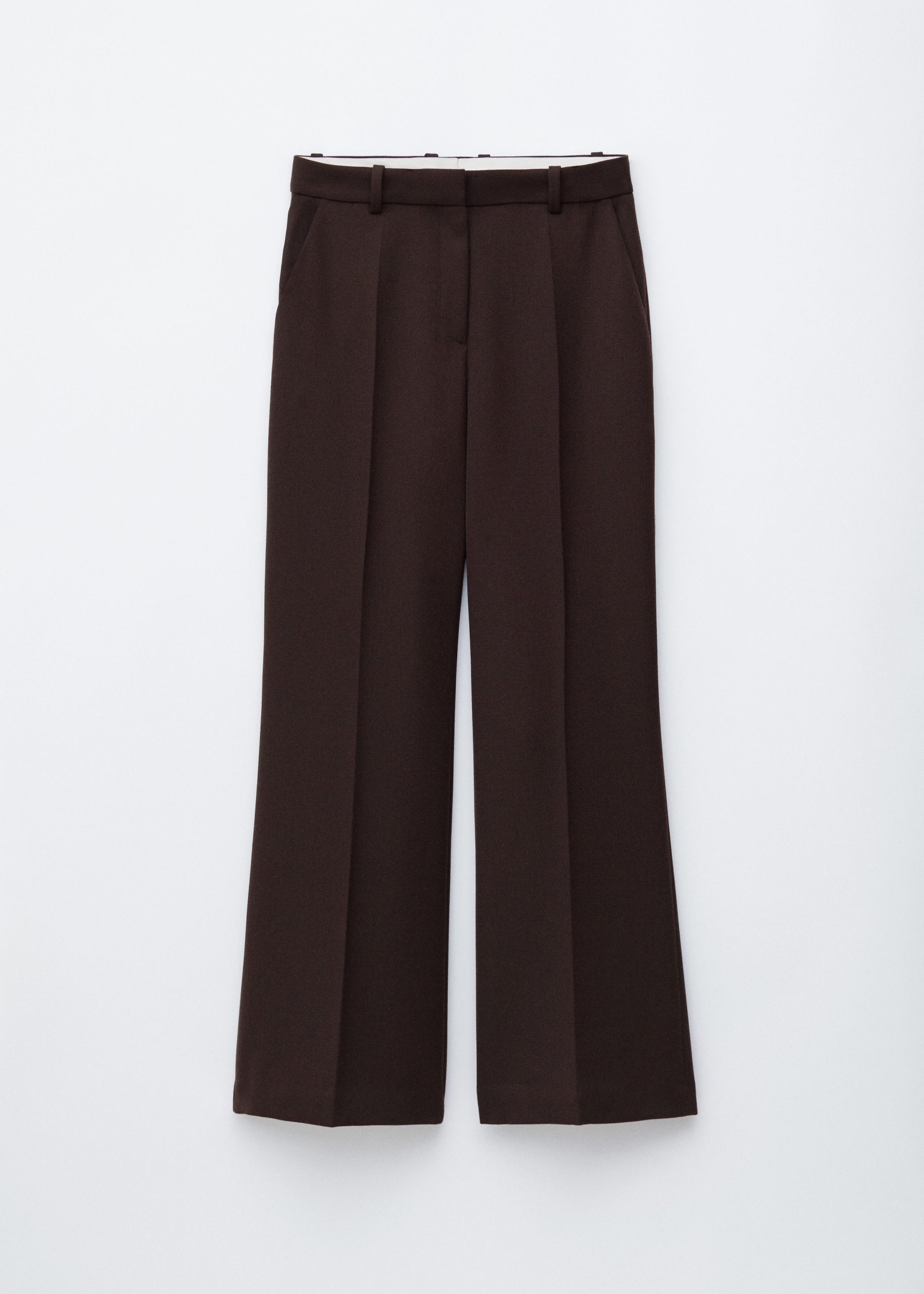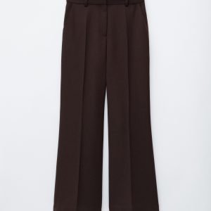 These trousers are crafted from a wool blend, and cut in a relaxed silhouette. They feature a mid-rise waist and long, flared legs accented by sharp press-creases. Finished with slanted side pockets and a zipper with hook-and-eye closure.