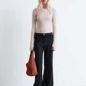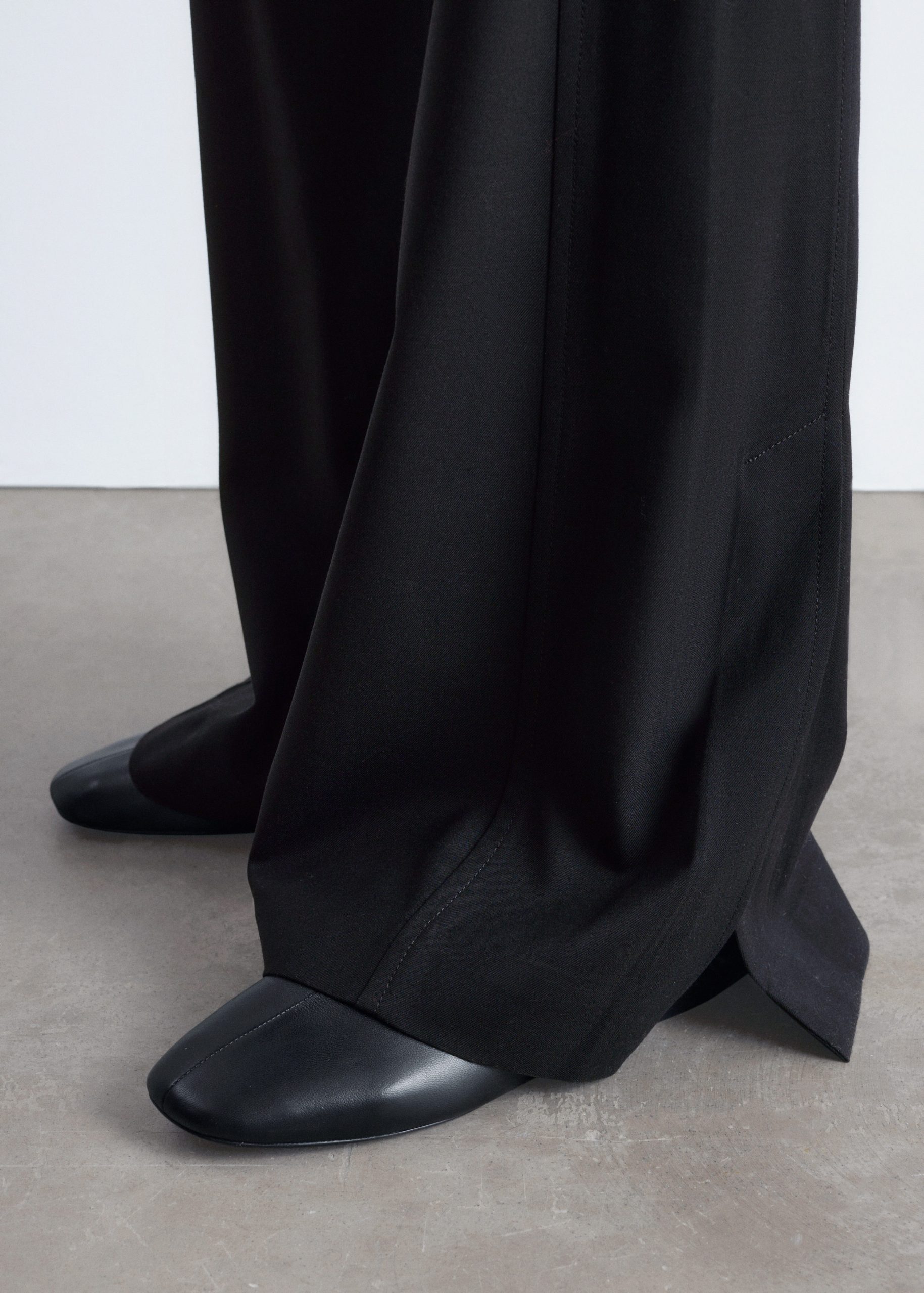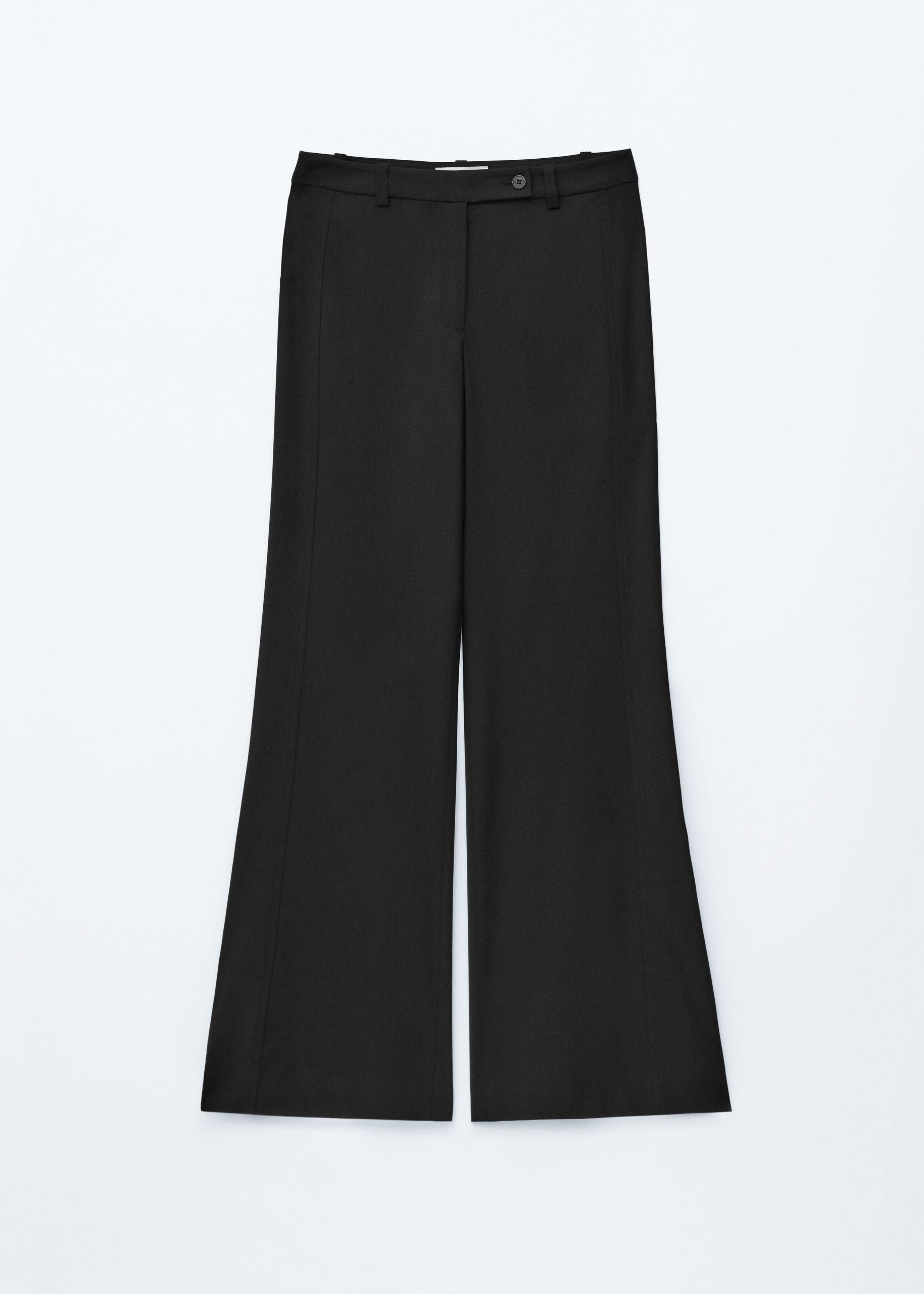 These trousers are crafted from a twill wool-blend. Designed with a regular waist and full-length flared legs with side panels and subtle vents at the hem. Finished with a zip fly with buttoned tab, and two welt pockets at the back.