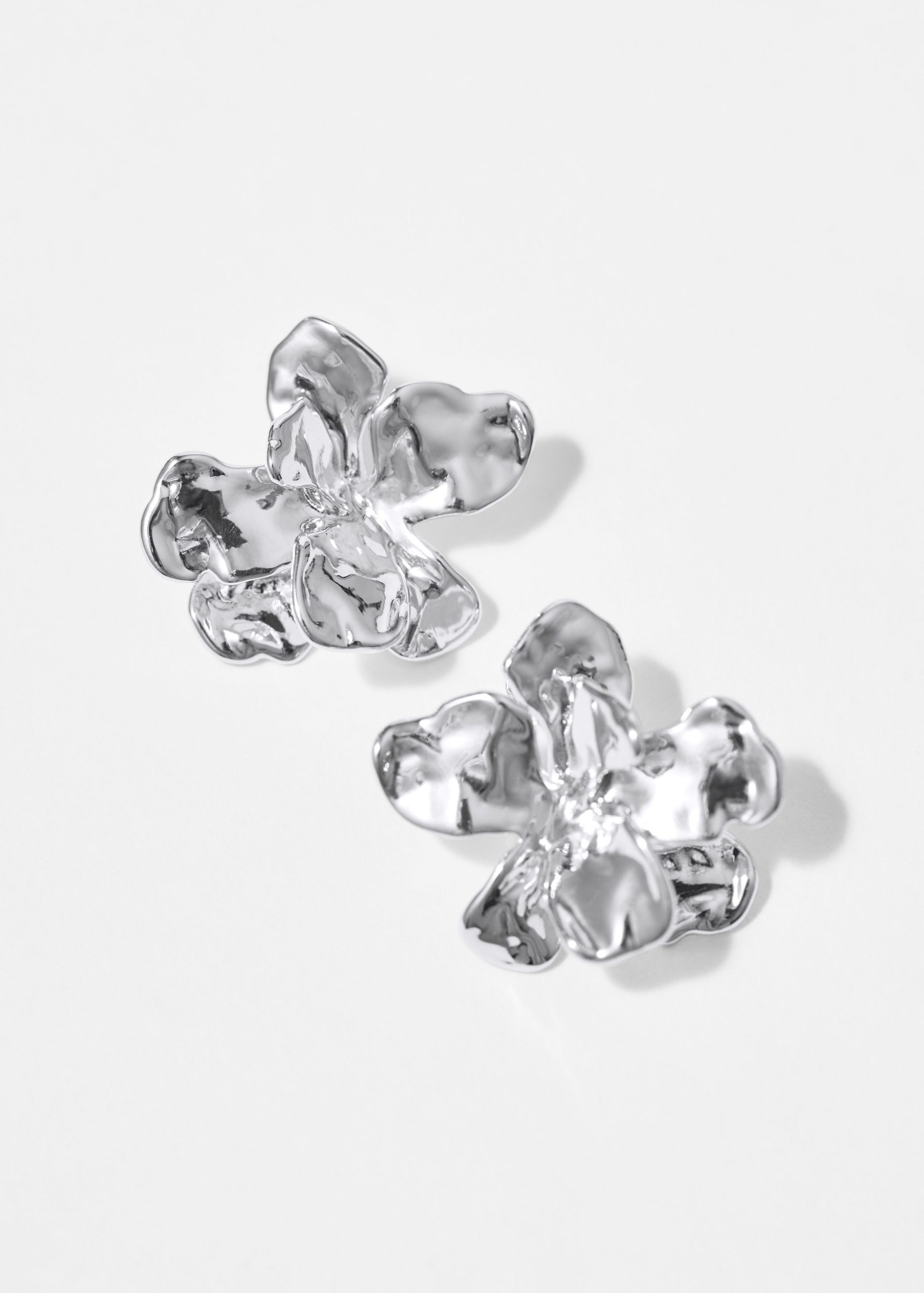 Crafted from polished brass, these stud earrings are sculpted in an oversized flower shape. The layered, irregular petals add texture and visual interest, enhancing the bold floral statement.