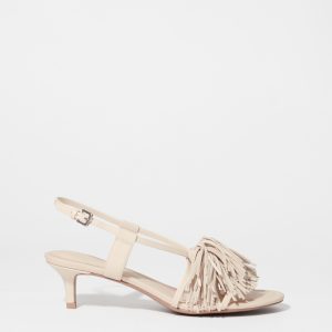These sandals are decorated with swishy fringing. They’ve been crafted from supple leather and have adjustable slingback straps. The manageable heel offers 50mm of lift.