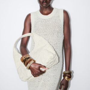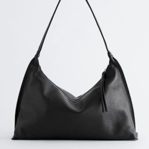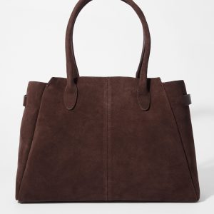 This tote bag offers an on-trend take on the bohemian look, with its slouchy silhouette and fringes on each side of the shoulder strap. It’s crafted in India from supple suede, with decorative trims and the fringes in leather, creating an interesting play of textures. The bag is finished with a zip at the top and includes a zipped inner pocket for storing smaller belongings. Both zips feature leather pulls, enhancing the bag’s dynamic, dangling features.