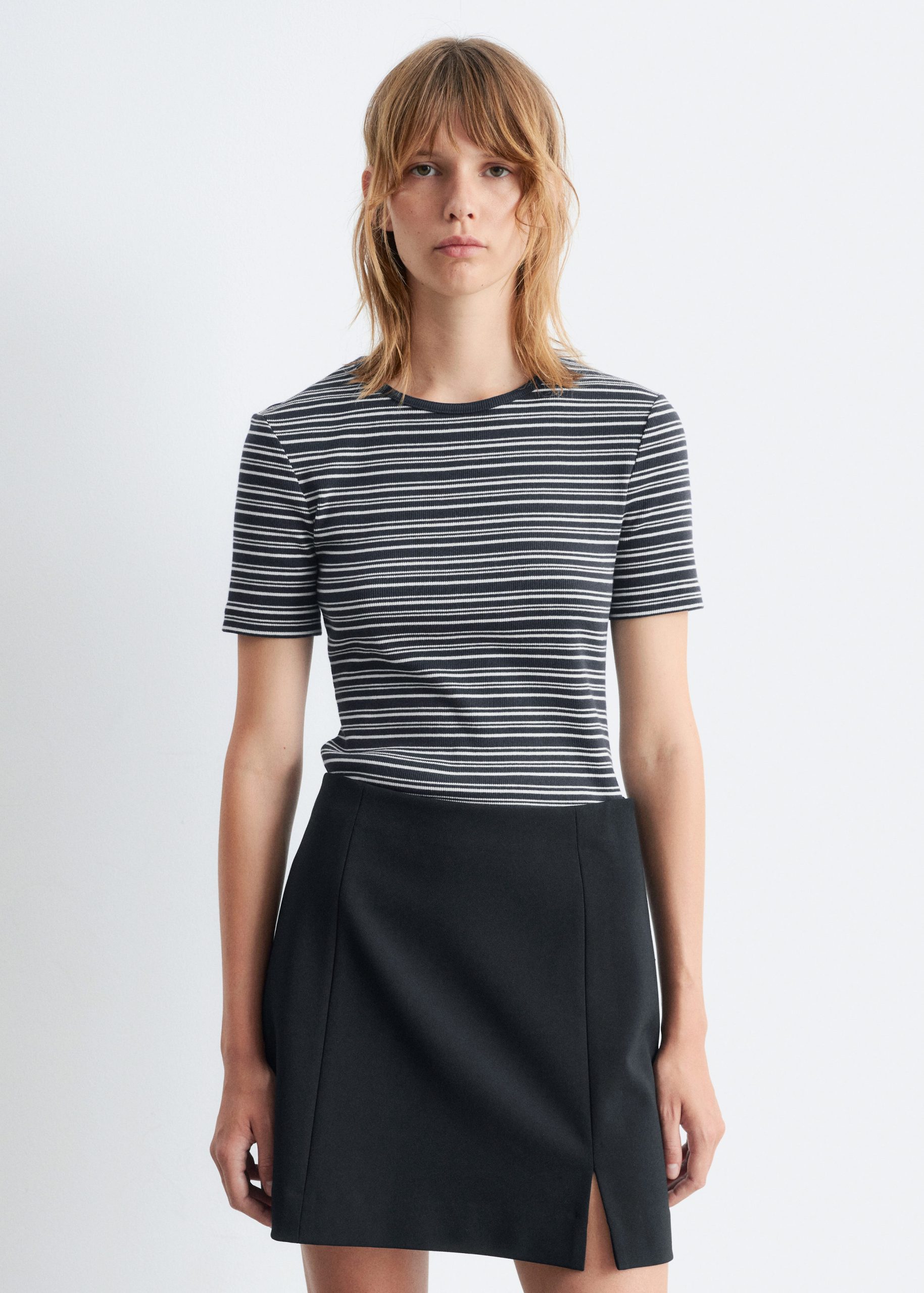 High-waist mini skirt with a clean finish. Detailed with vertical cutlines.Â
