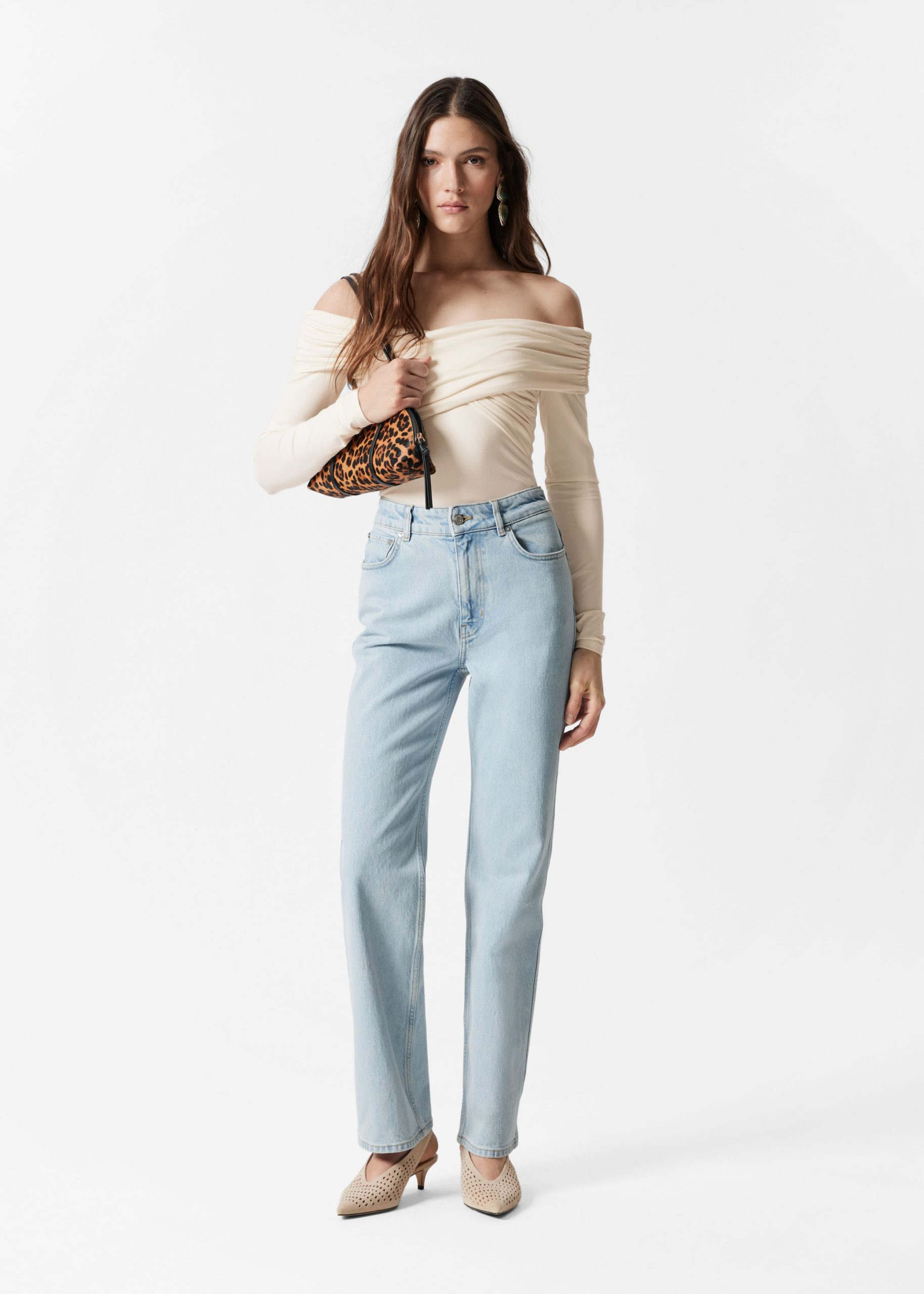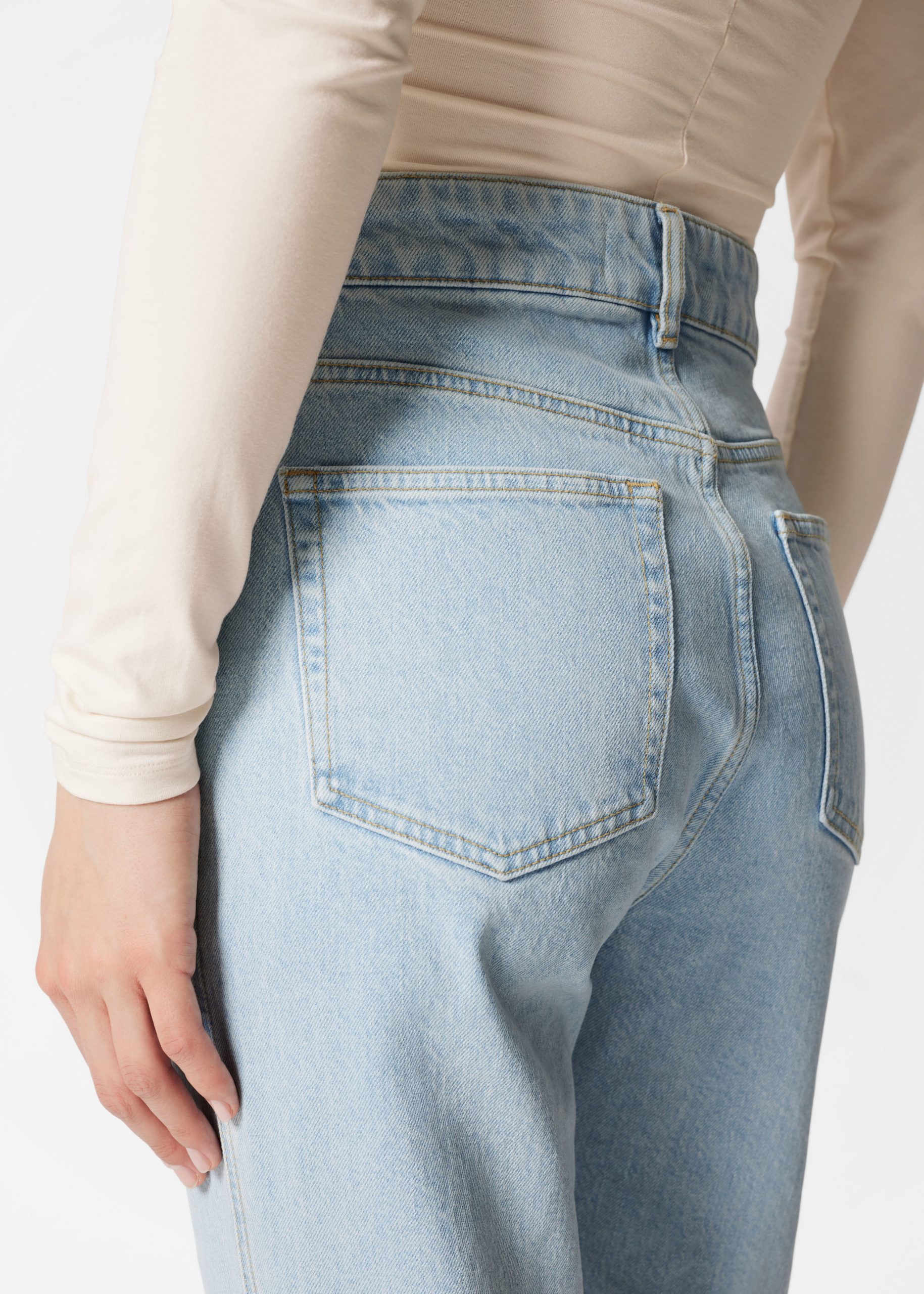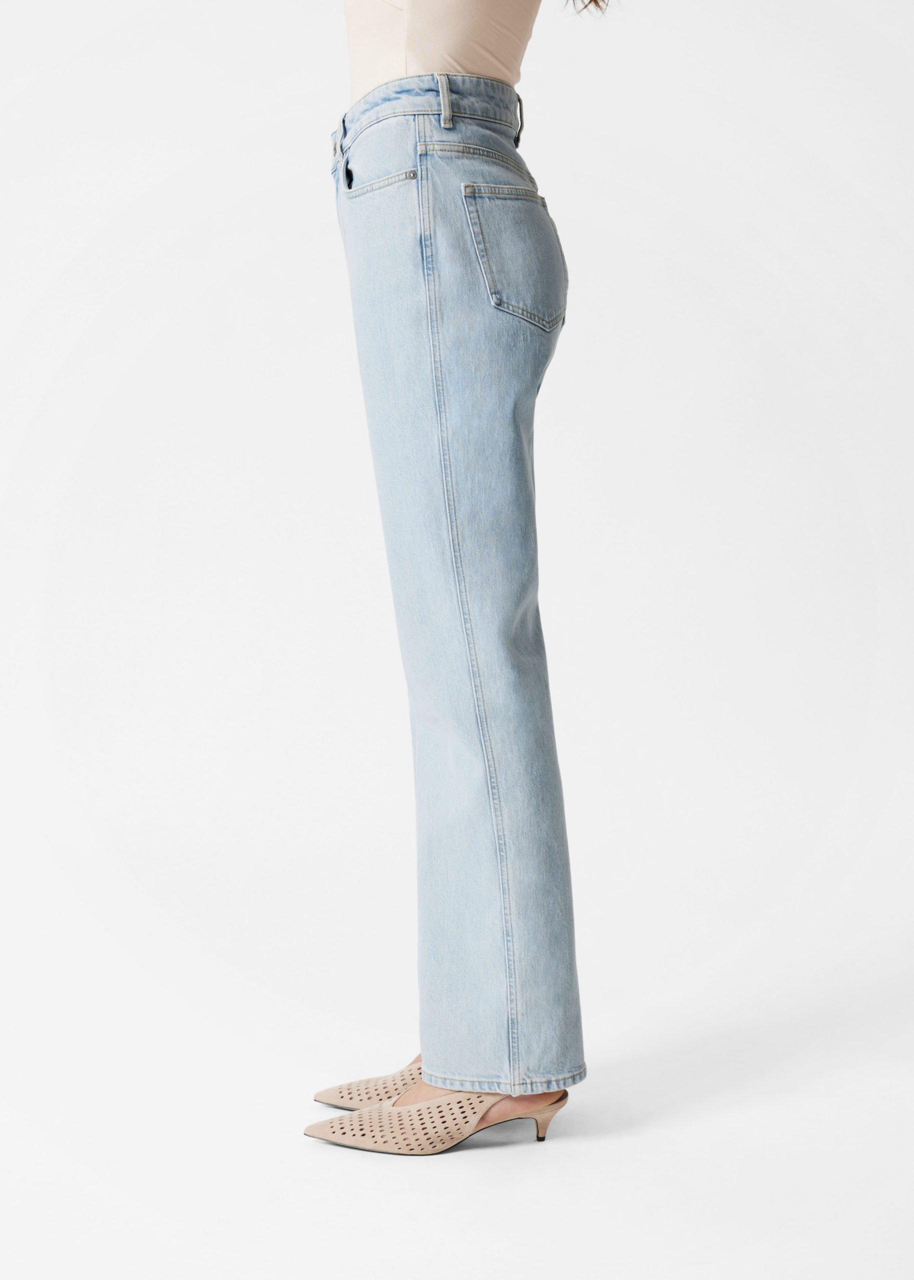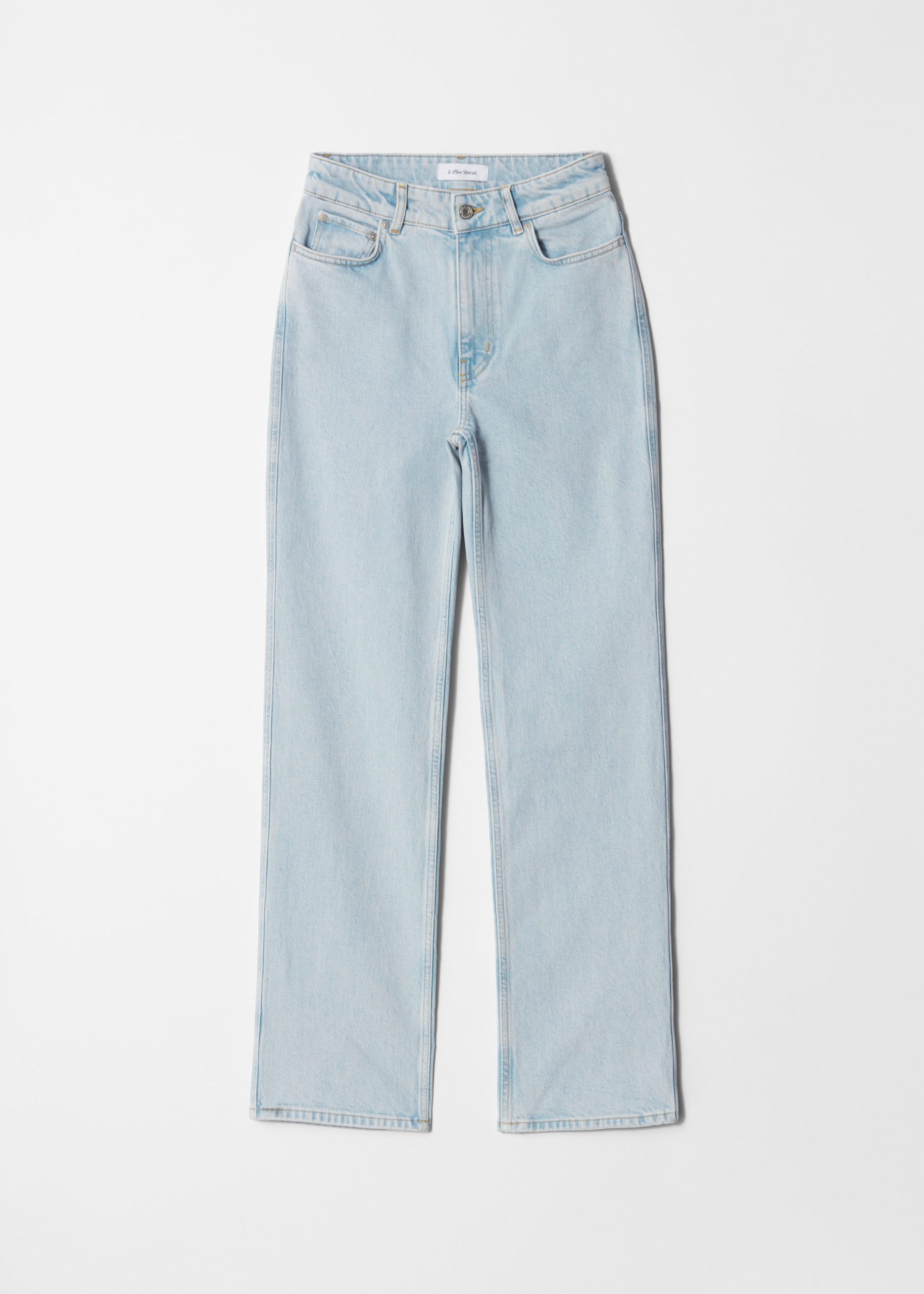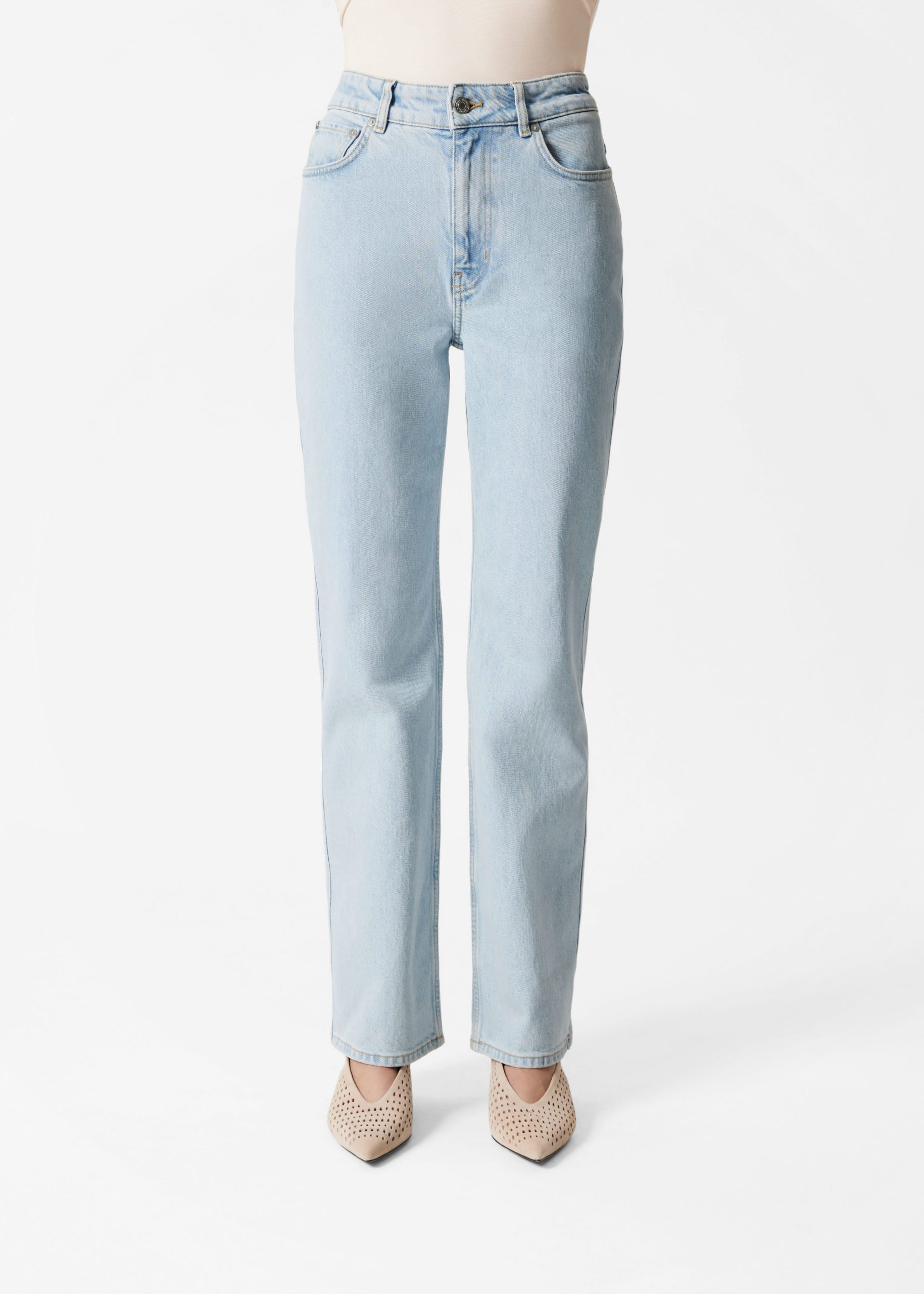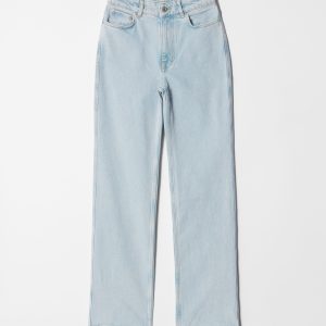 High-waist jeans designed with a dropped crotch and slim fit straight legs. Finished with a zip fly button closure and a classic 5-pocket denim design.Â