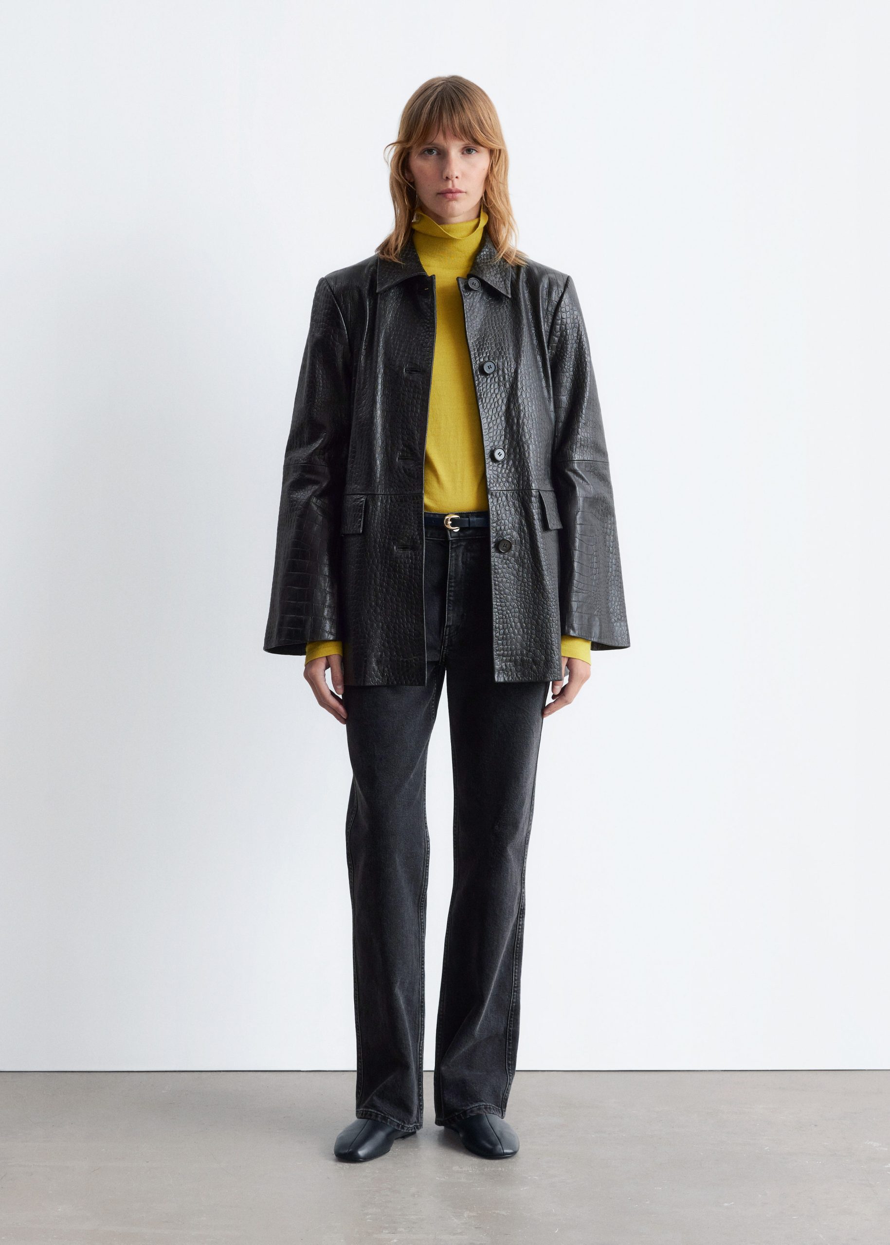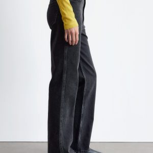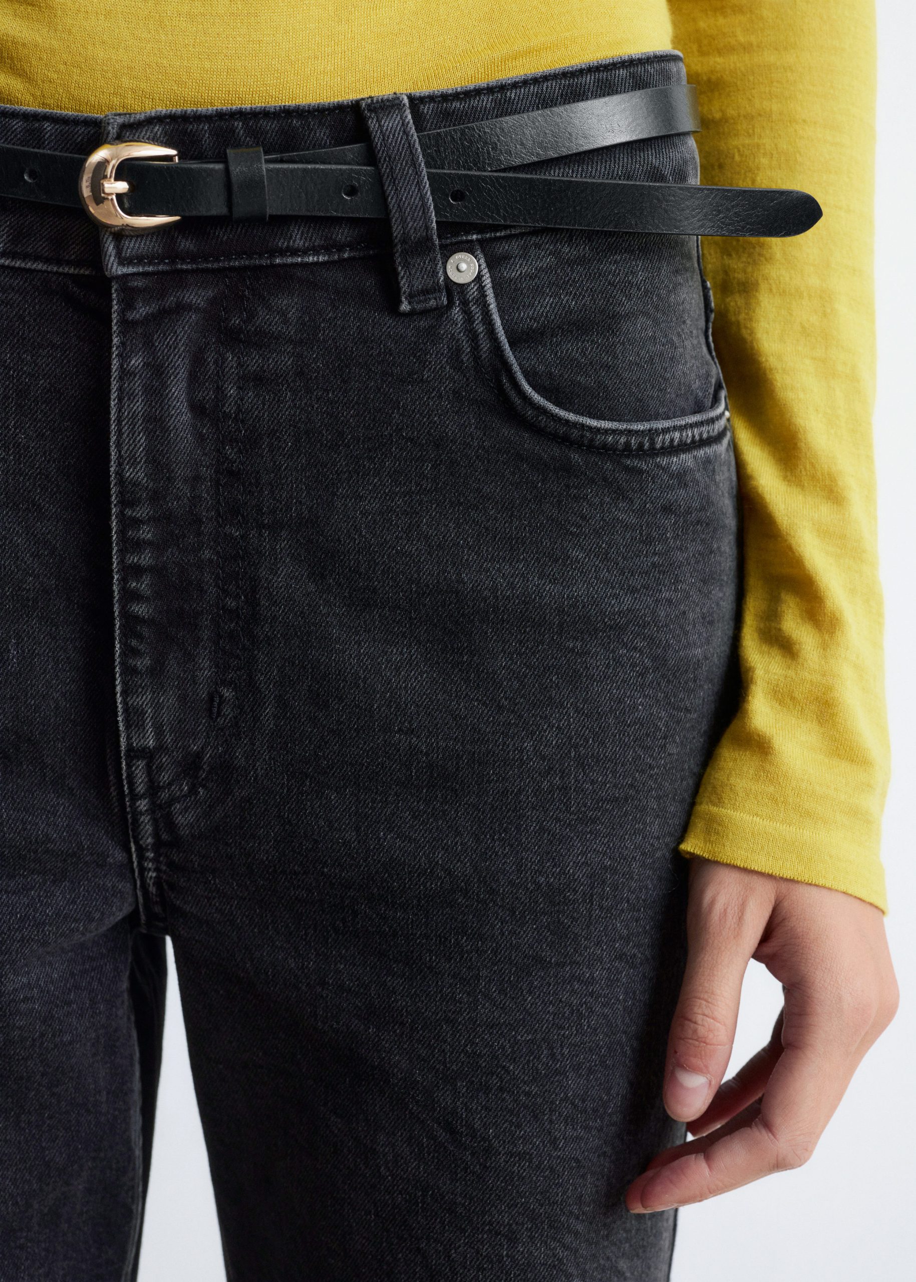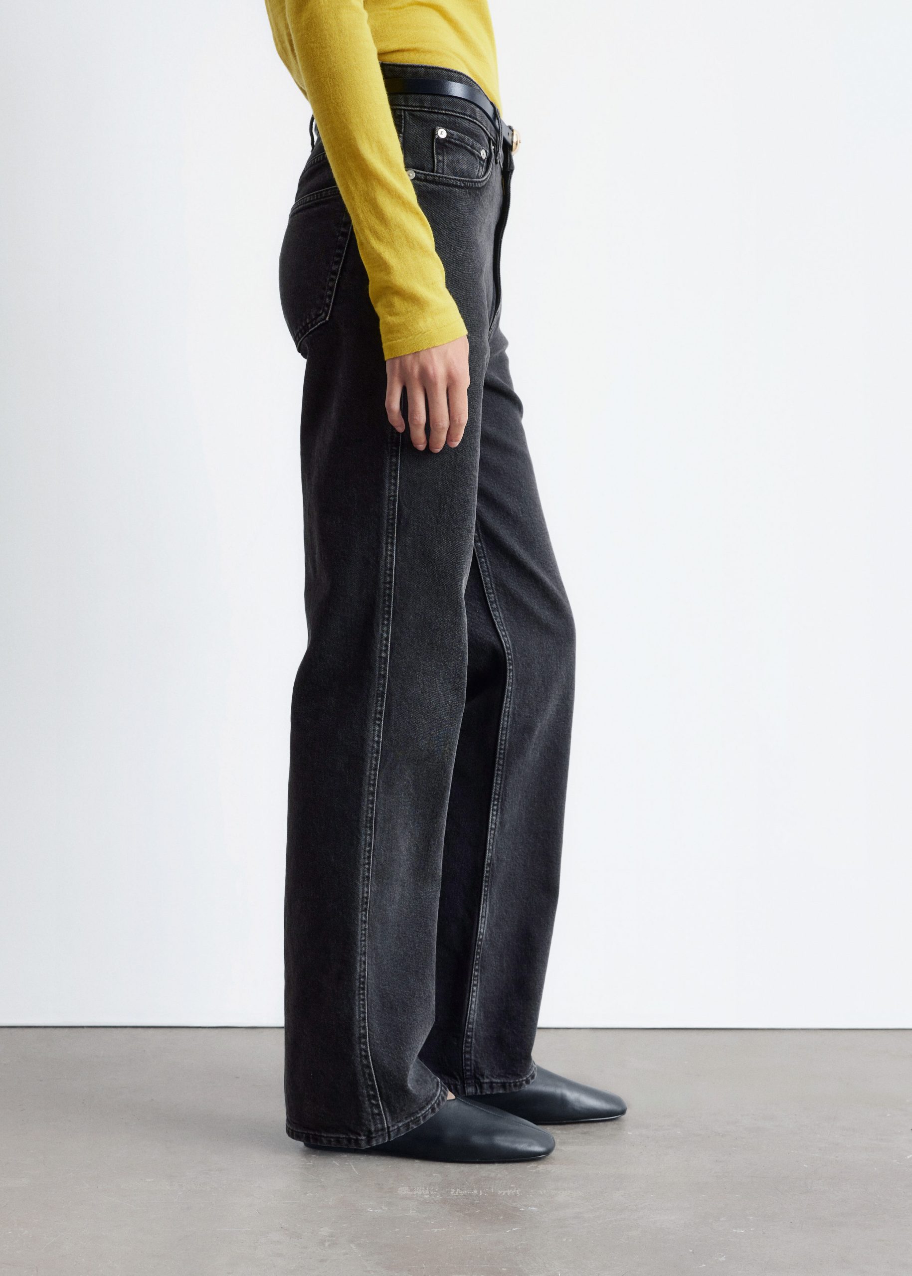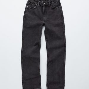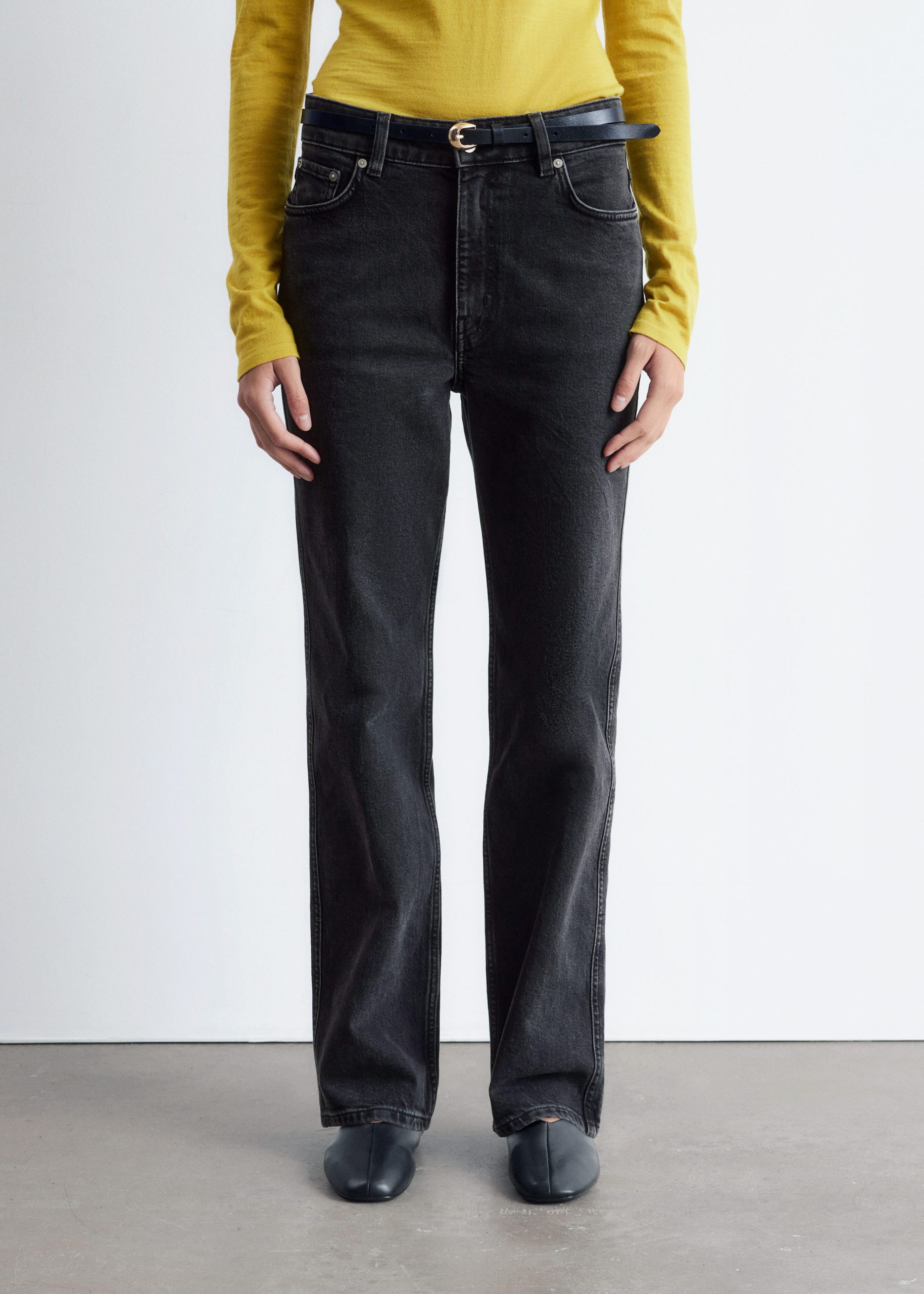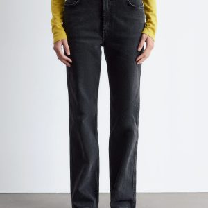 High-waist jeans designed with a dropped crotch and slim fit straight legs. Finished with a zip fly button closure and a classic 5-pocket denim design.Â