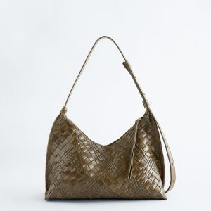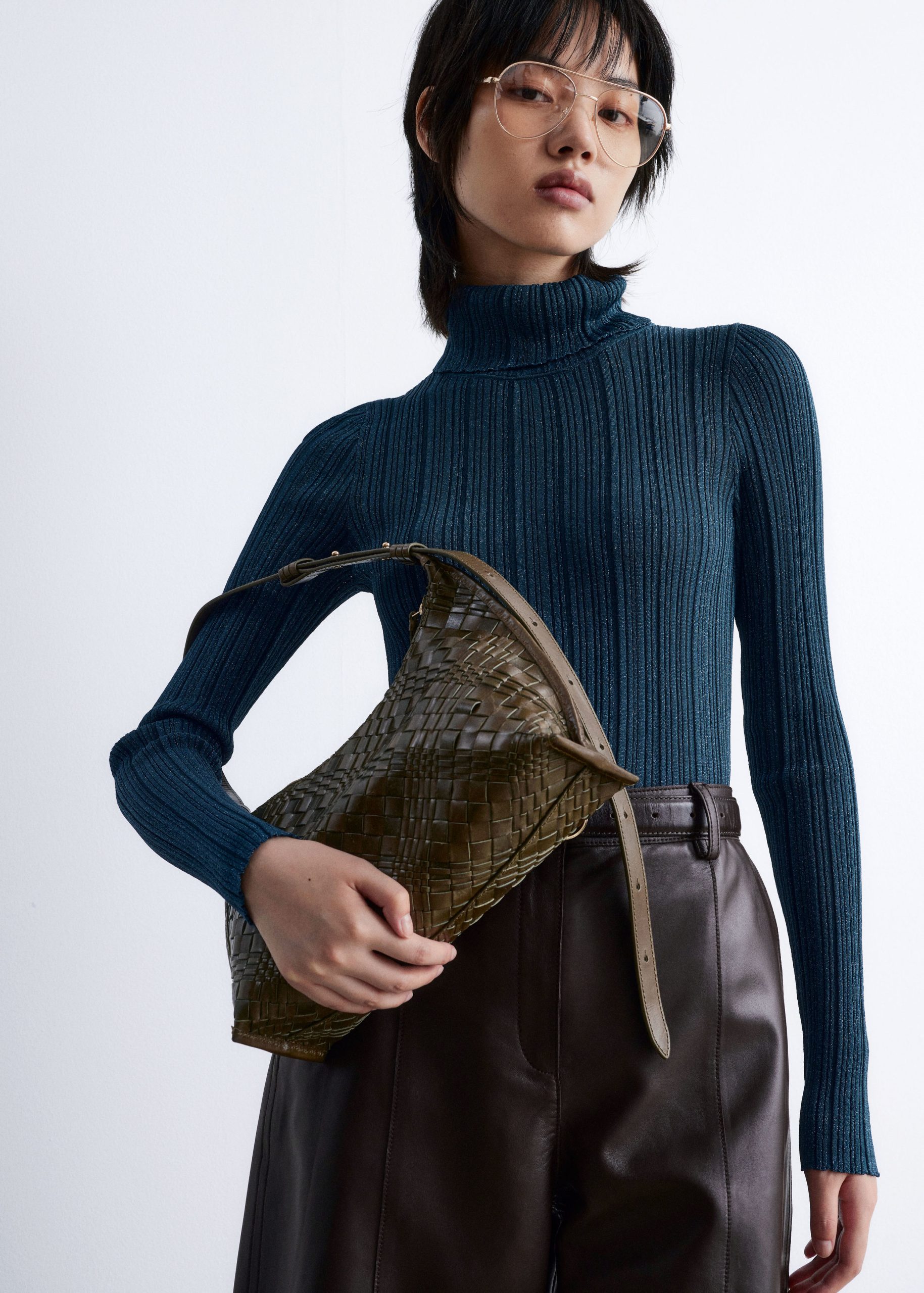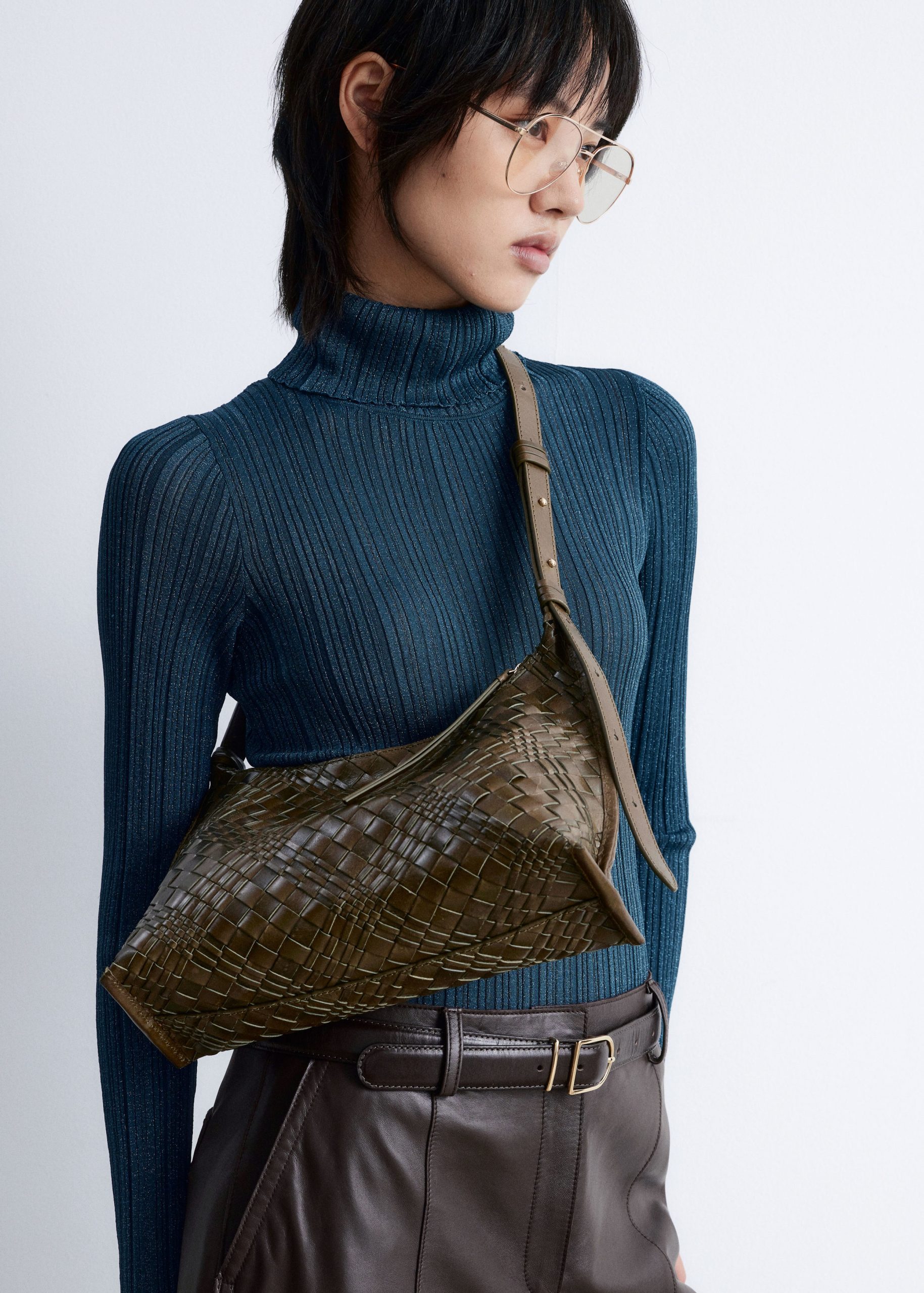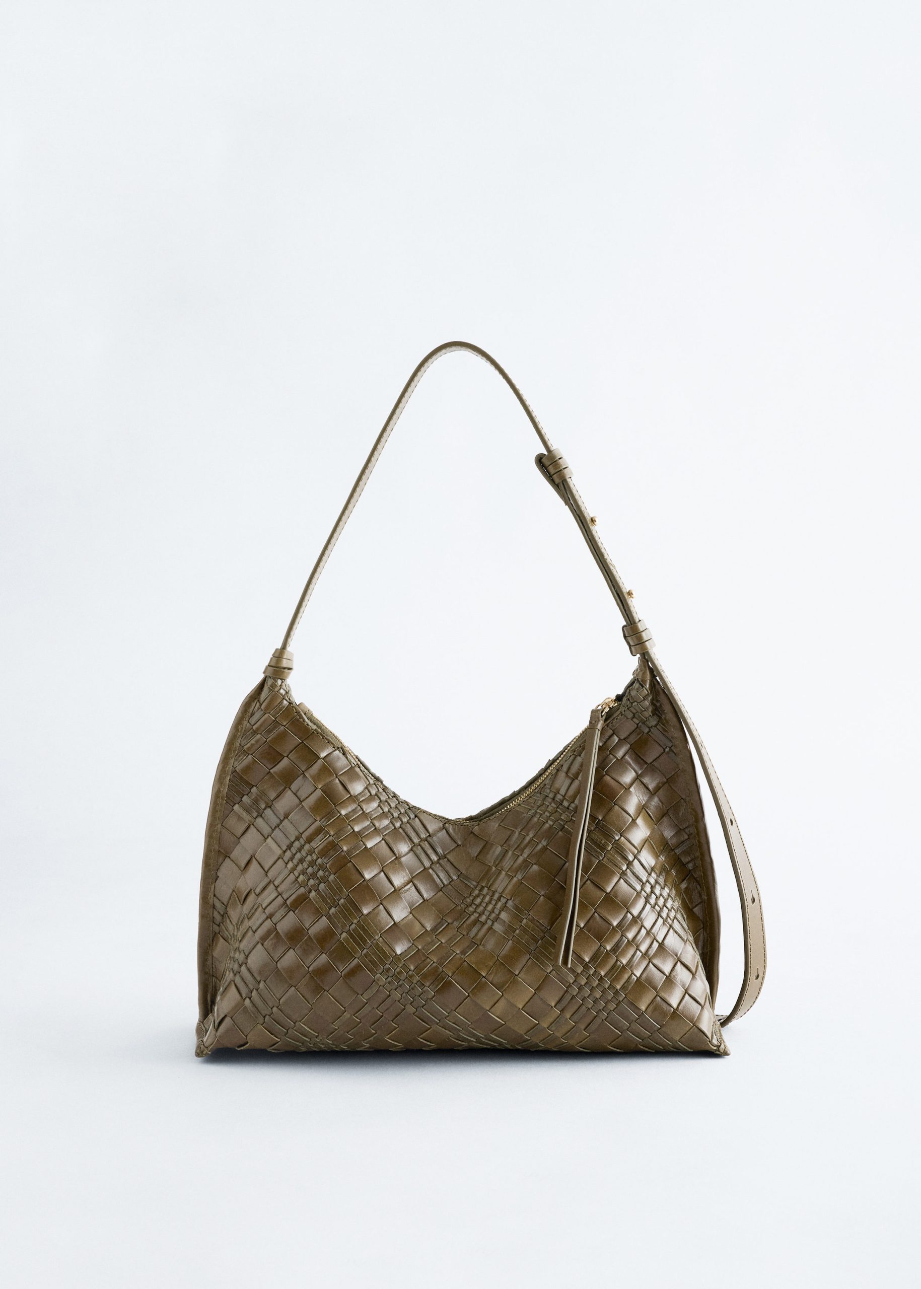 Crafted in India from interwoven leather straps for a braided look, this crossbody bag features an adjustable shoulder strap and a curved top with a zip closure. Inside, a zipped pocket keeps smaller belongings secure. Both zips are finished with long leather pulls.