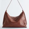 Crafted in India from interwoven leather straps for a braided look, this tote bag features a curved top with a zip closure. Inside, a zipped pocket keeps smaller belongings secure. Both zips are finished with long leather pulls.