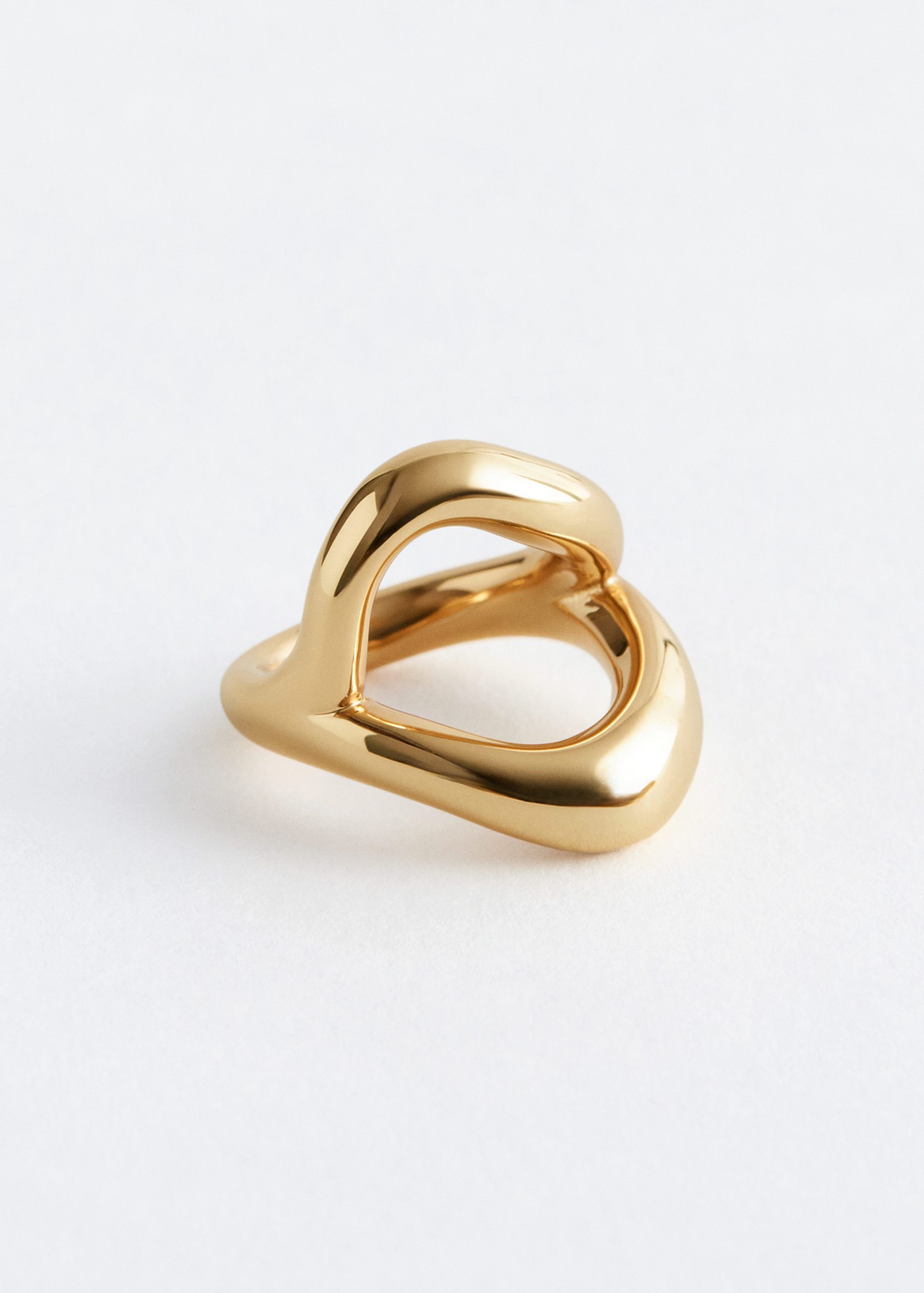 Crafted from polished brass, this minimalist ring features an irregular circle at the top and is perfect for stacking with other minimalist rings for a layered look.
