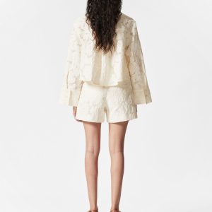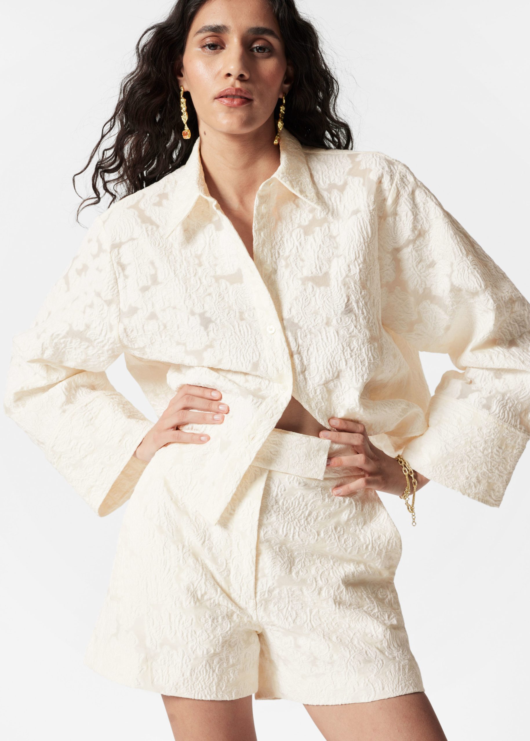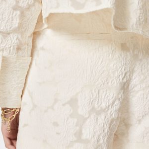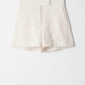 Tailored shorts crafted from a cotton-blend jacquard fabric with a textured finish. Featuring a high waist with a wide waistband, and a zip fly with hook and bar closure. Finished with slanted sideseam pockets and welt pockets at the back.