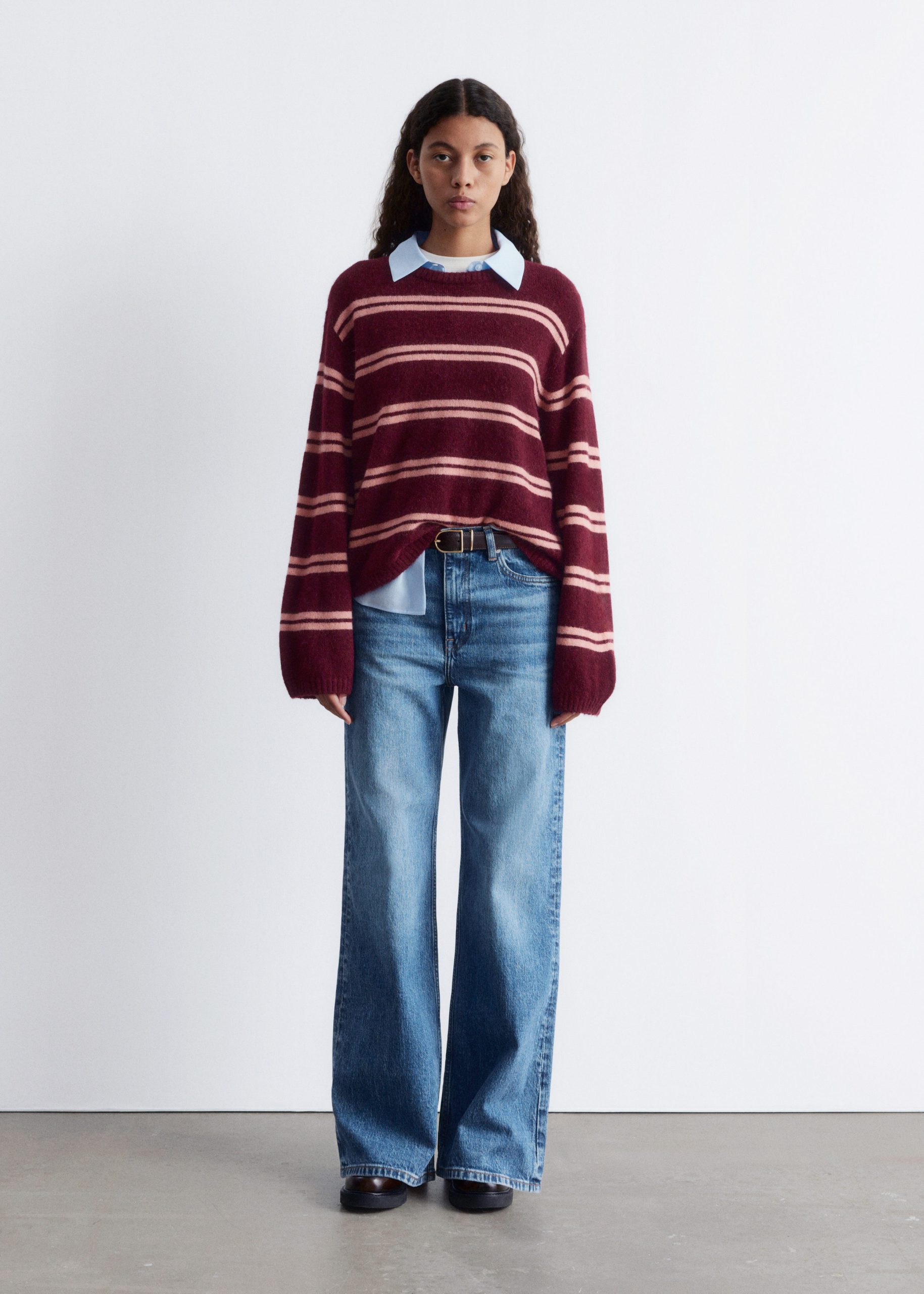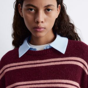 This sweater is knitted from a soft alpaca-wool blend, offering a warm and textured feel. Designed with a loose silhouette, it features dropped shoulders and long, wide sleeves. Finished with a round neck and ribbed trims.