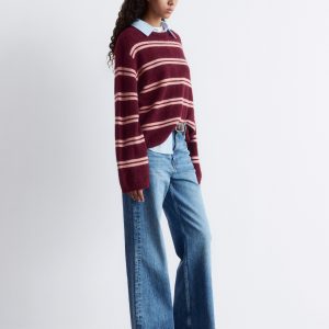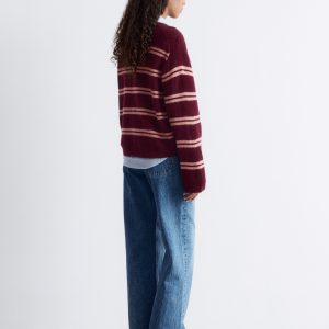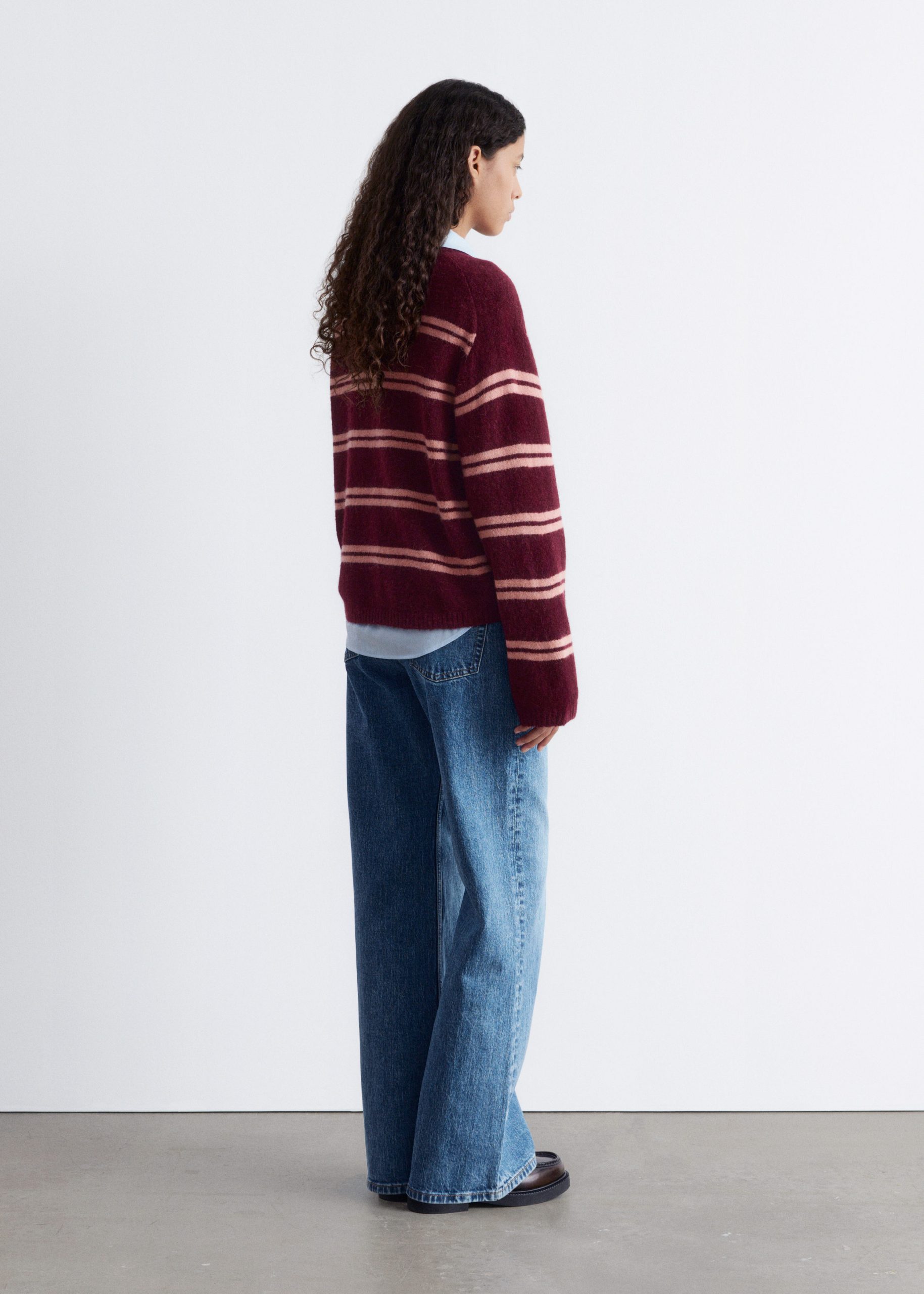 This sweater is knitted from a soft alpaca-wool blend, offering a warm and textured feel. Designed with a loose silhouette, it features dropped shoulders and long, wide sleeves. Finished with a round neck and ribbed trims.