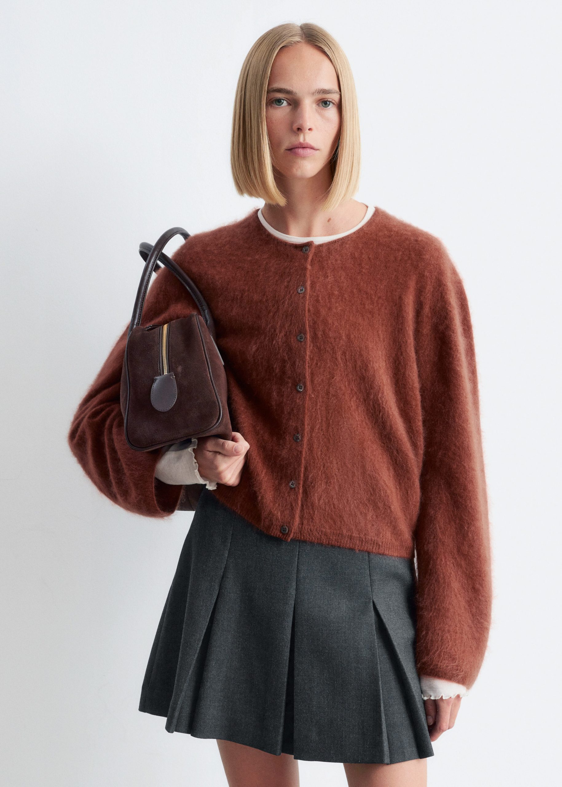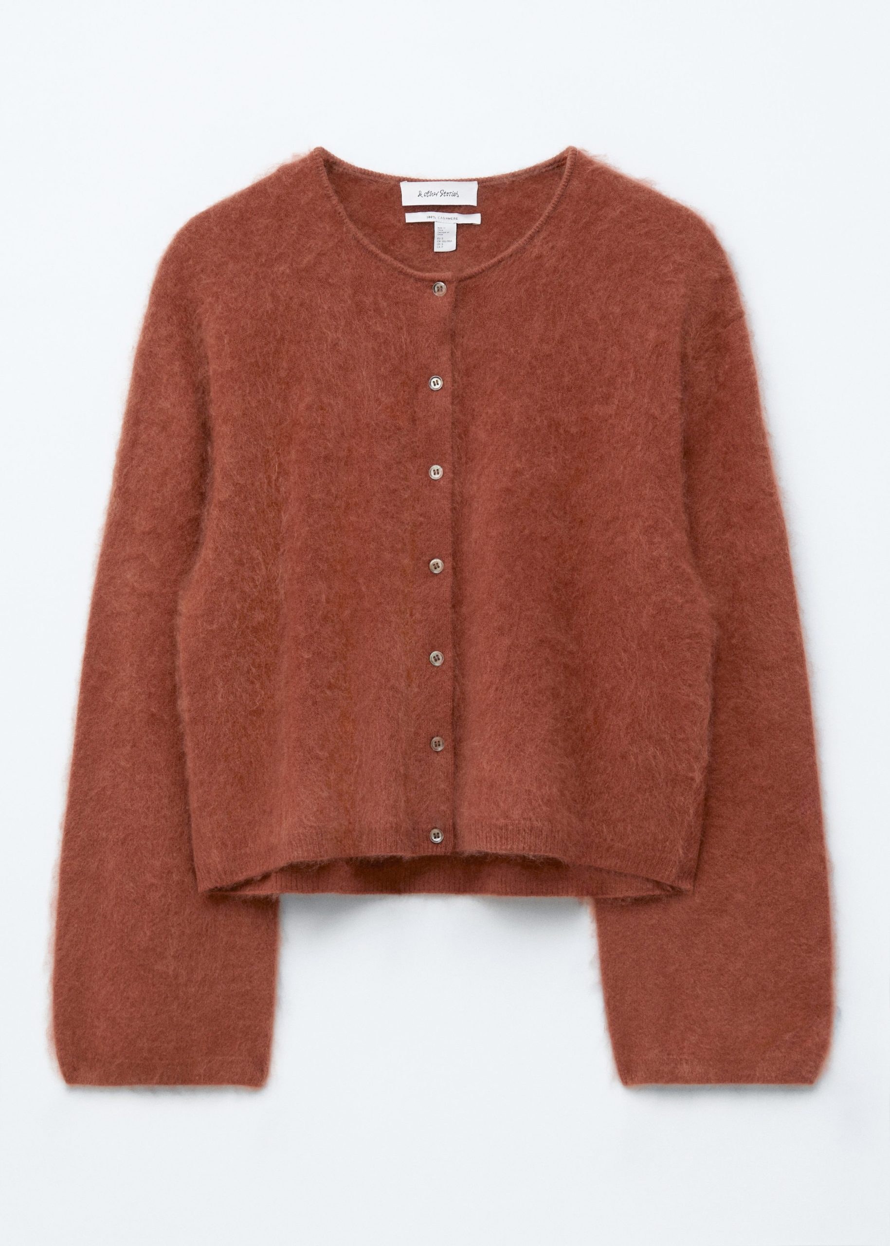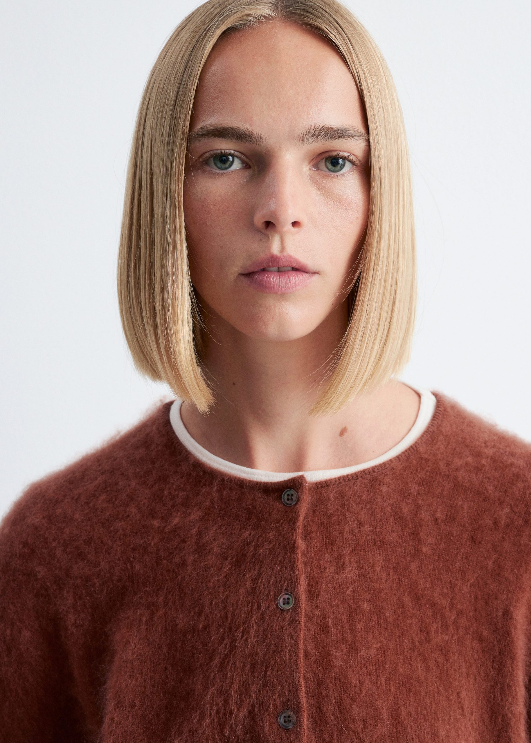 This cardigan is knitted from 100% cashmere with a brushed, textured feel. Cut in a short, loose silhouette, it features a round neck, dropped shoulders, and rib-detailing at the hem and cuffs. Traced with buttons down the front.