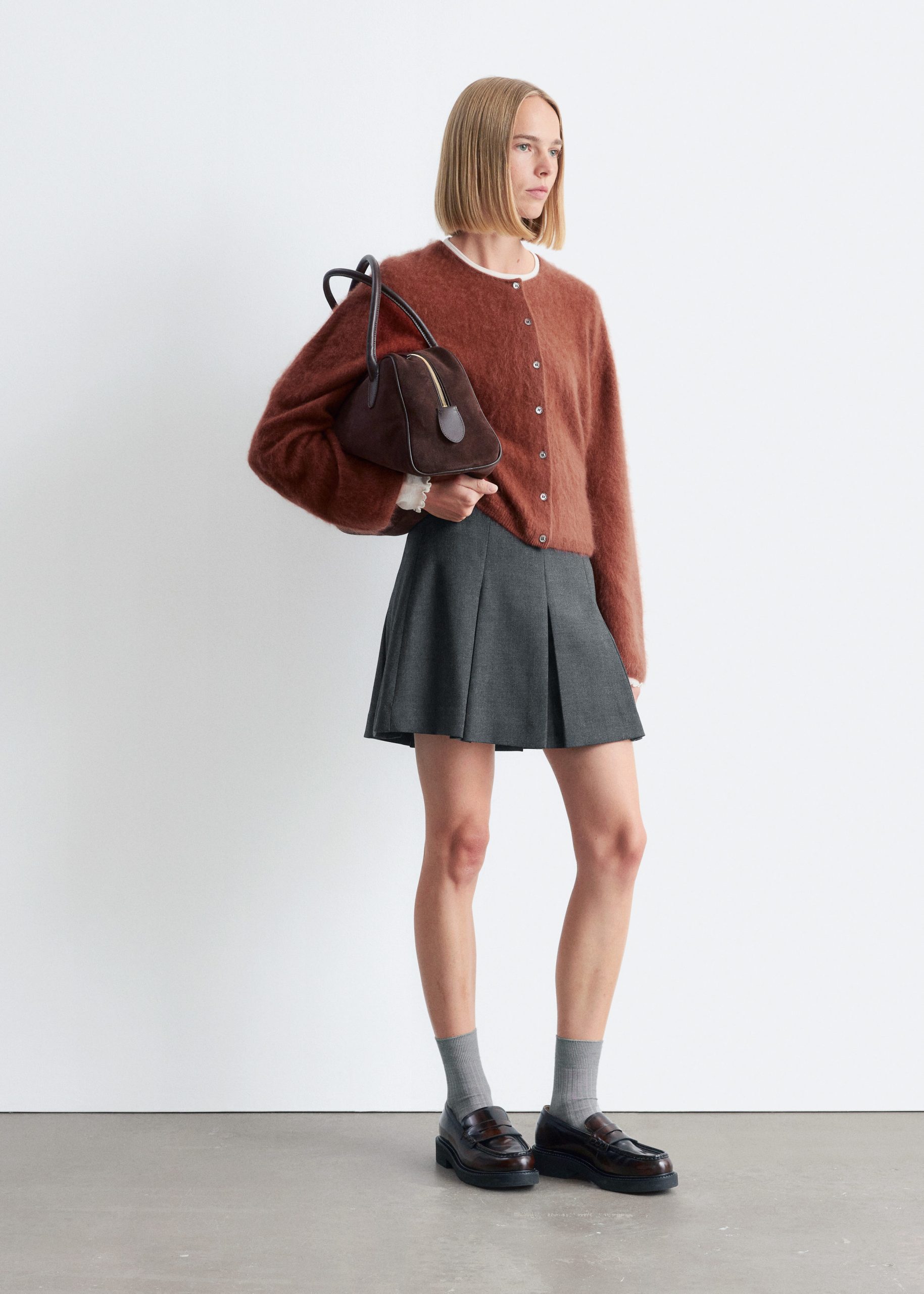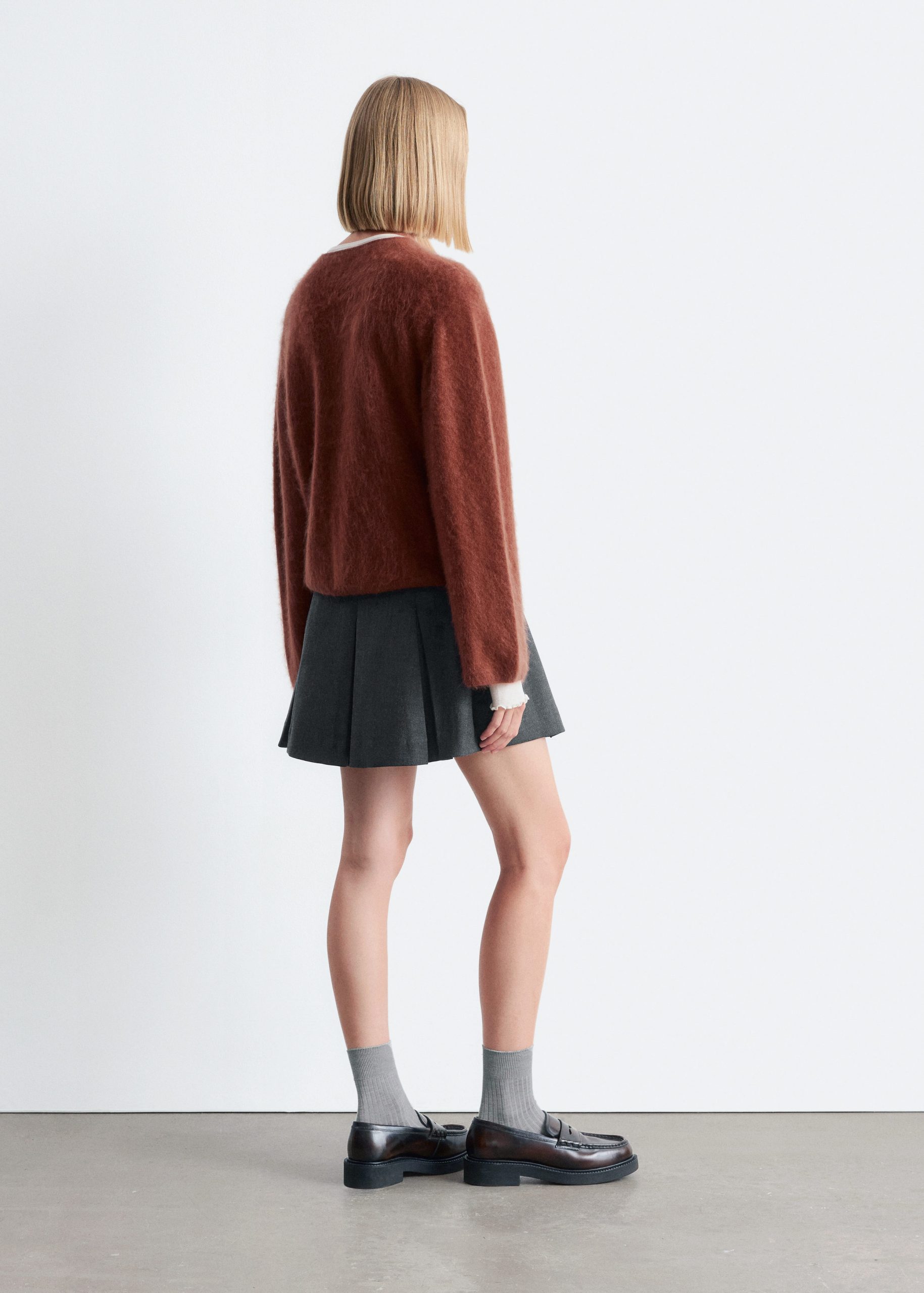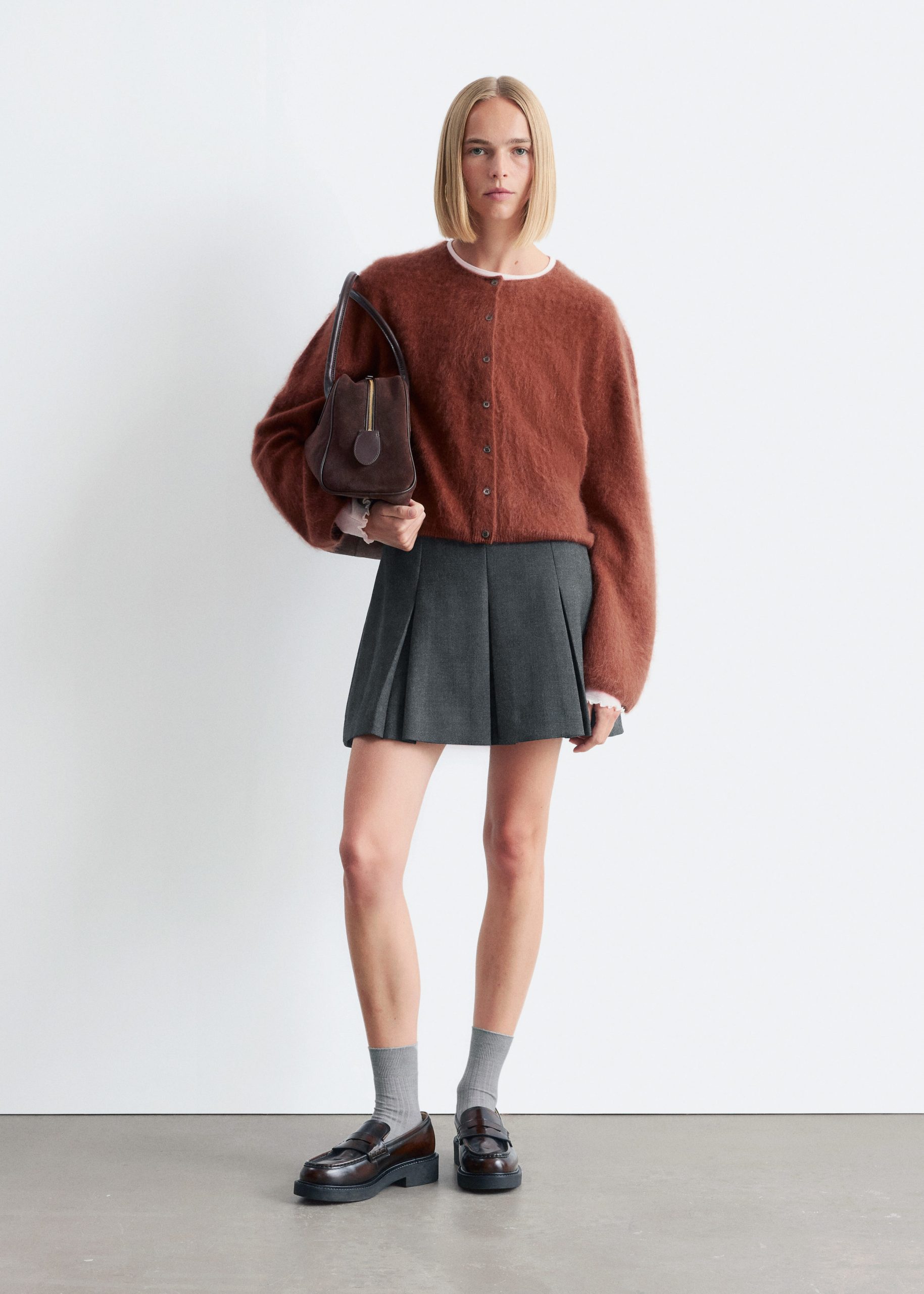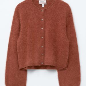 This cardigan is knitted from 100% cashmere with a brushed, textured feel. Cut in a short, loose silhouette, it features a round neck, dropped shoulders, and rib-detailing at the hem and cuffs. Traced with buttons down the front.