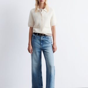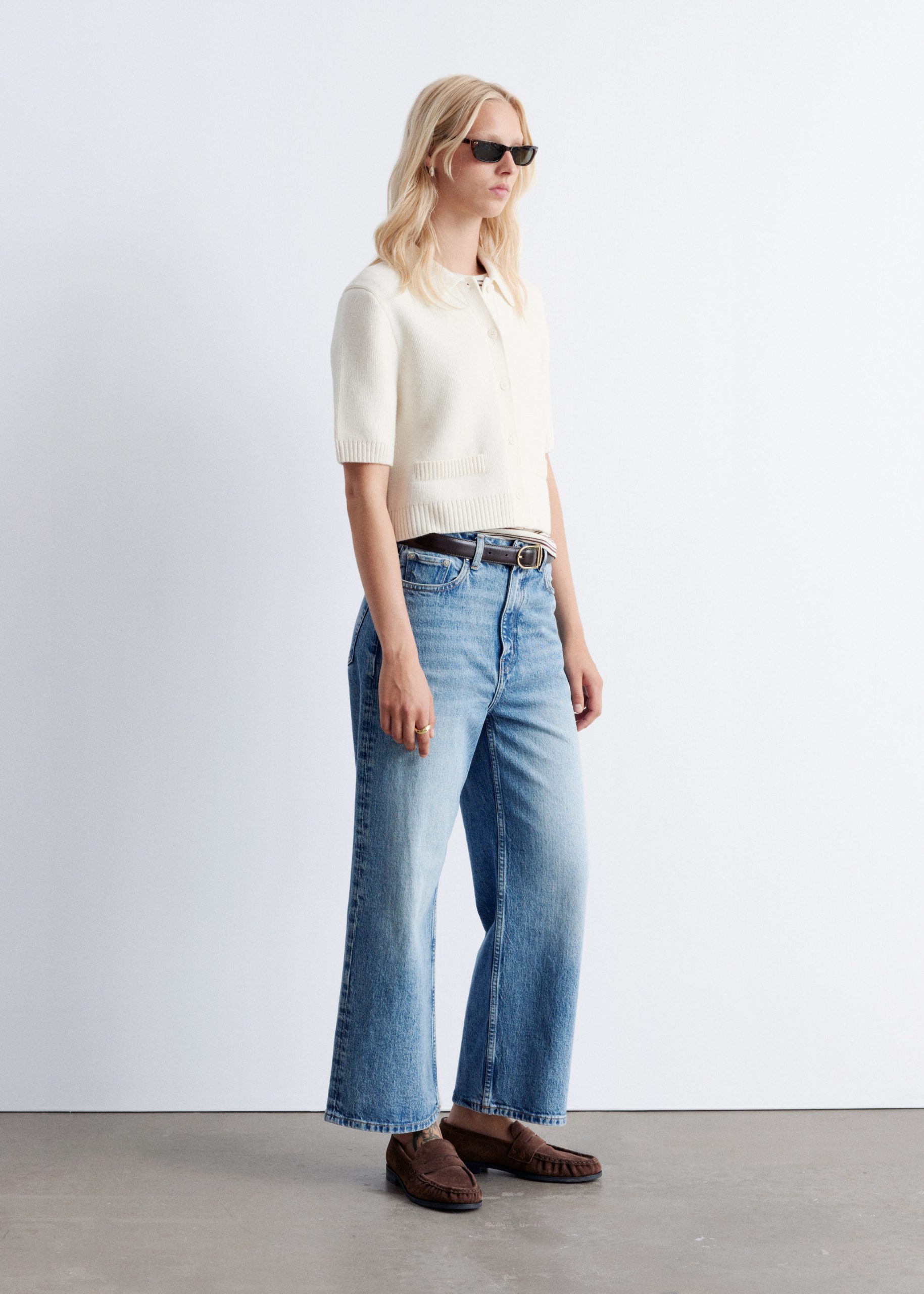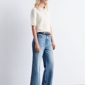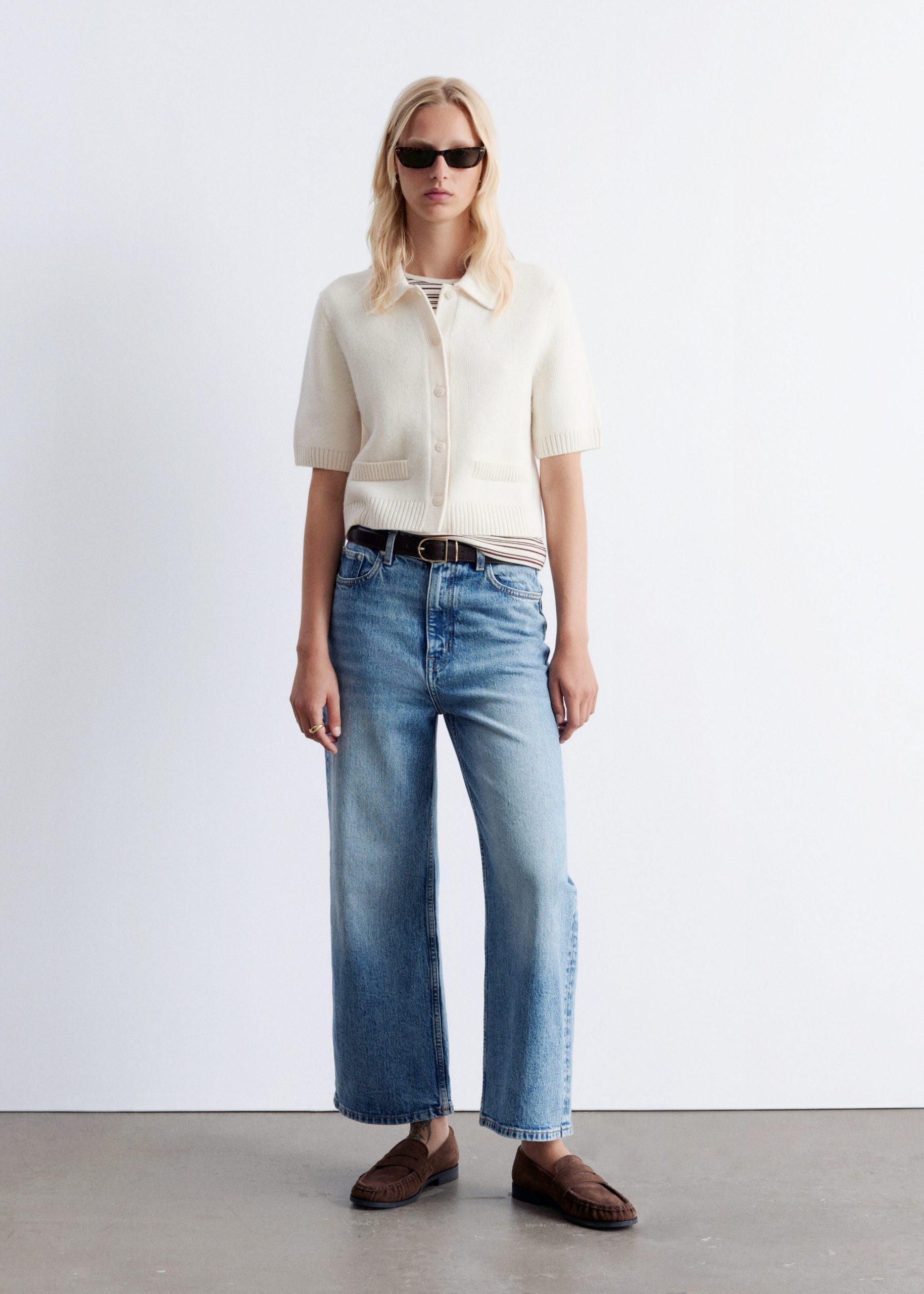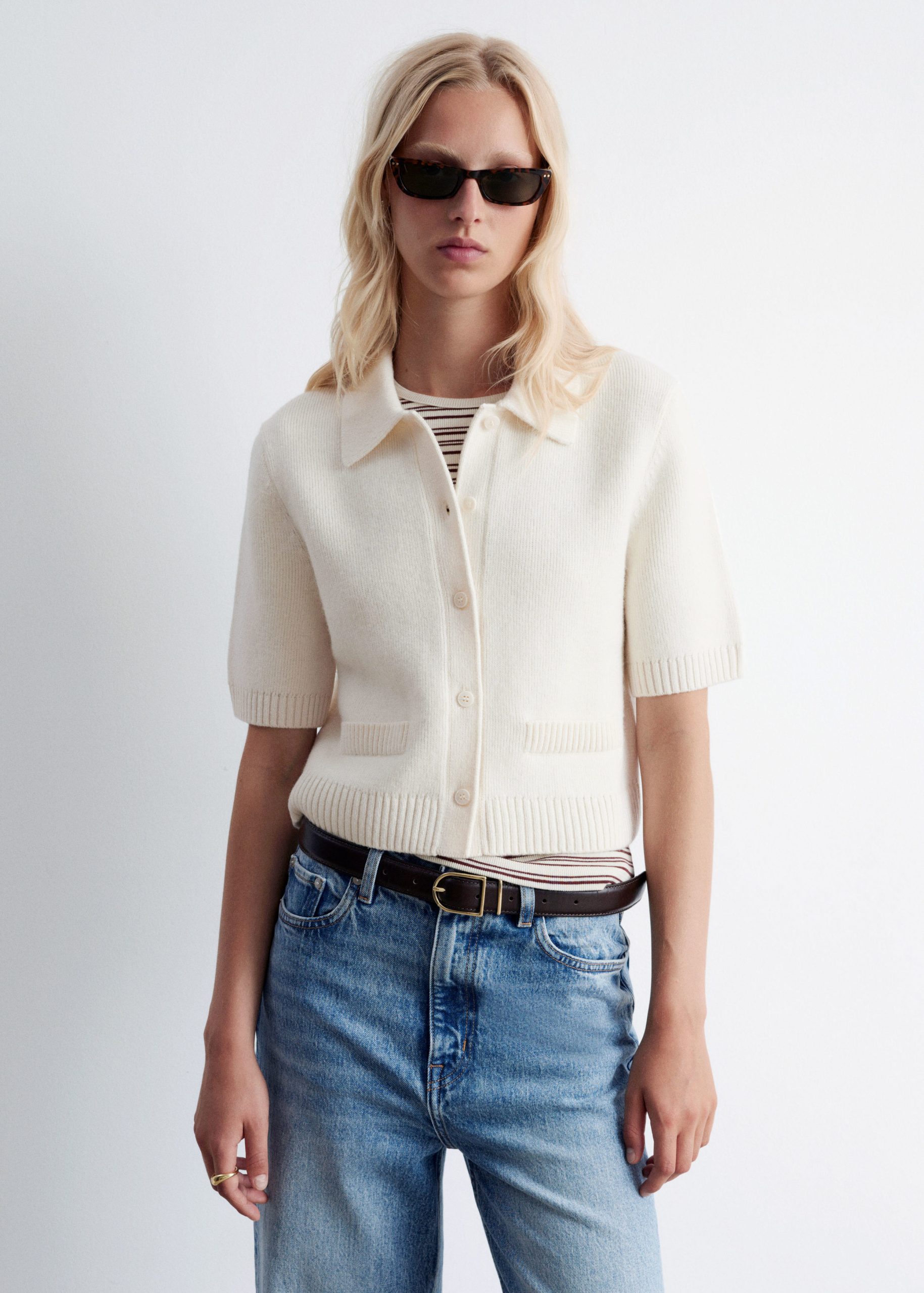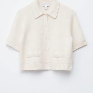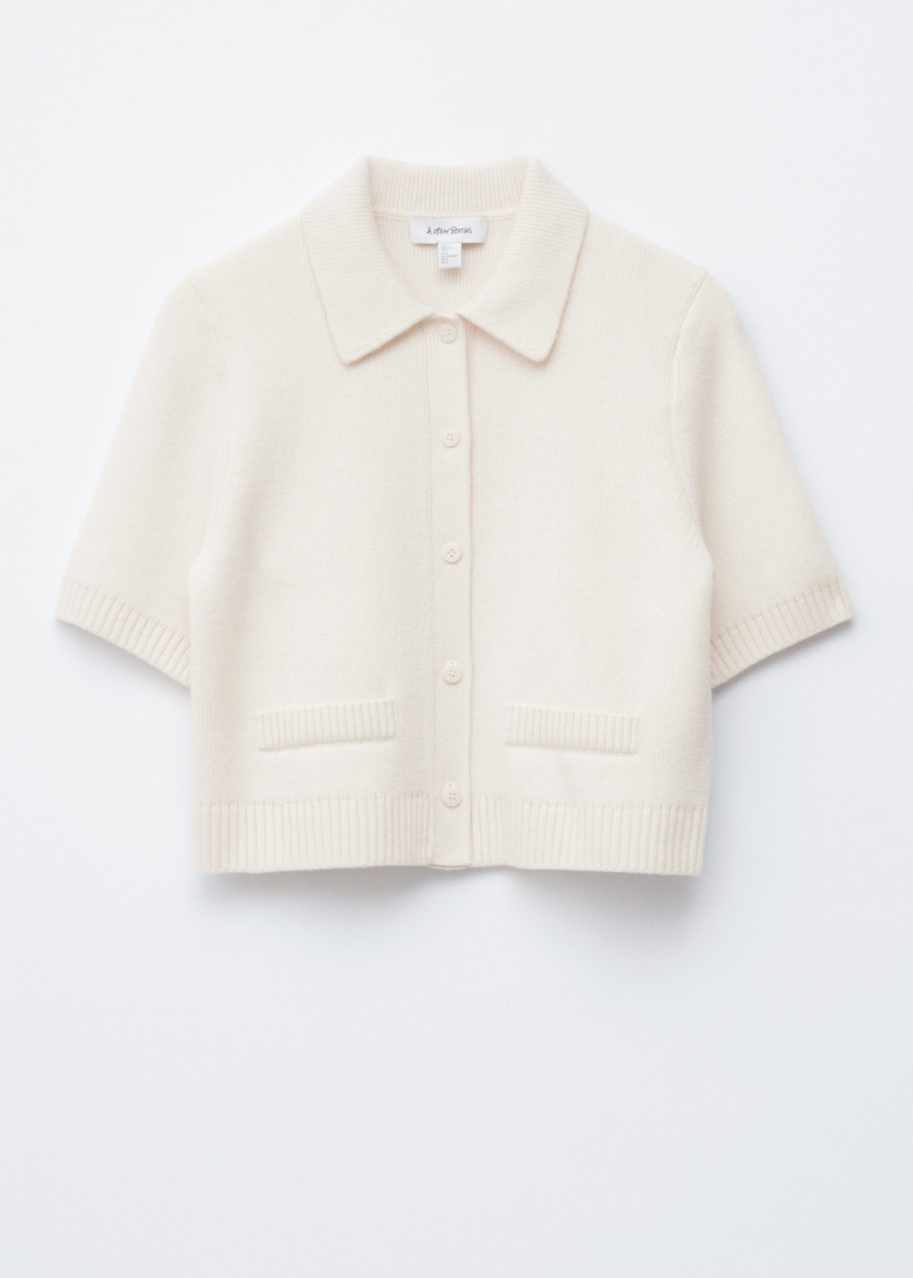 A preppy take on your usual staple knits, this short-sleeve cardigan is knitted from a warm merino-wool blend. Designed in a straight silhouette, it features a classic collar, ribbed trims, and tonal knitted buttons. Finished with rib-detailed faux pockets.