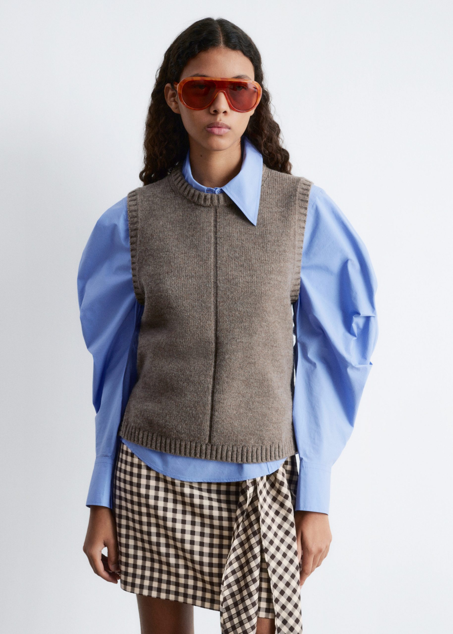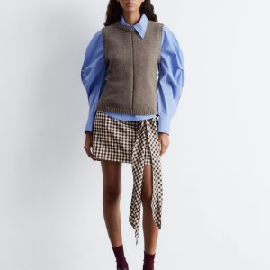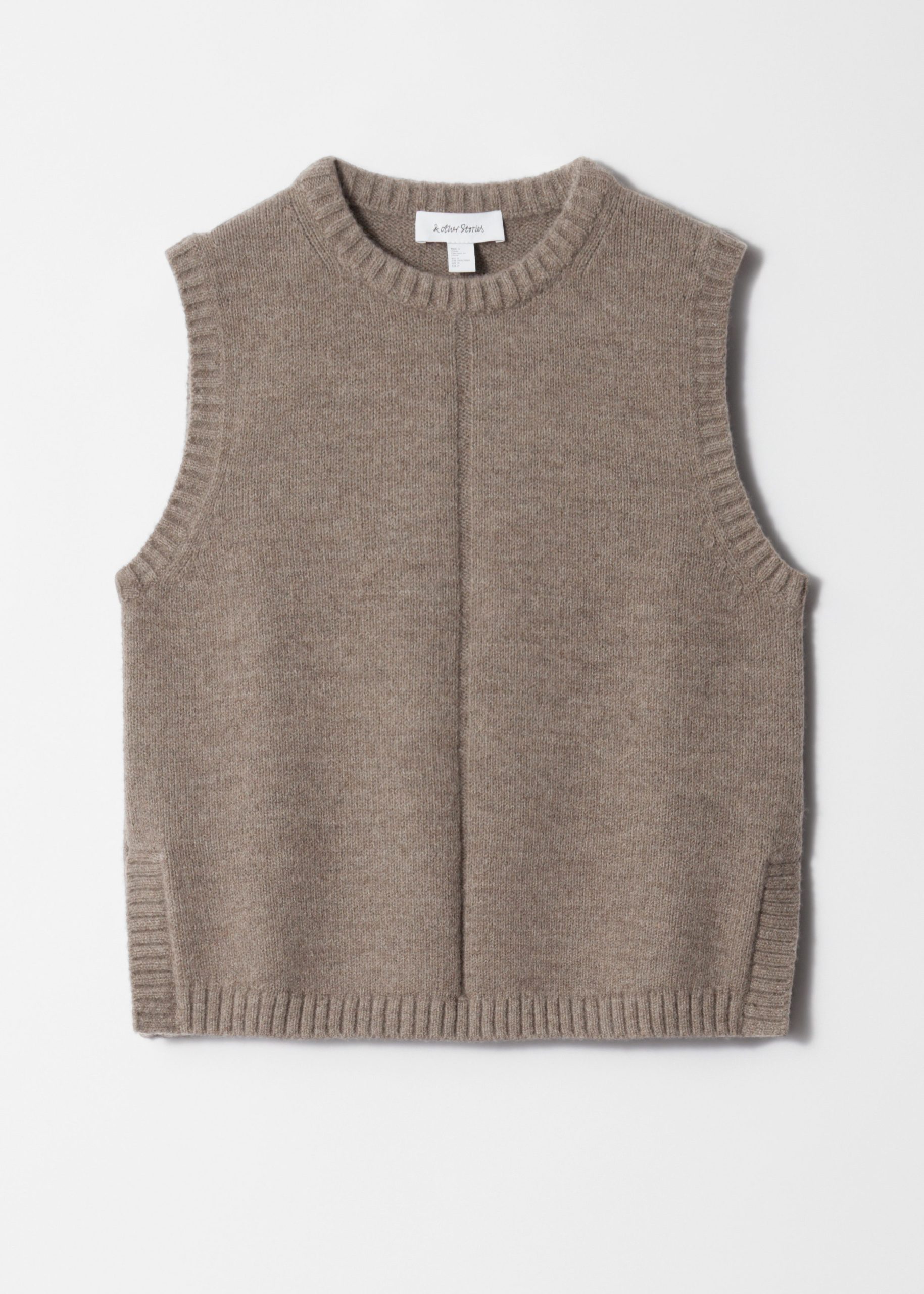 Knitted from a soft wool-cotton blend, this sweater vest is cut in a clean, straight silhouette and features a round neck, subtle side slits, and ribbed trims. Wear it solo or layered over shirts and basic tees for versatility.