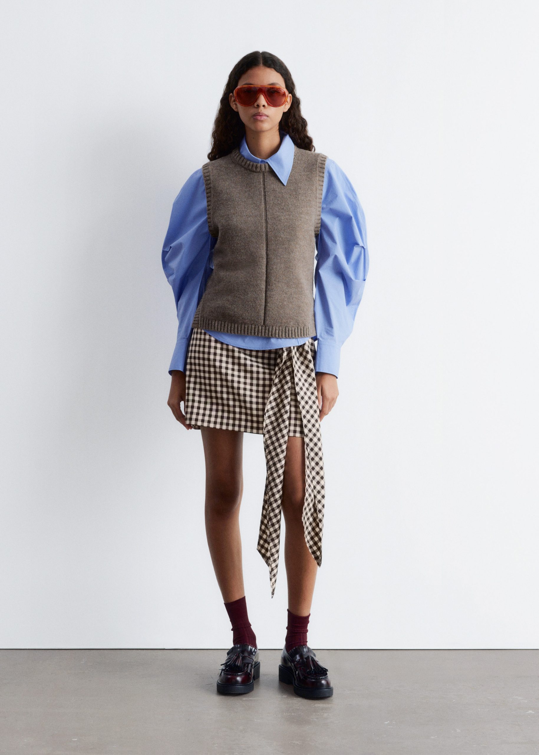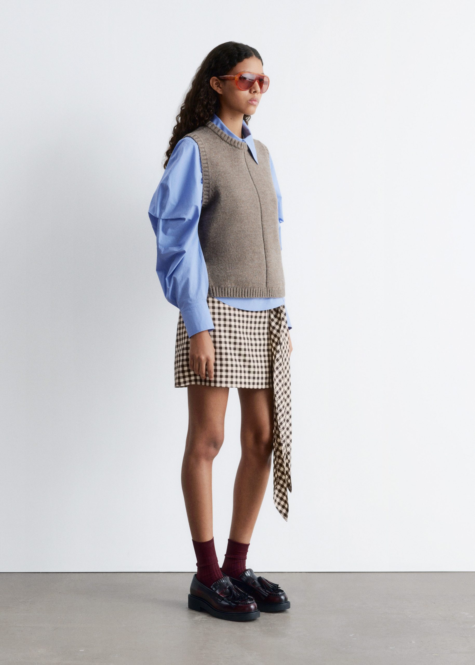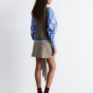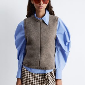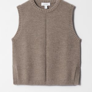 Knitted from a soft wool-cotton blend, this sweater vest is cut in a clean, straight silhouette and features a round neck, subtle side slits, and ribbed trims. Wear it solo or layered over shirts and basic tees for versatility.