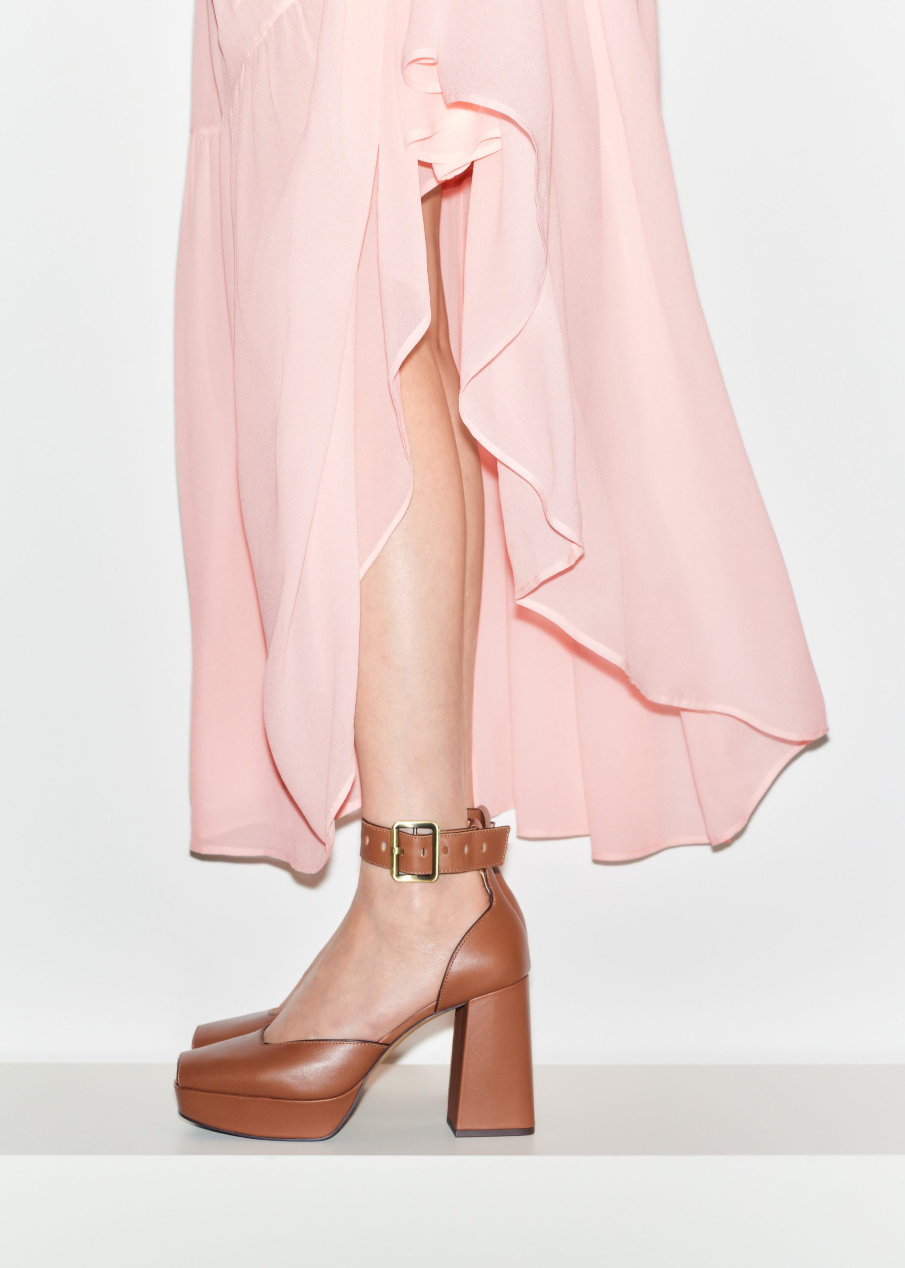 Leather Platform Heeled Sandals