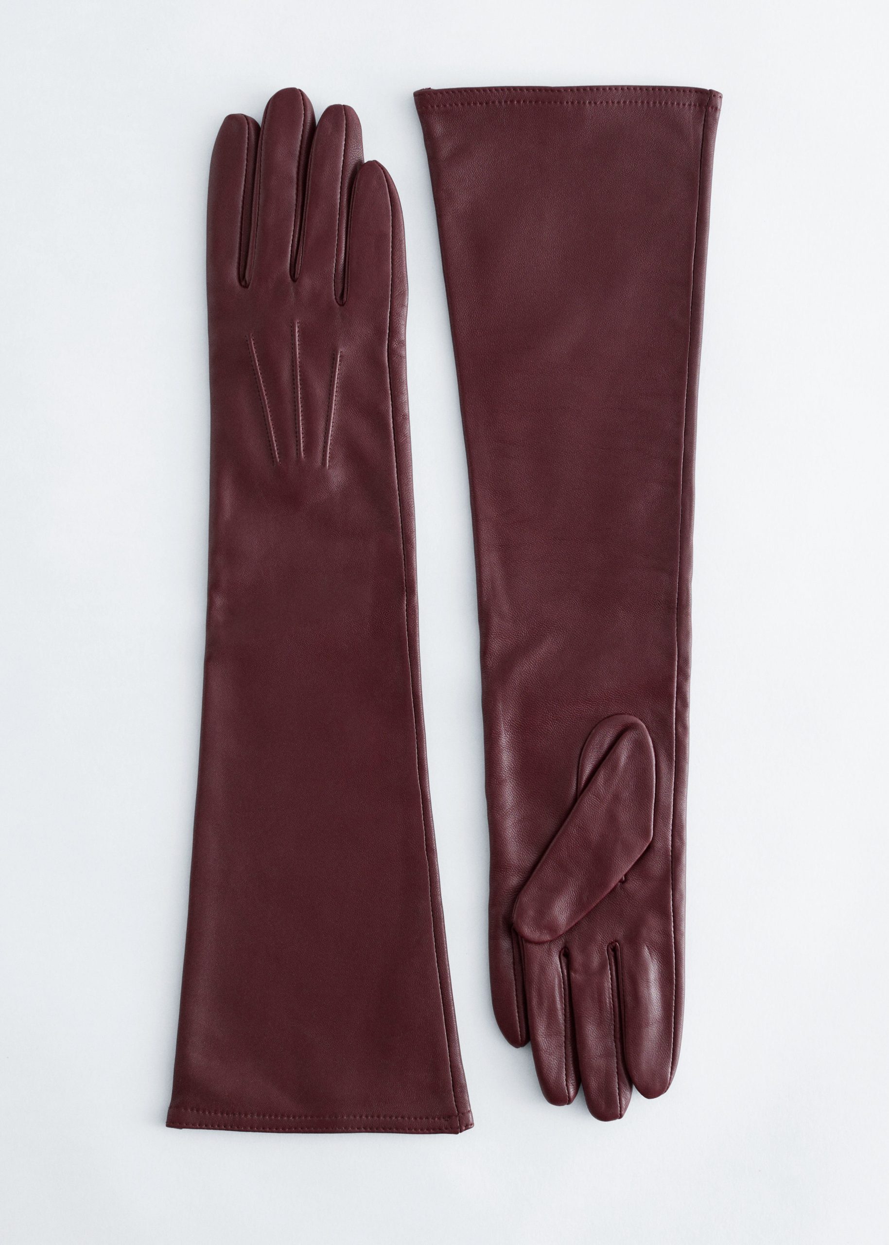 These elbow-length gloves are crafted from supple leather and lined with soft insulating viscose. The back of the hand is detailed with delicate darts.