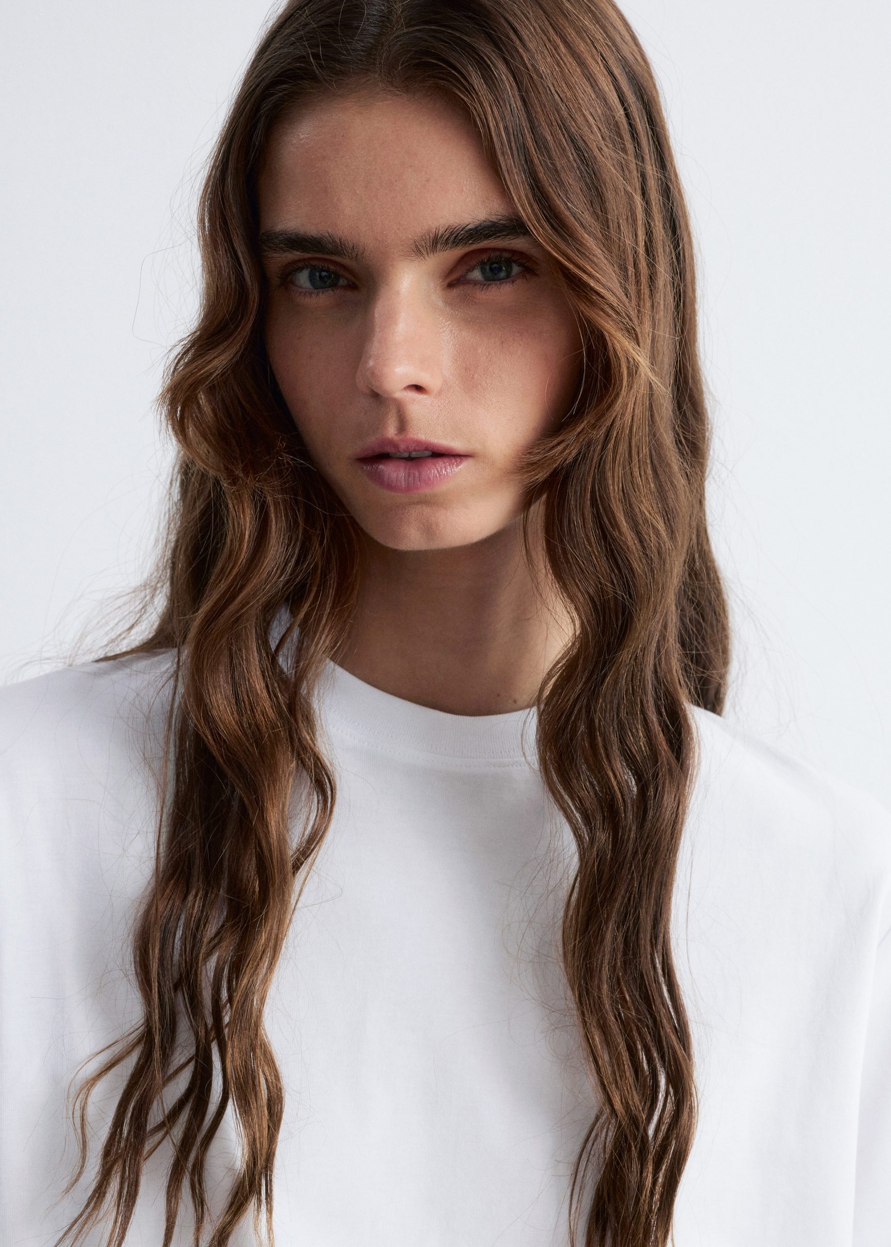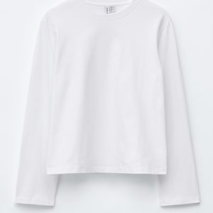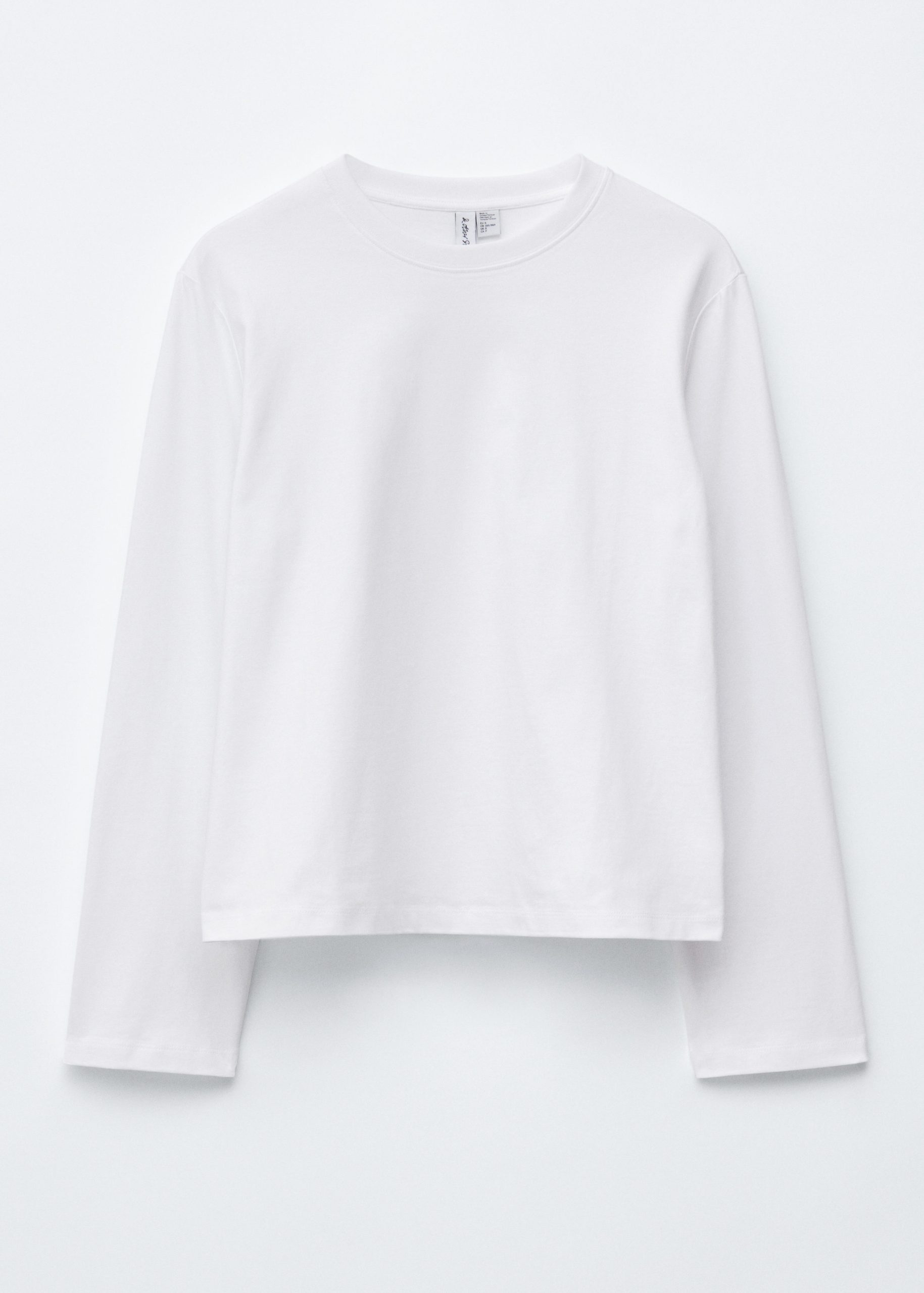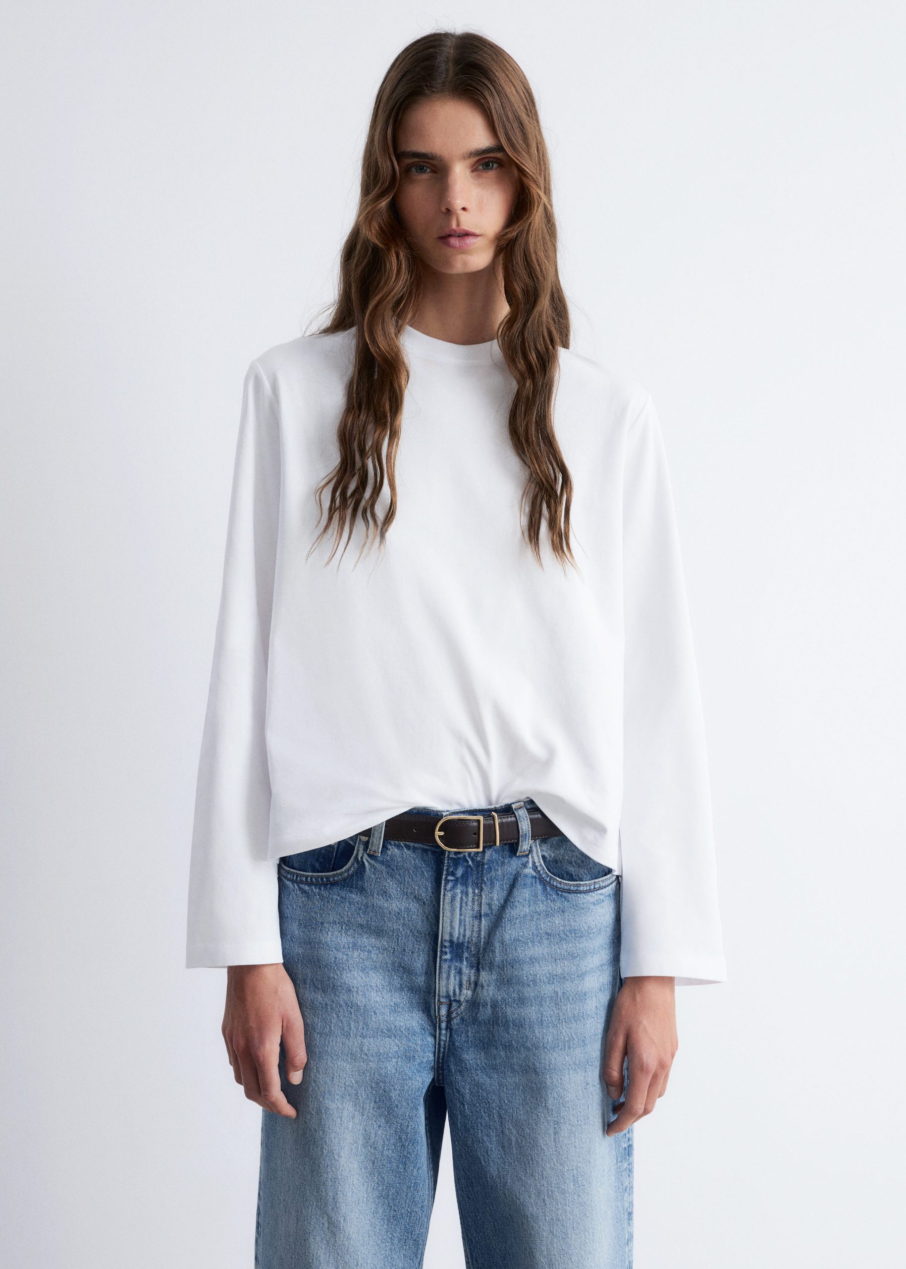 This top is made from 100% pure cotton in a soft jersey fabric. Cut in a straight, regular fit, it features a round neck and long sleeves. A versatile wardrobe staple—wear it with jeans or a mini skirt.