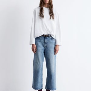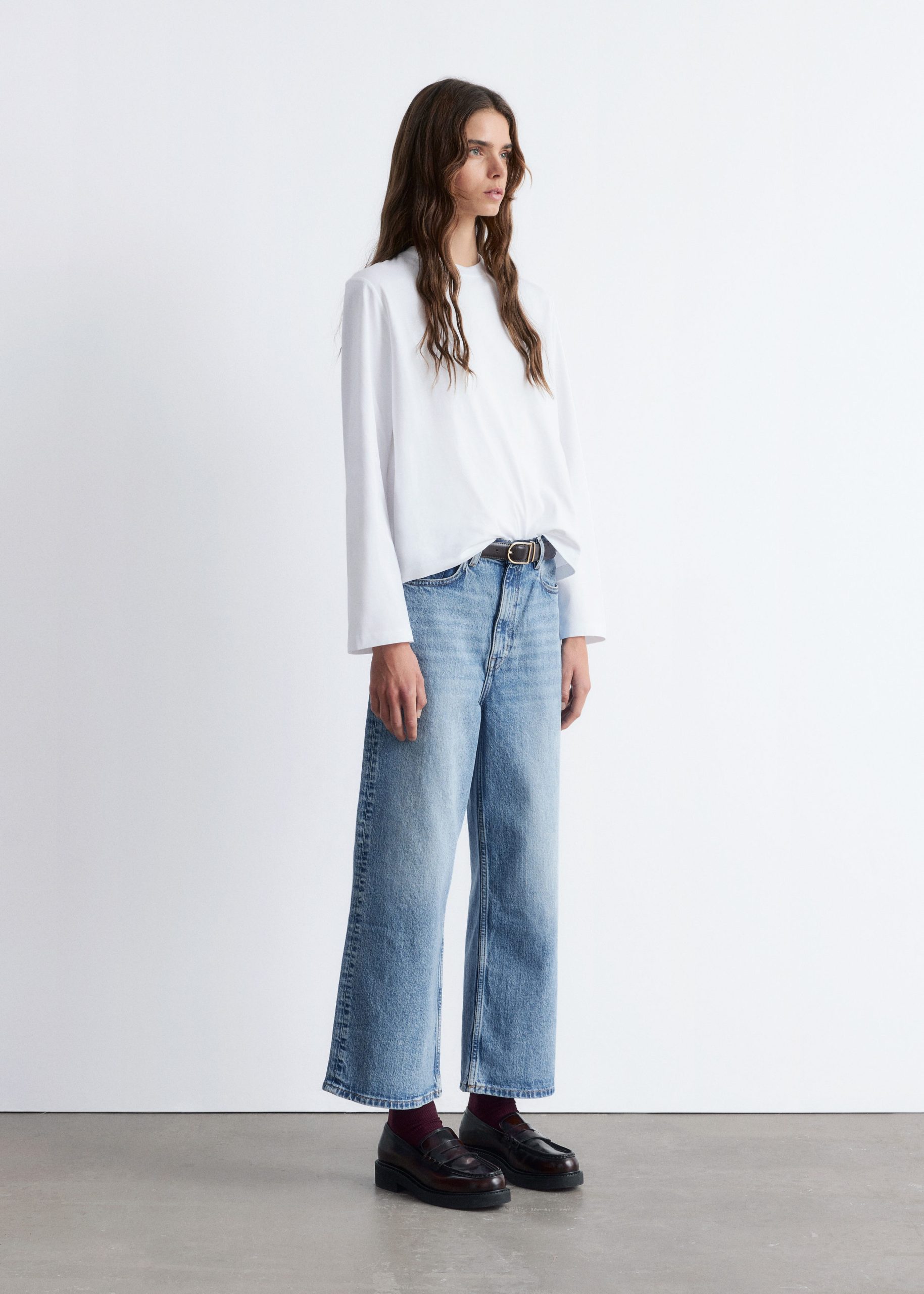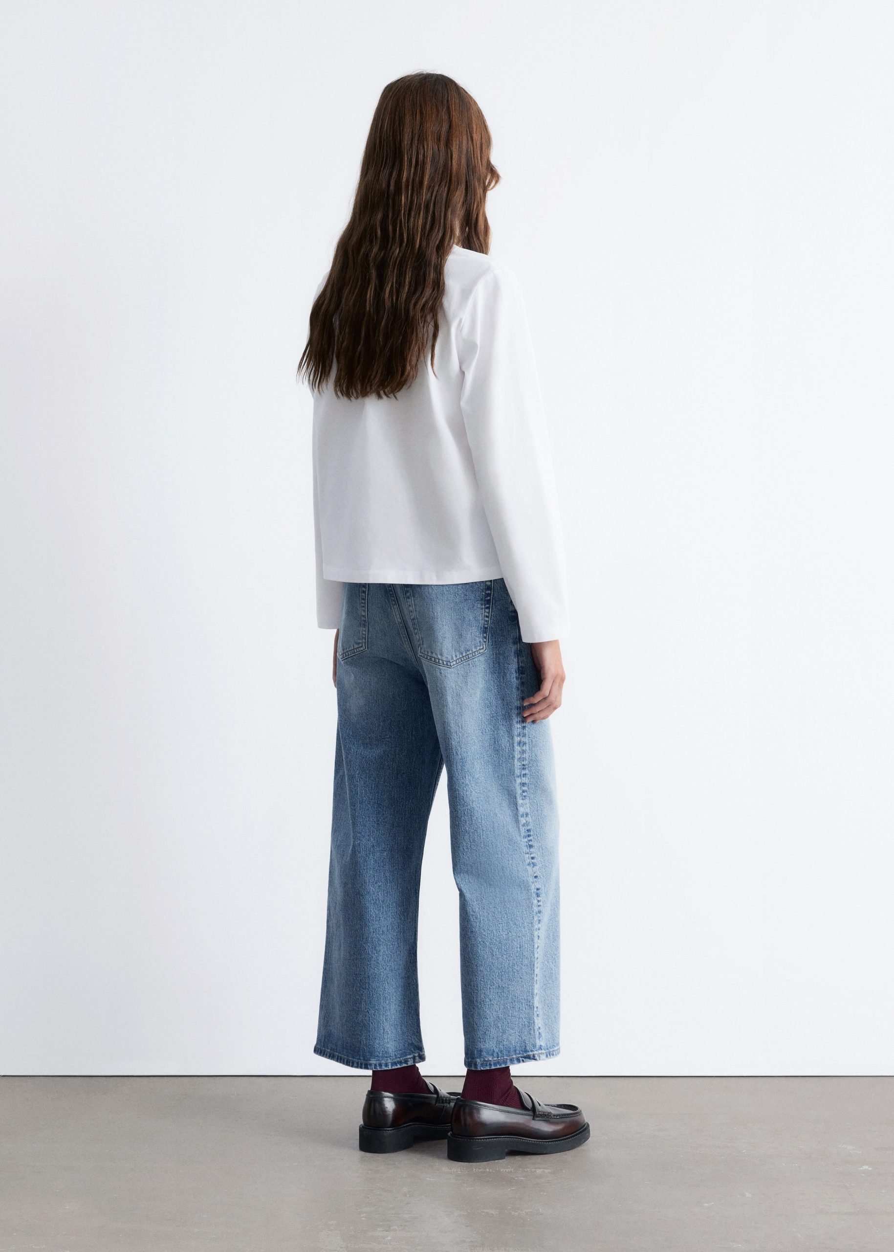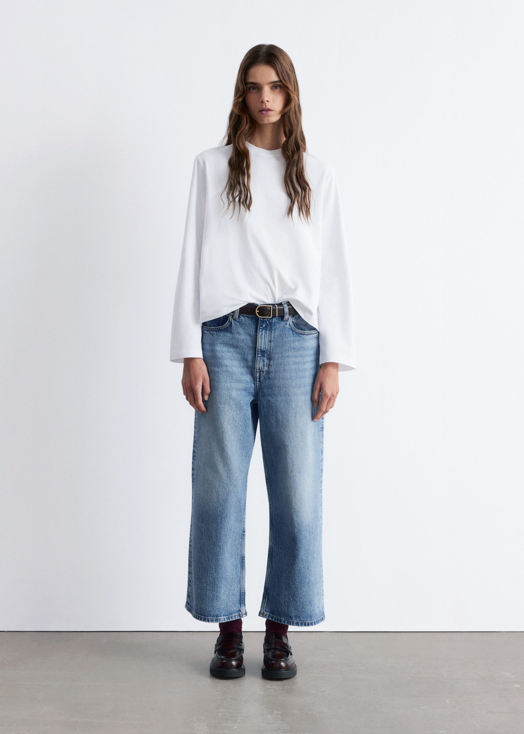 This top is made from 100% pure cotton in a soft jersey fabric. Cut in a straight, regular fit, it features a round neck and long sleeves. A versatile wardrobe staple—wear it with jeans or a mini skirt.