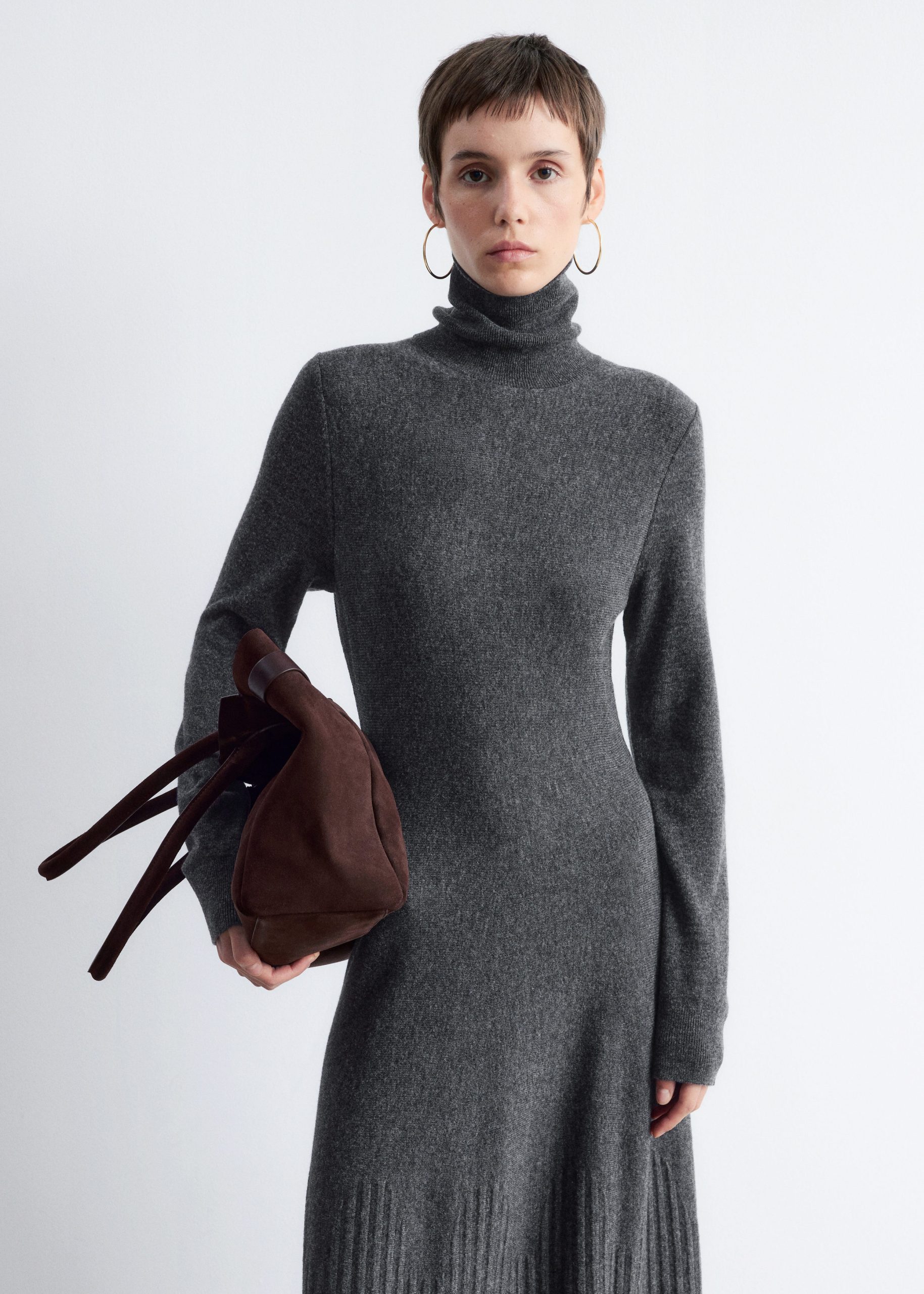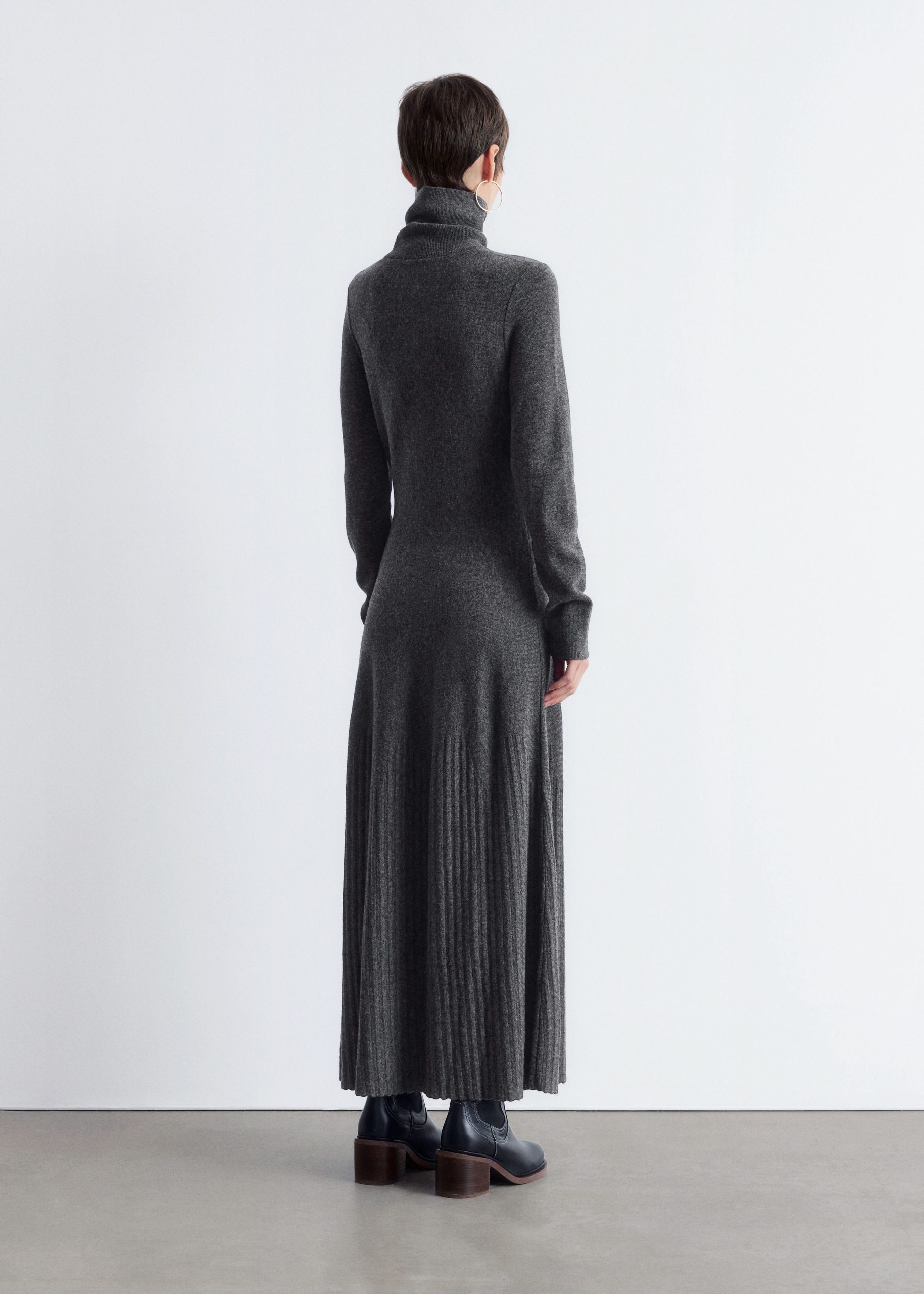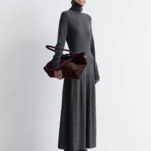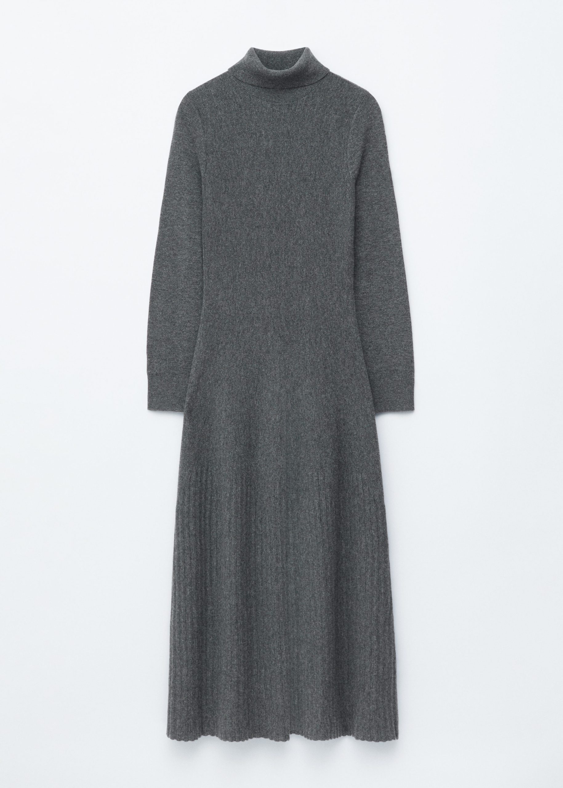 This maxi dress is knitted from 100% merino wool. It features a folded turtleneck and a fitted silhouette that flares into an A-line skirt, accented by a rib-detailed hem.
