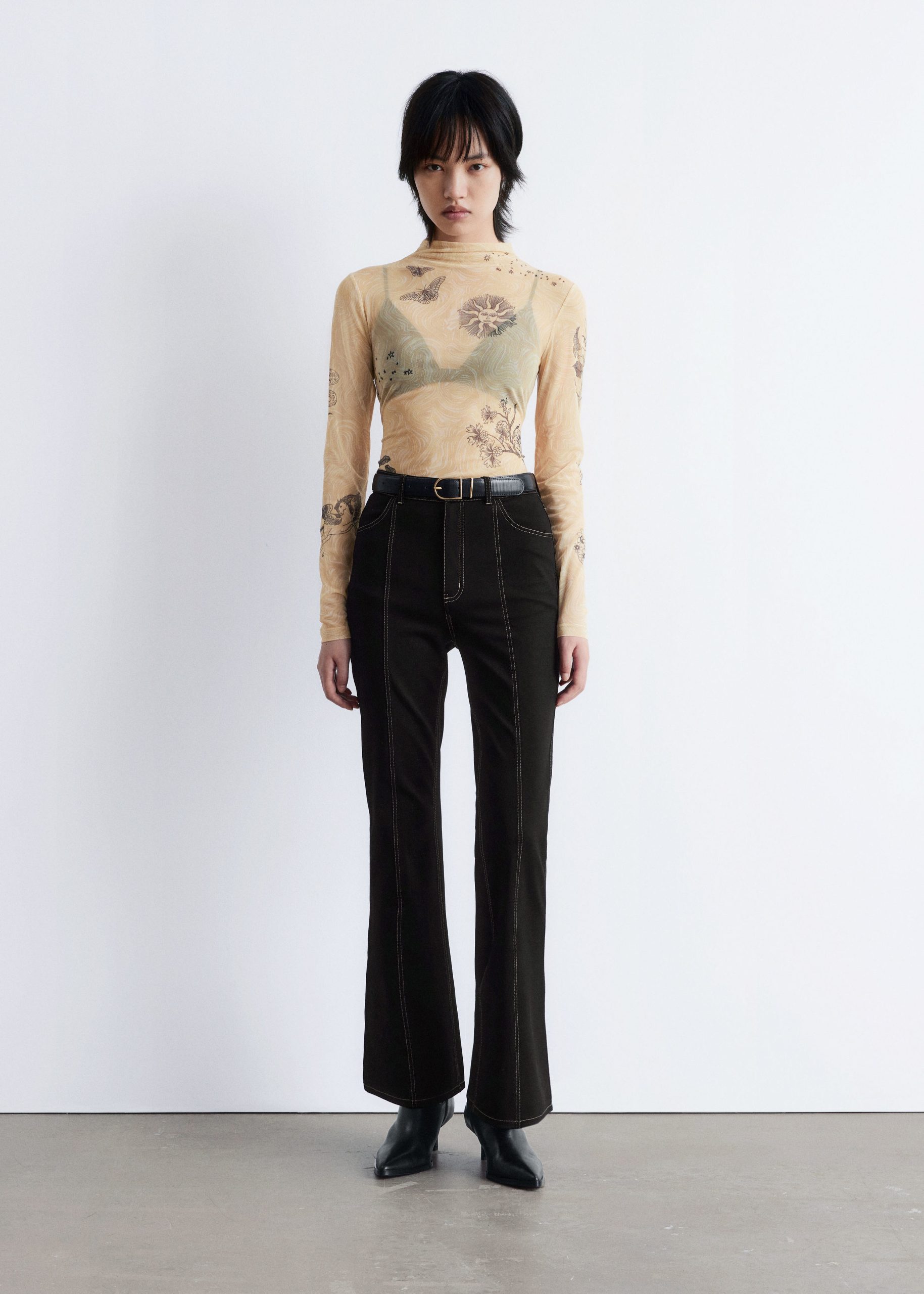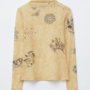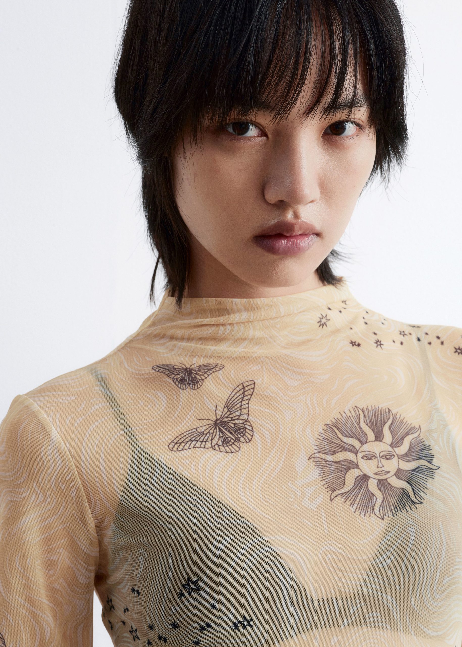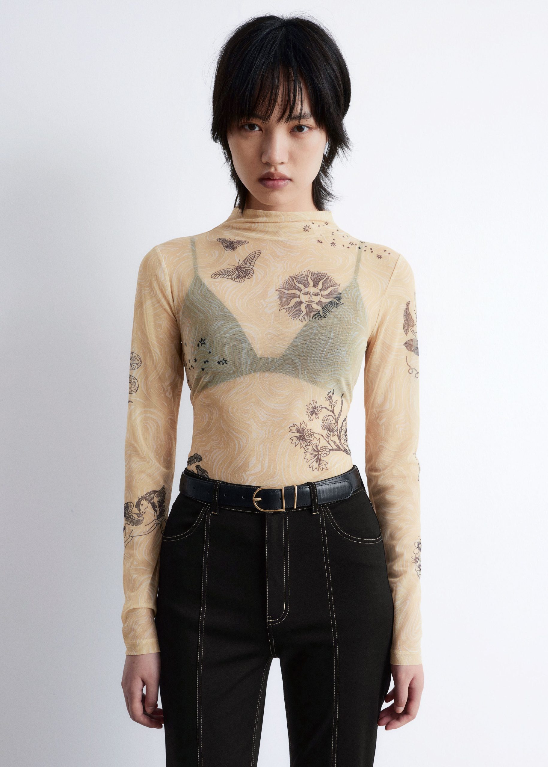 Printed long-sleeve mock-neck top finished with a slim silhouette.