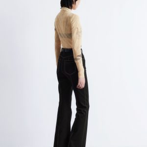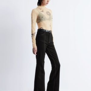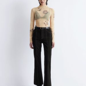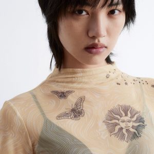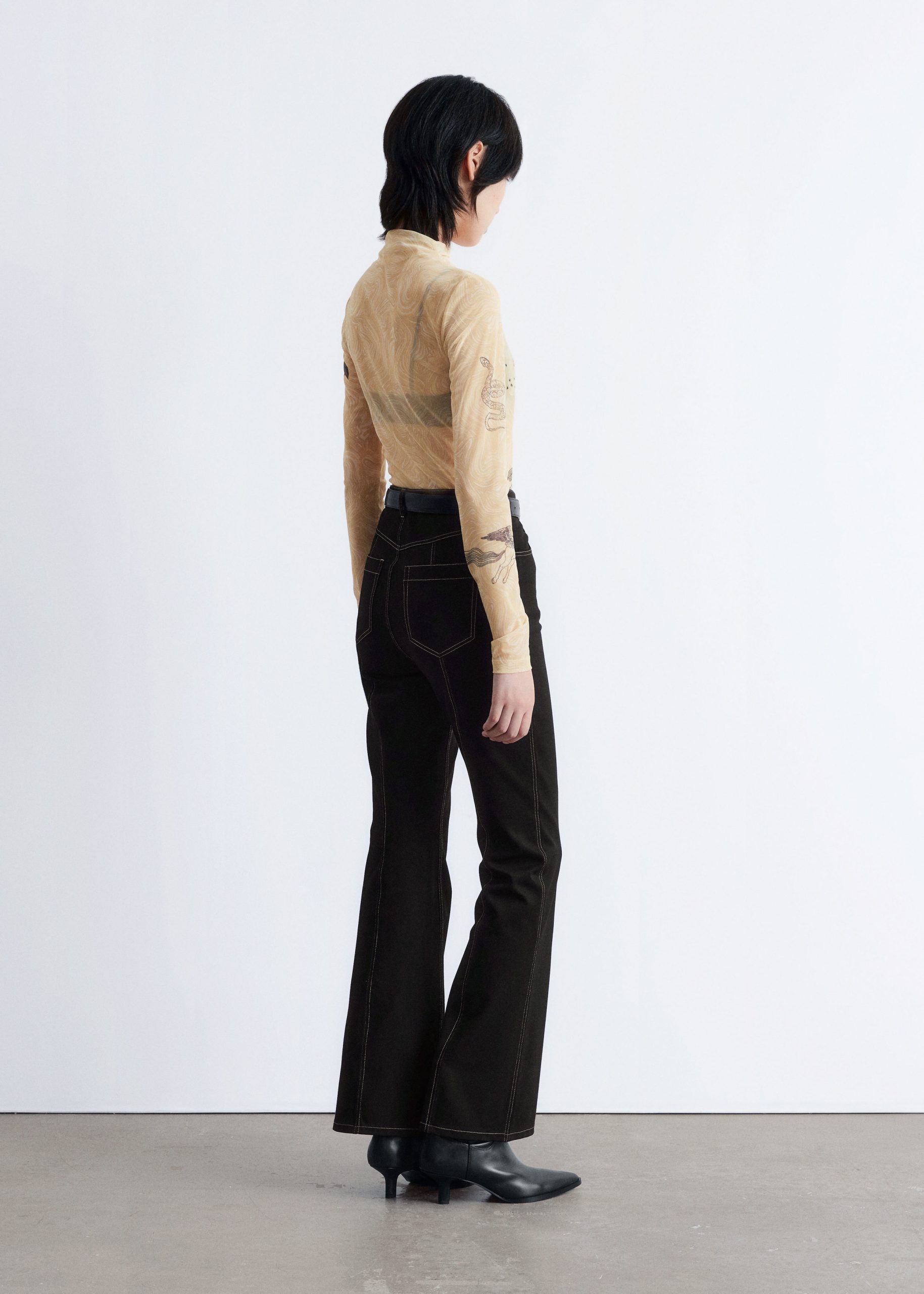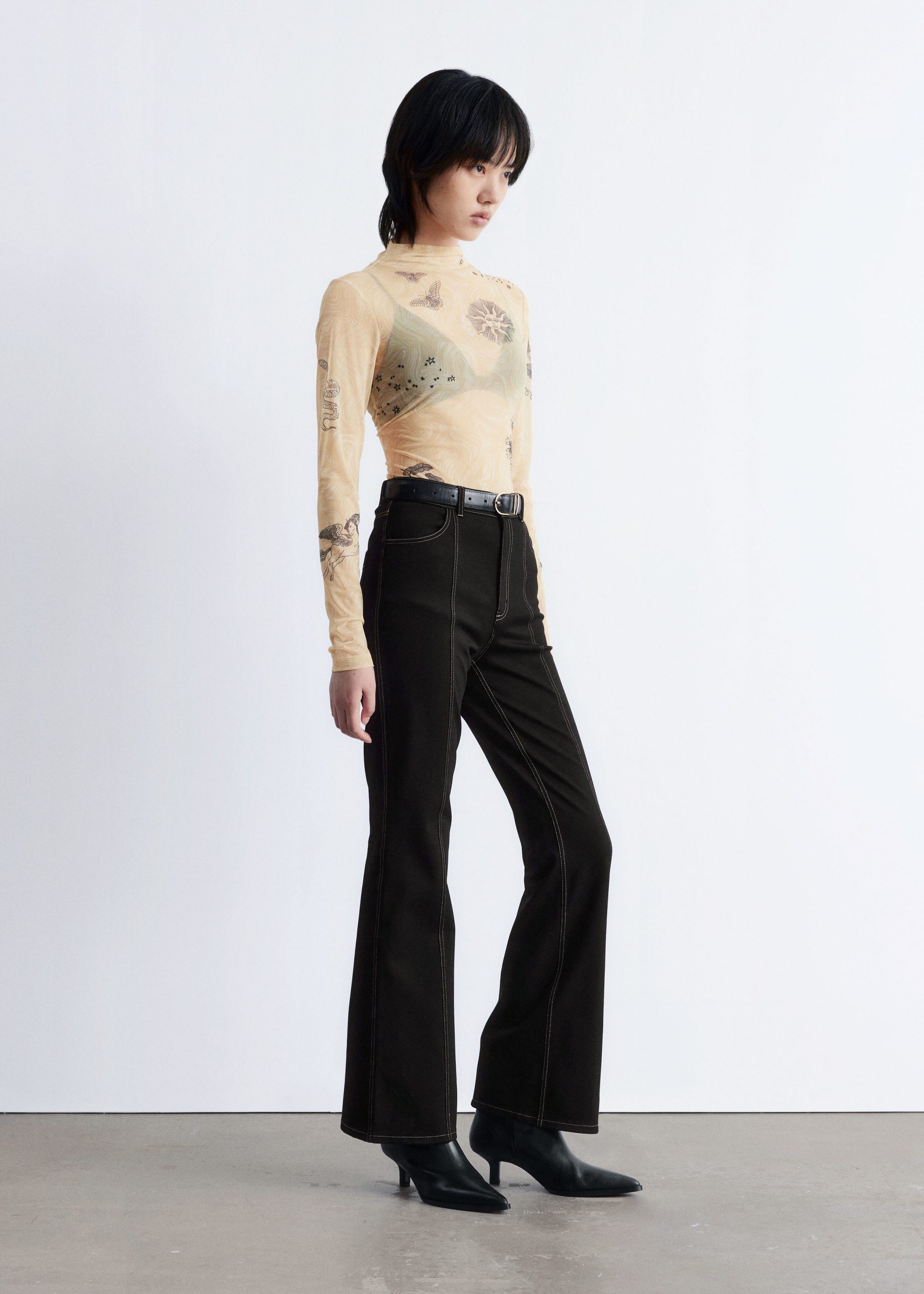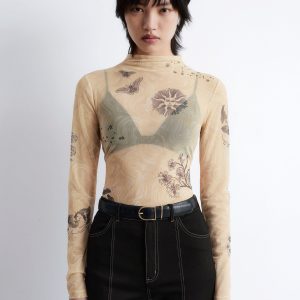 Printed long-sleeve mock-neck top finished with a slim silhouette.