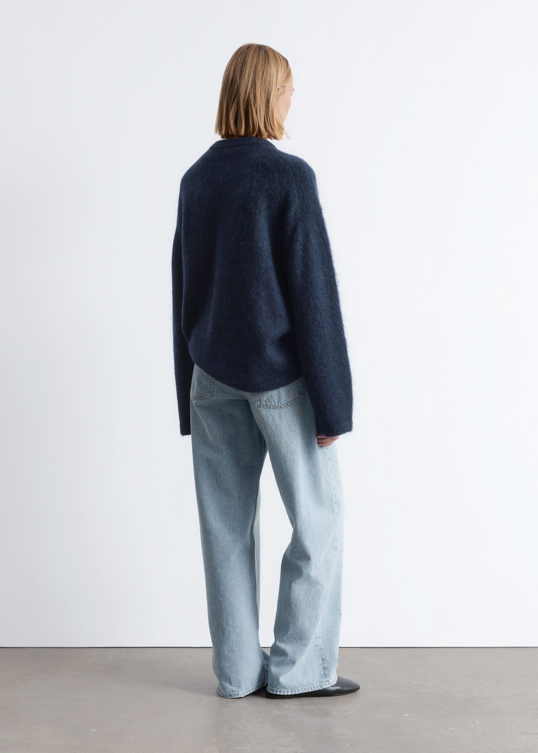 Long-sleeve jumper knitted from a mohair and wool blend. Designed with a ribbed neck, cuffs and hemline.