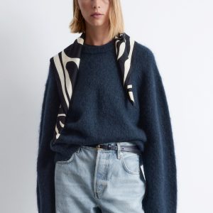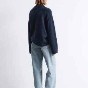 Long-sleeve jumper knitted from a mohair and wool blend. Designed with a ribbed neck, cuffs and hemline.