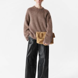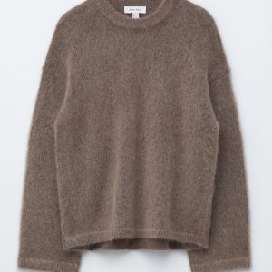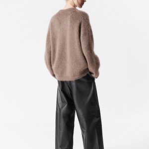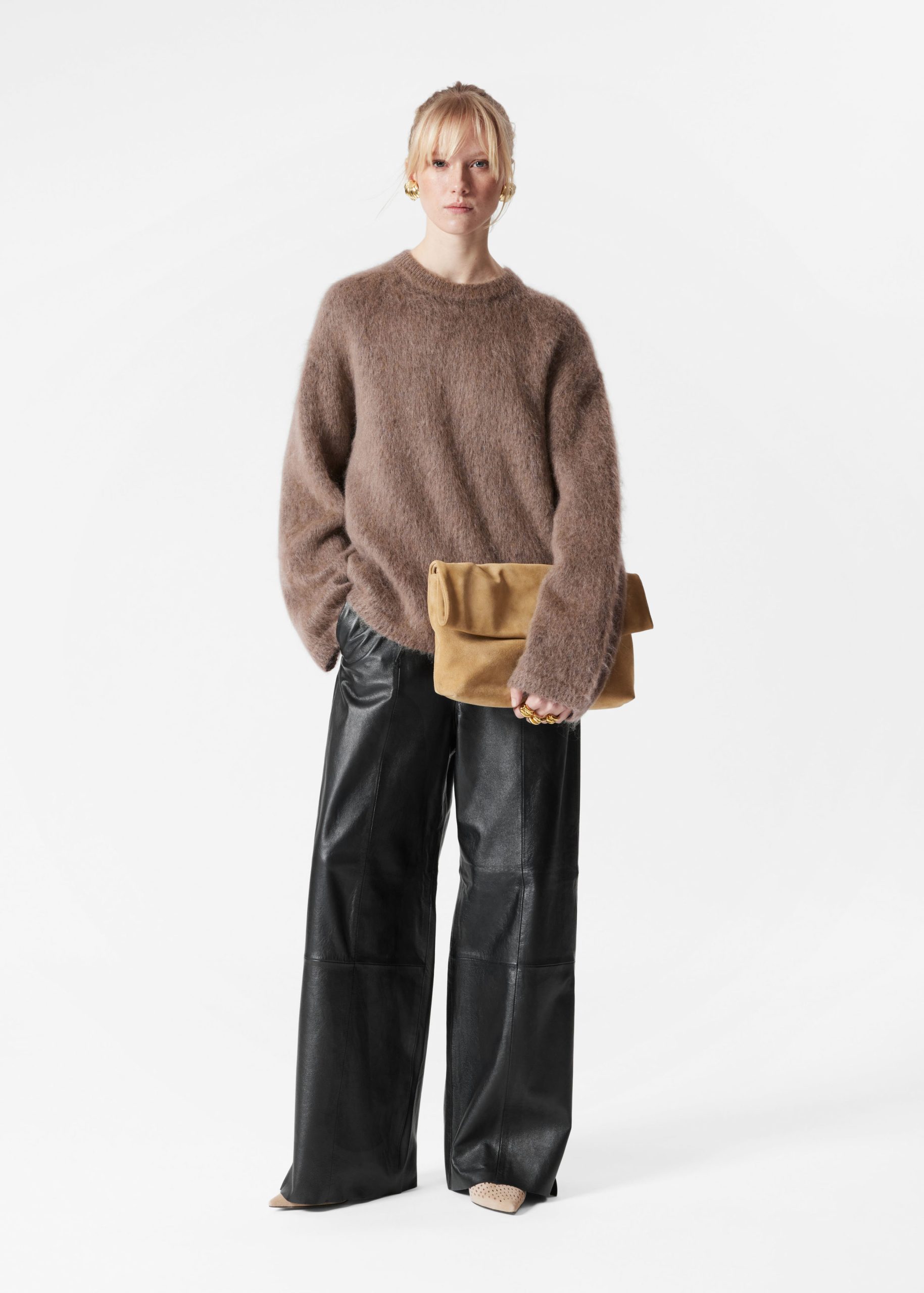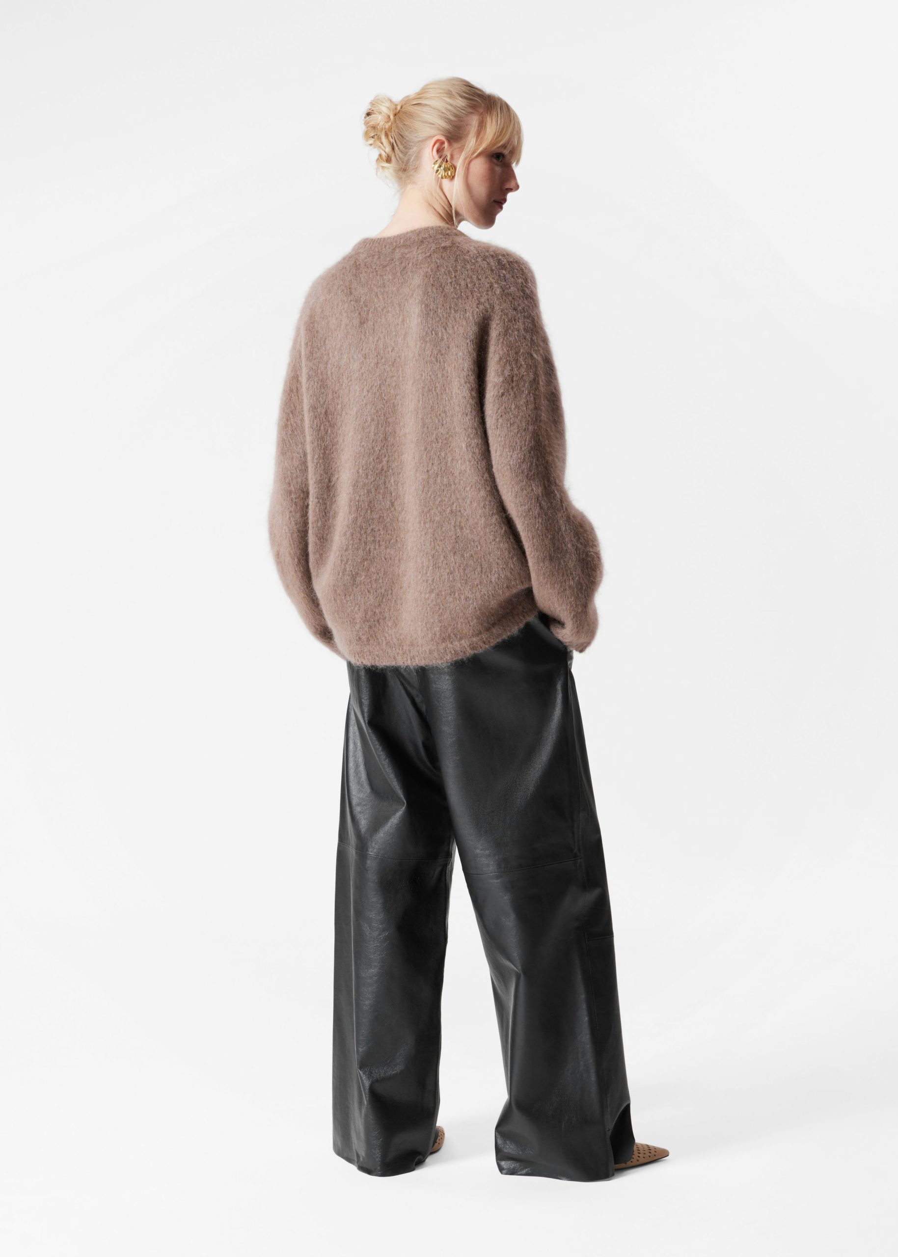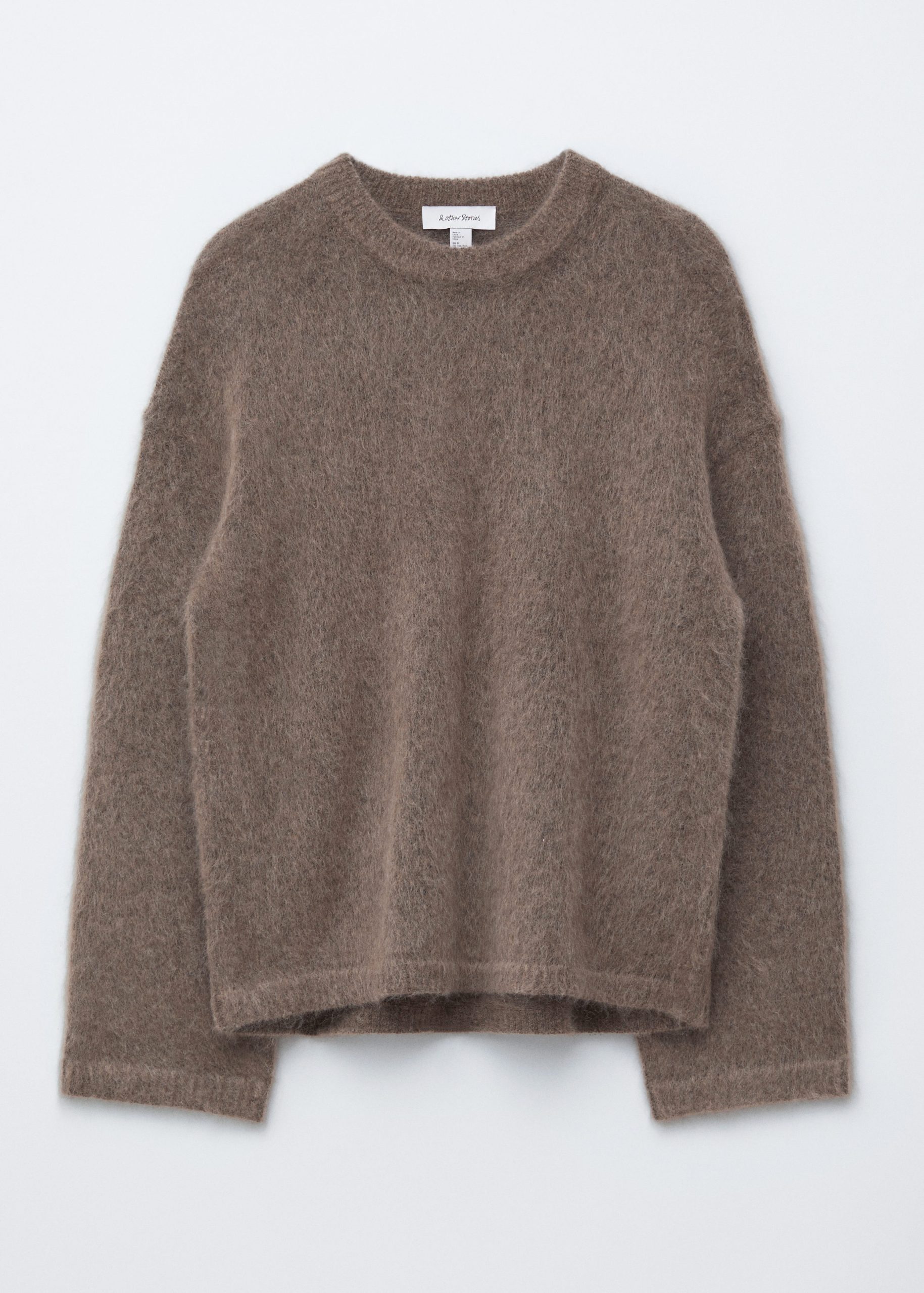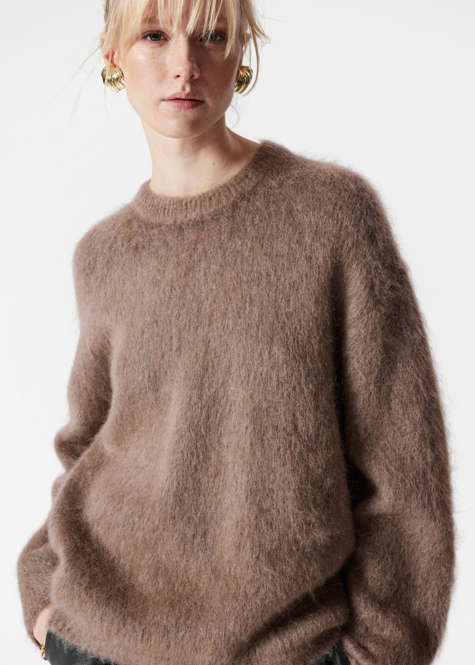 Long-sleeve jumper knitted from a mohair and wool blend. Designed with a ribbed neck, cuffs and hemline.