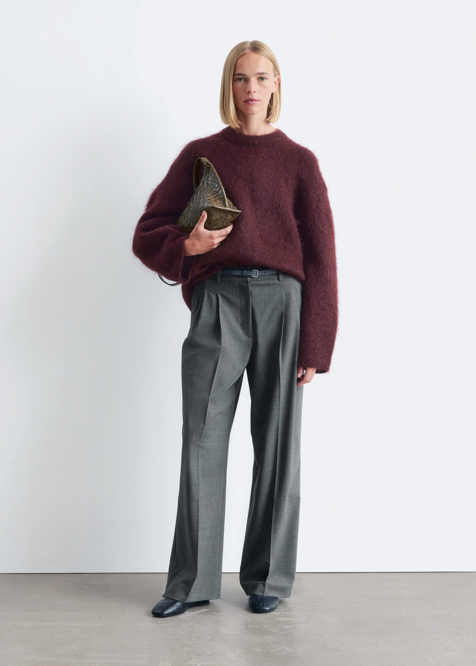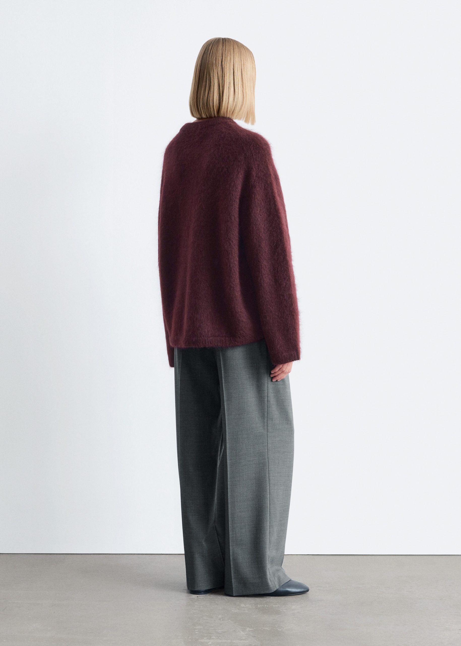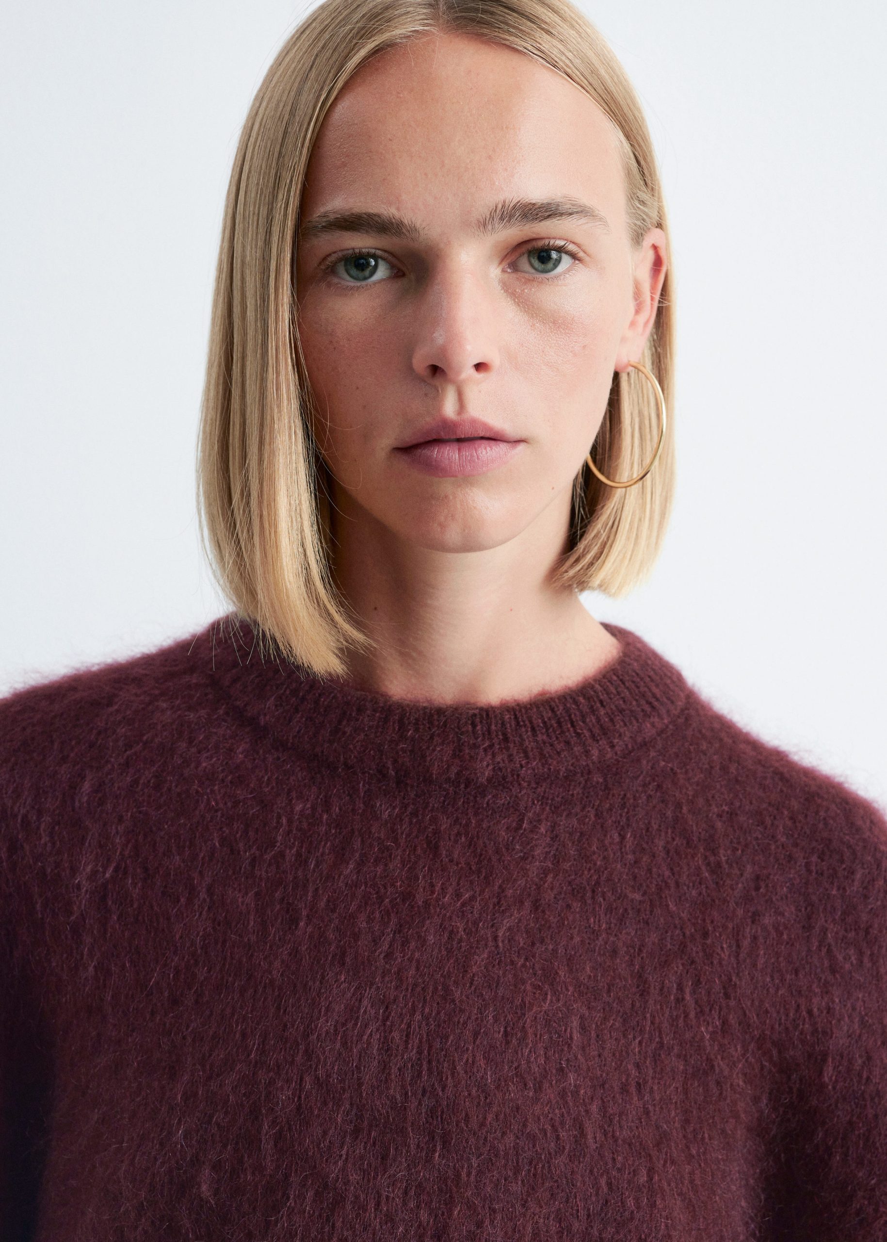 Long-sleeve jumper knitted from a mohair and wool blend. Designed with a ribbed neck, cuffs and hemline.