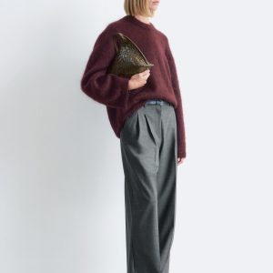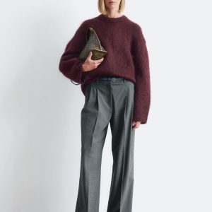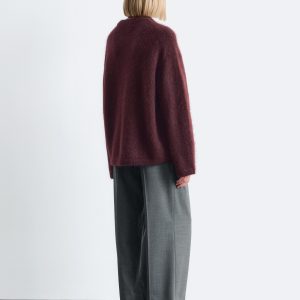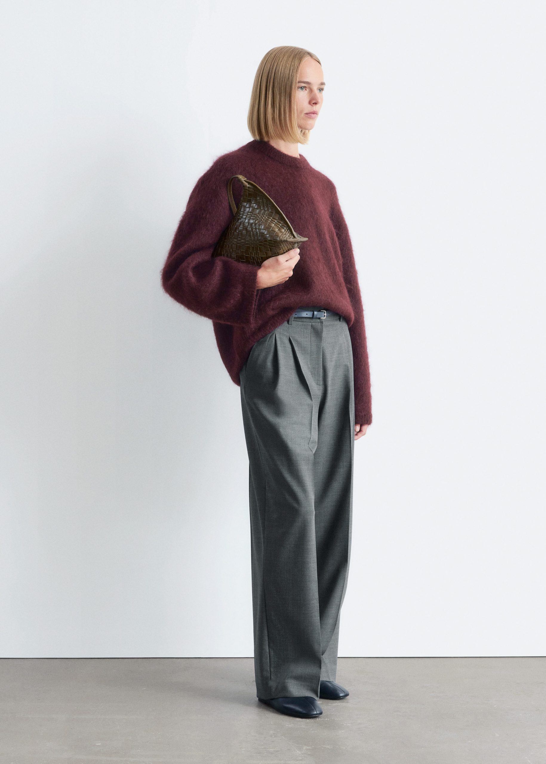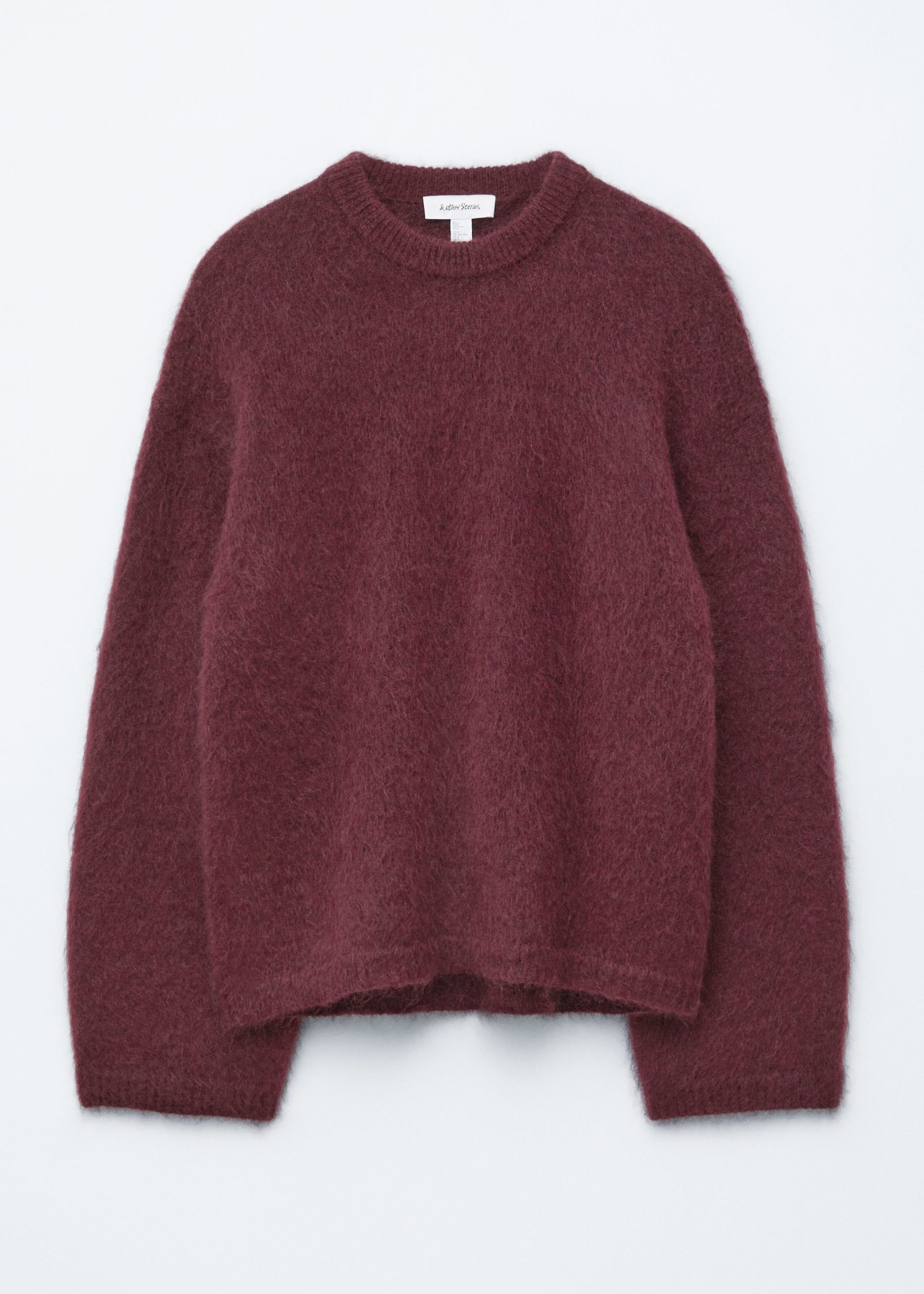 Long-sleeve jumper knitted from a mohair and wool blend. Designed with a ribbed neck, cuffs and hemline.