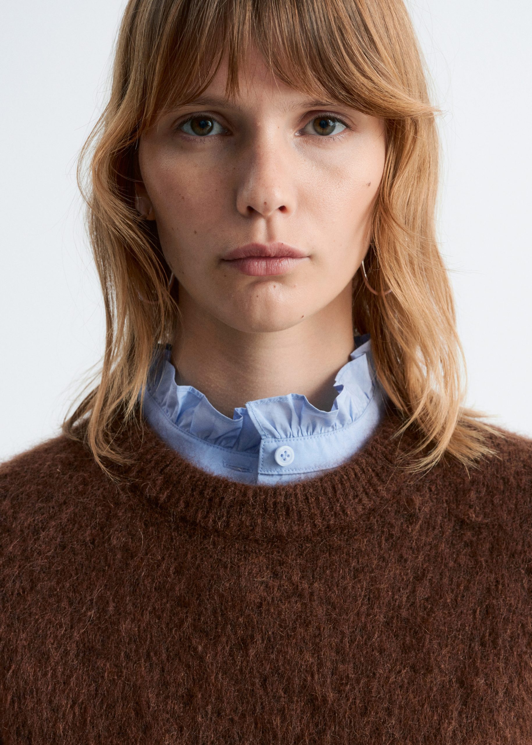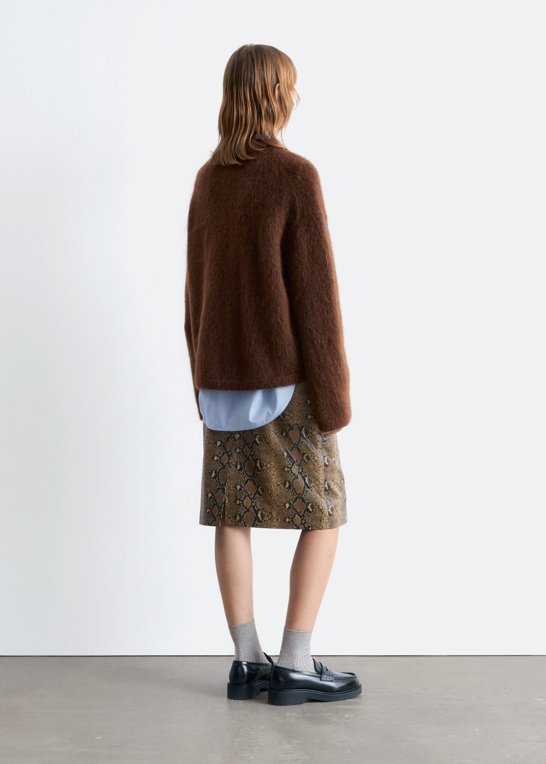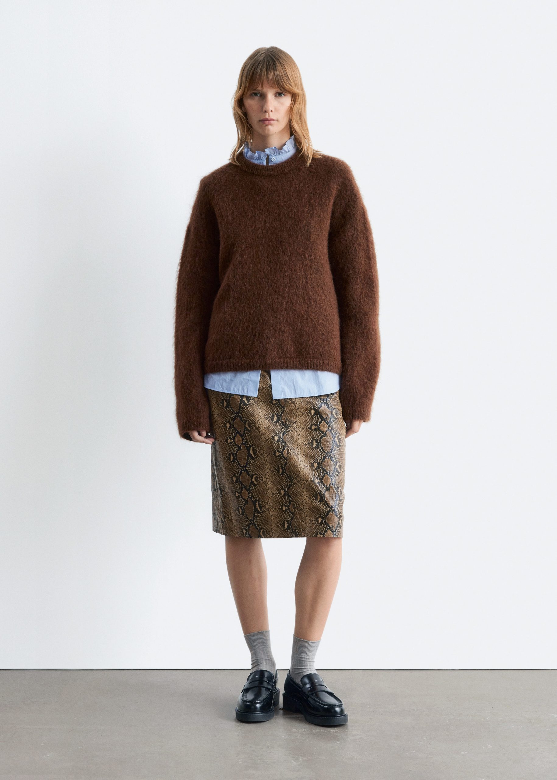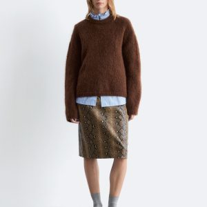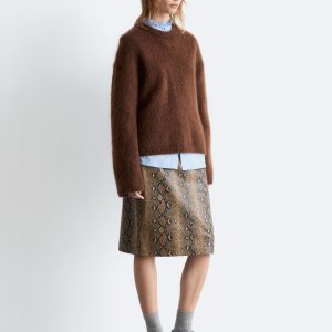 Long-sleeve jumper knitted from a mohair and wool blend. Designed with a ribbed neck, cuffs and hemline.