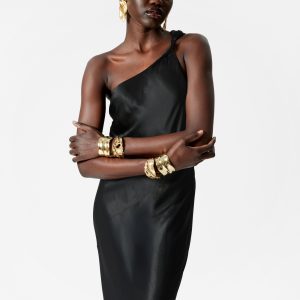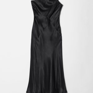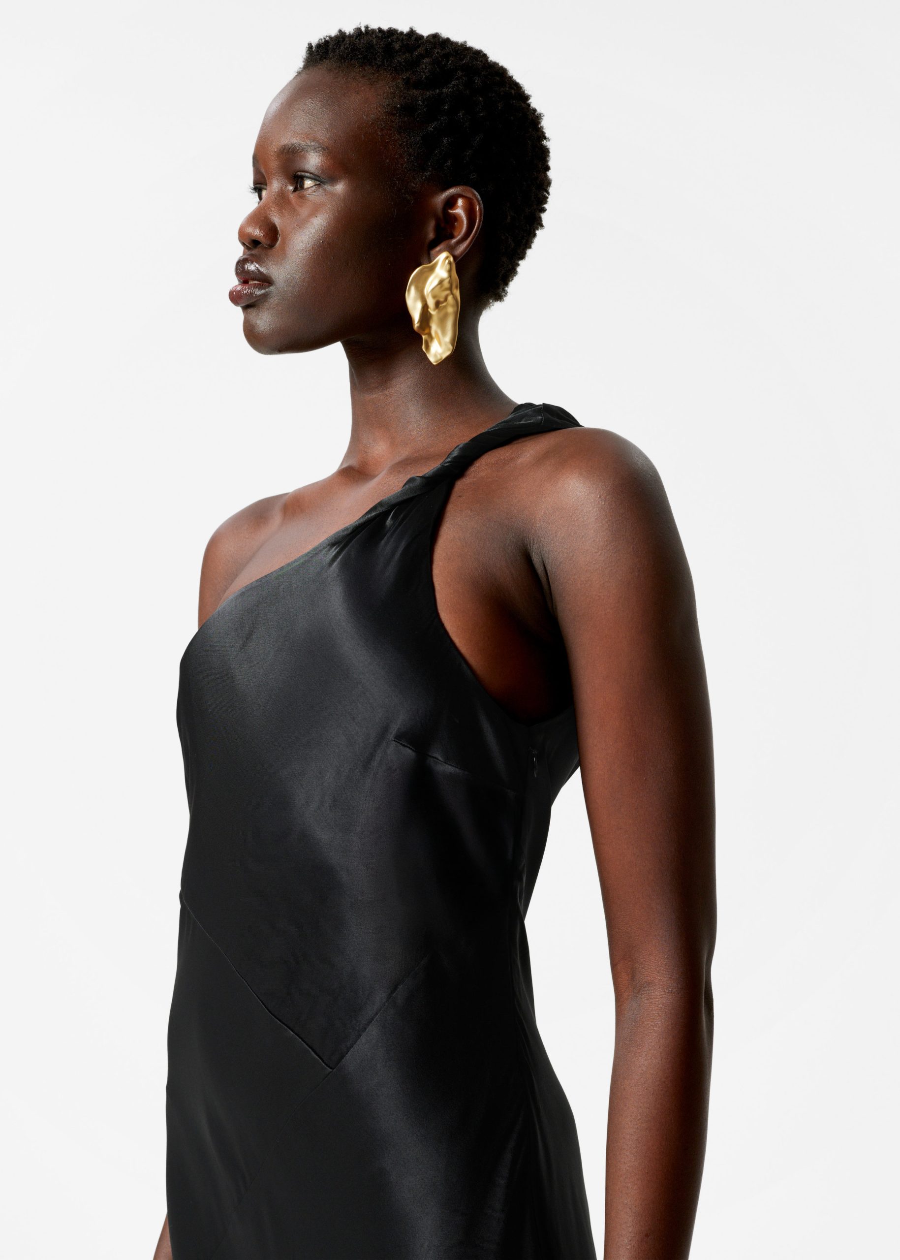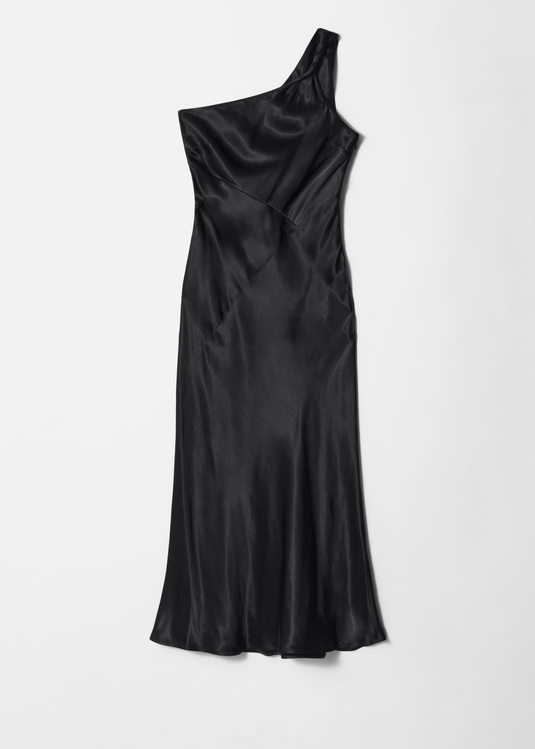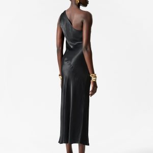 This midi dress is crafted from satin, giving it a supple, glossy finish. Cut in a fluid silhouette, it features a one-shoulder design with a twisted strap. Completed with a concealed side seam zipper. Style it with bold jewellery and strappy heels.