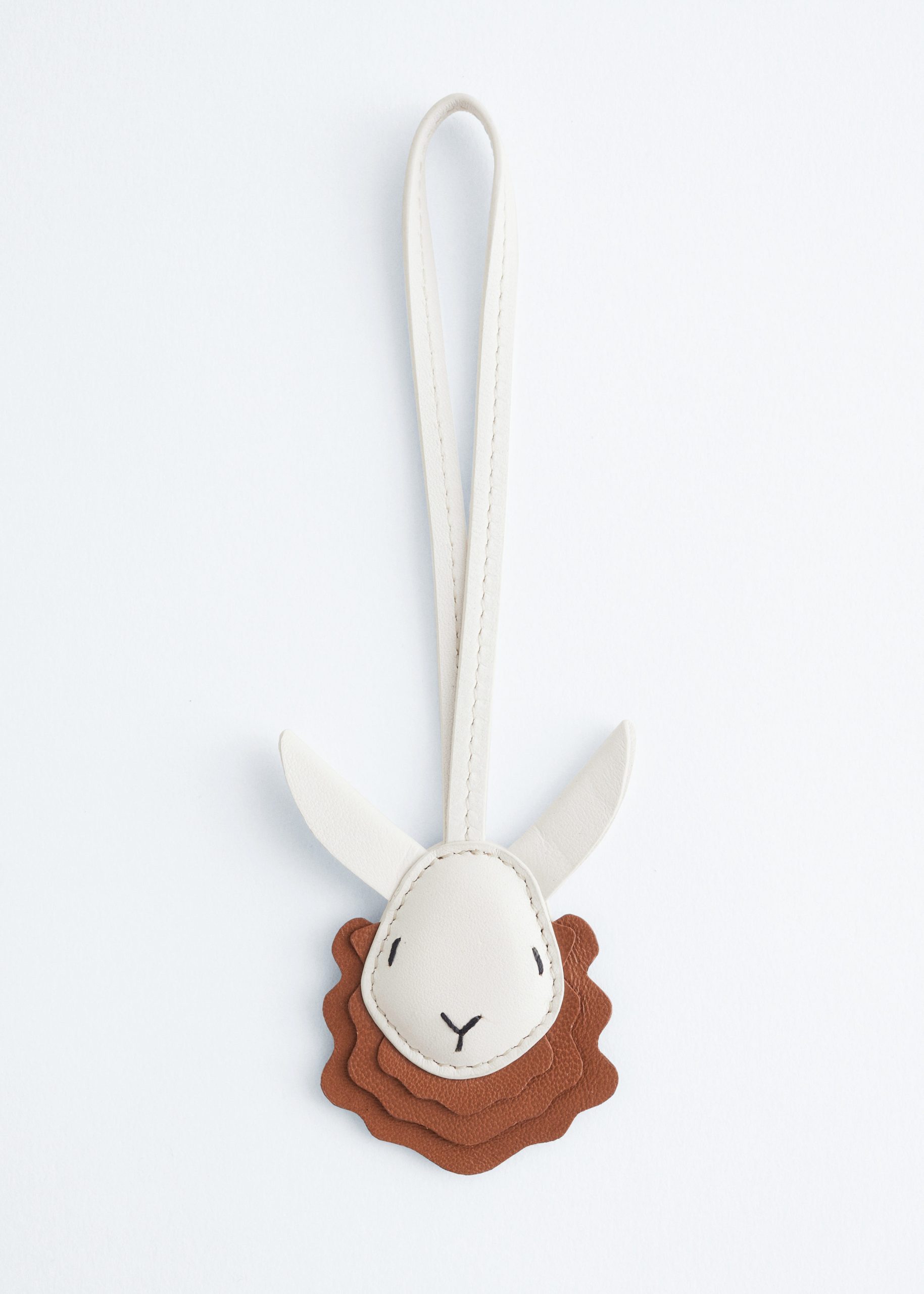 Crafted in India from soft leather with a crinkled finish, this bag charm features a long loop adorned with a charming decoration in the shape of a rabbit. The lightly padded decoration includes figurative appliqués and embroidery that add to the three-dimensional effect.