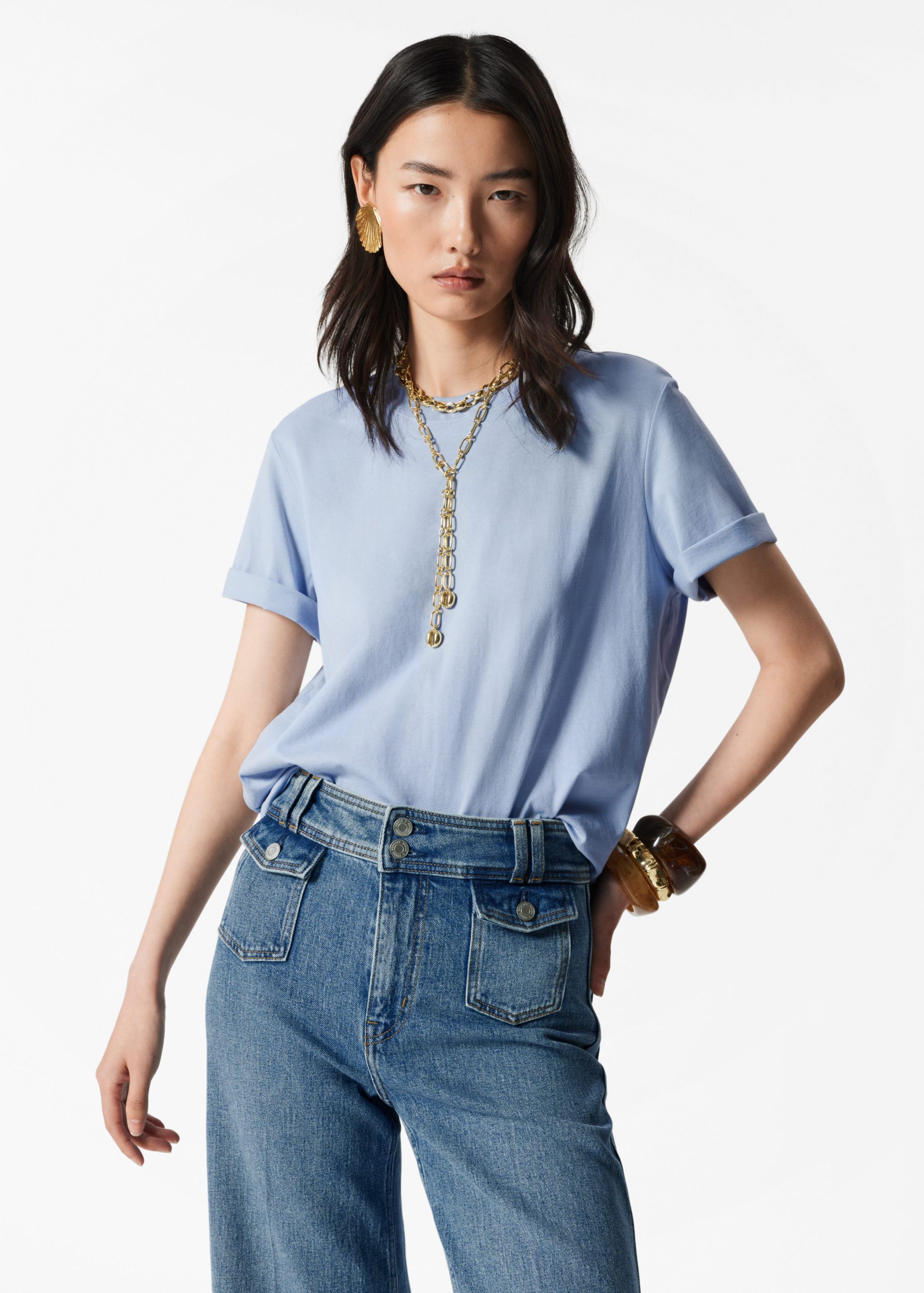 Short-sleeve crewneck t-shirt with a relaxed silhouette.Â